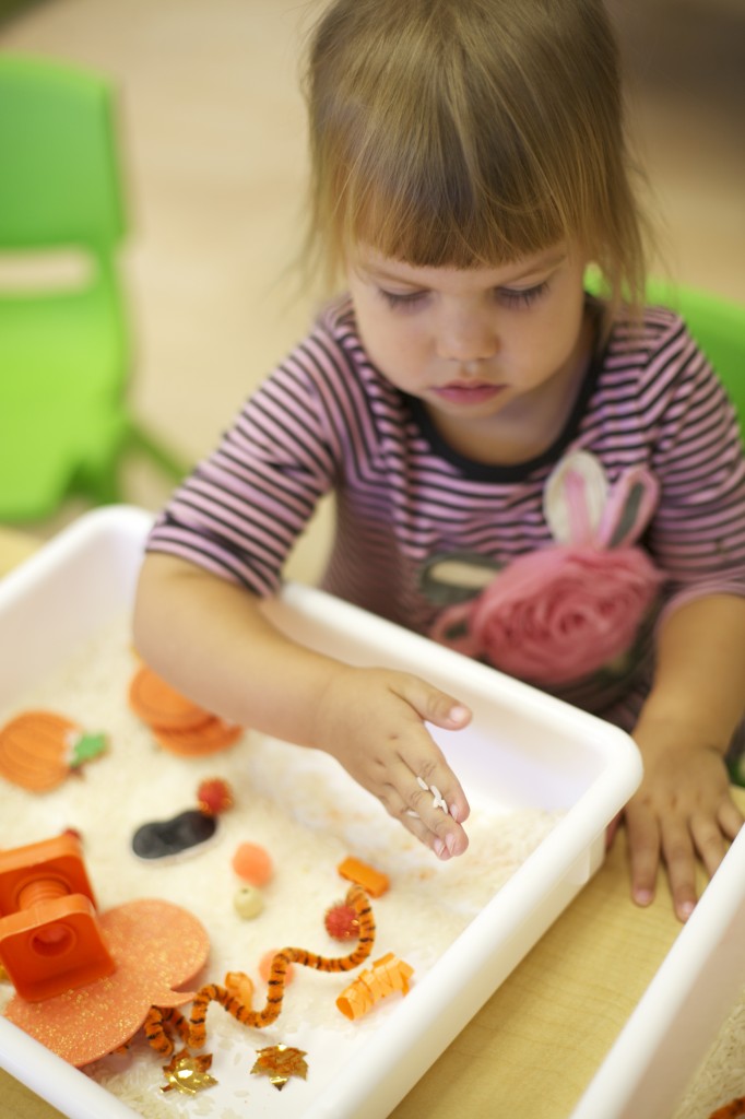 Orange is the focus color for the month of October!  So many fun purposeful play experiences to immerse the toddlers in all things orange.  Pumpkins, paint, playdough, discovery bins, fine motor skills, large motor skills, new vocabulary, songs, games, and more have kept our class busy learning through play.
