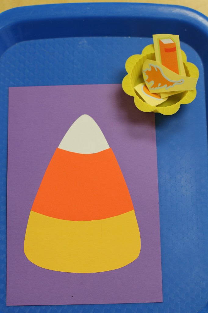 Orange discovery bins have been a big hit this month.  The toddlers practiced fine motor skills, counting and sorting while finding Halloween cats in the orange lentils.  We also painted hands orange to make a page for our color book.  A wall mural, orange playdough, and painting with orange have all been fun and engaging activities to celebrate the color orange.