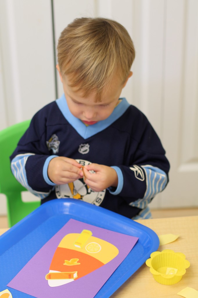 This month we are focusing on learning the color orange.  Today at the morning table we set out orange play dough.  To add some fun to this activity, we added a few special drops of orange extract to our play dough to make it smell like oranges!  The kids loved to use the eye dropper and were amazed by the smell of their play dough!