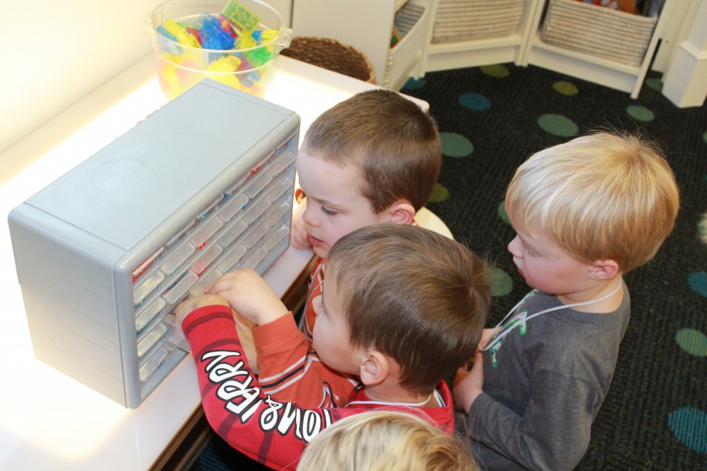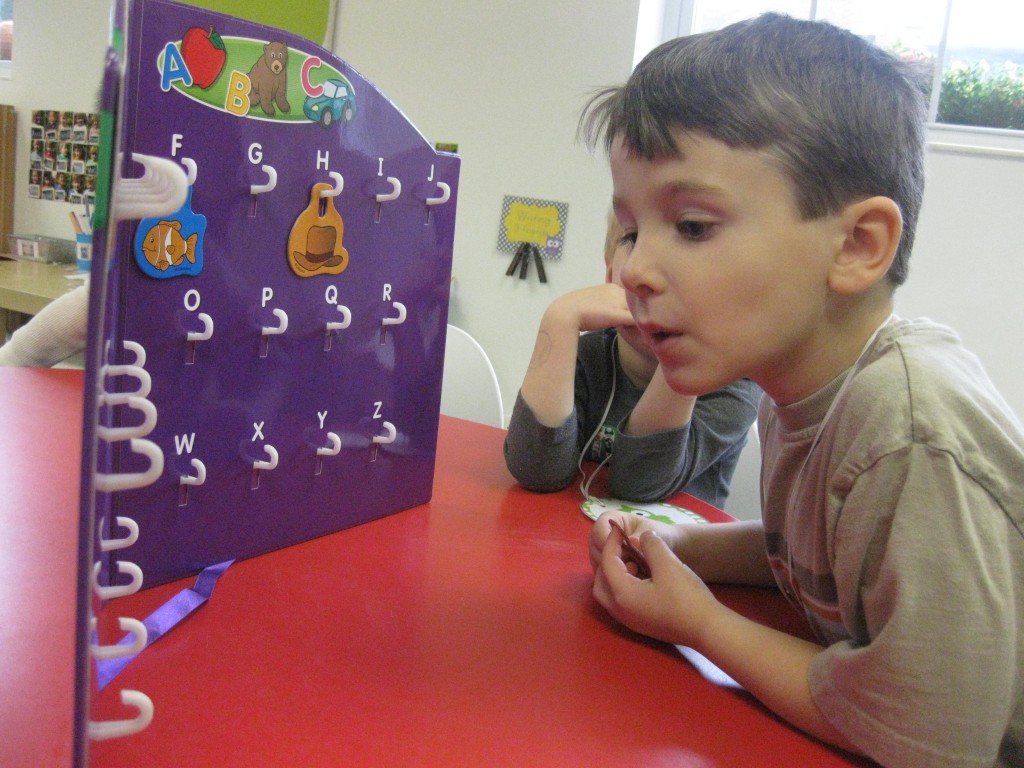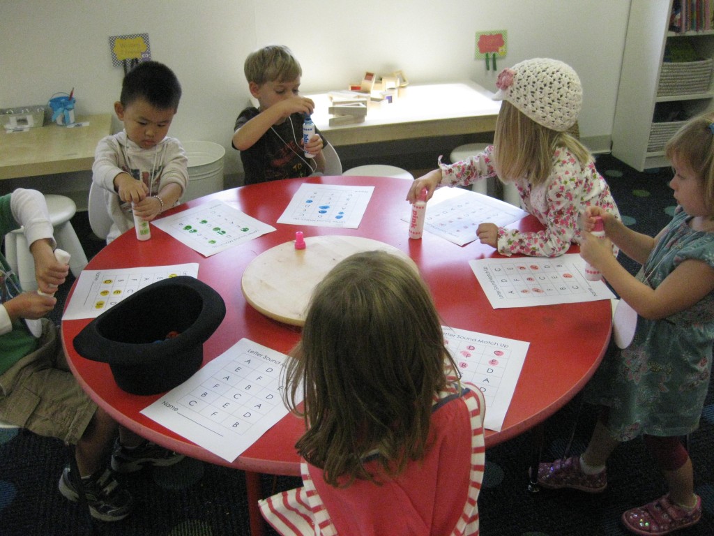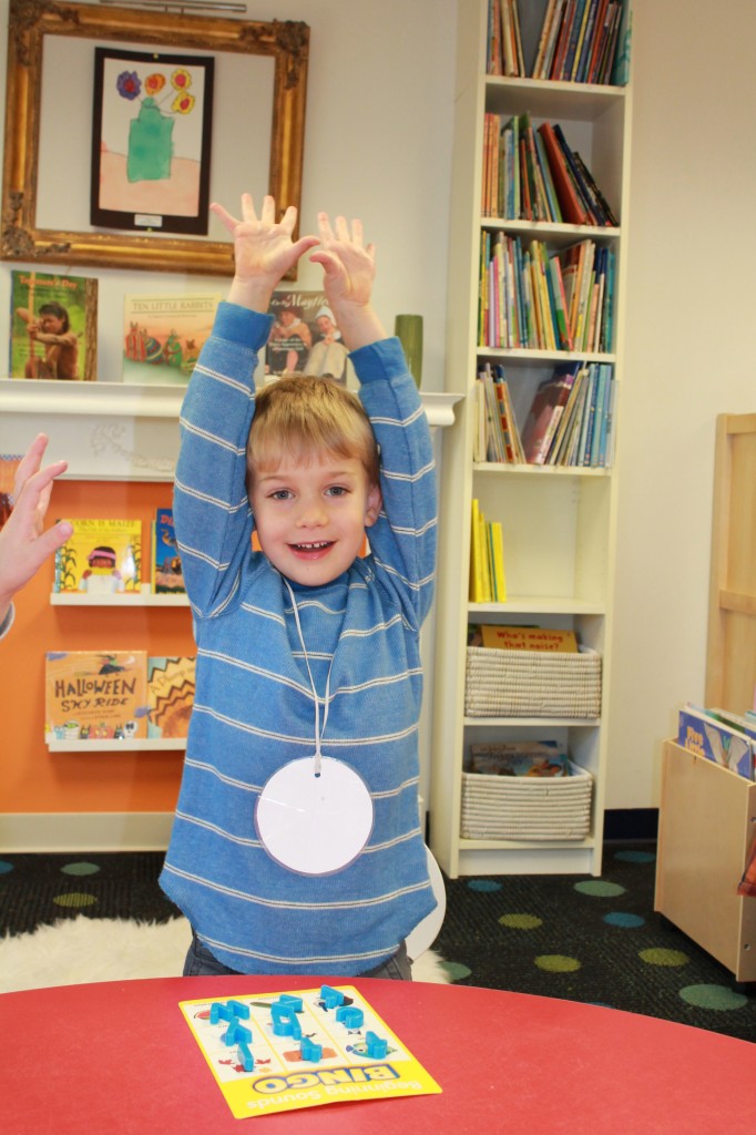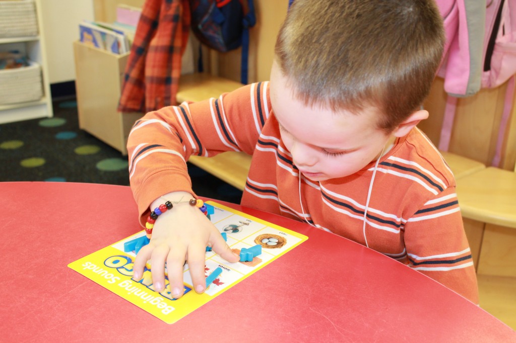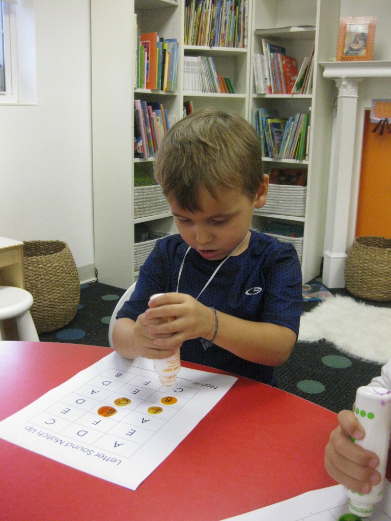 We focused on beginning sounds during our phonics study today. We popped a sound and found a picture that started with that sound. First person to cover the board was the winner!