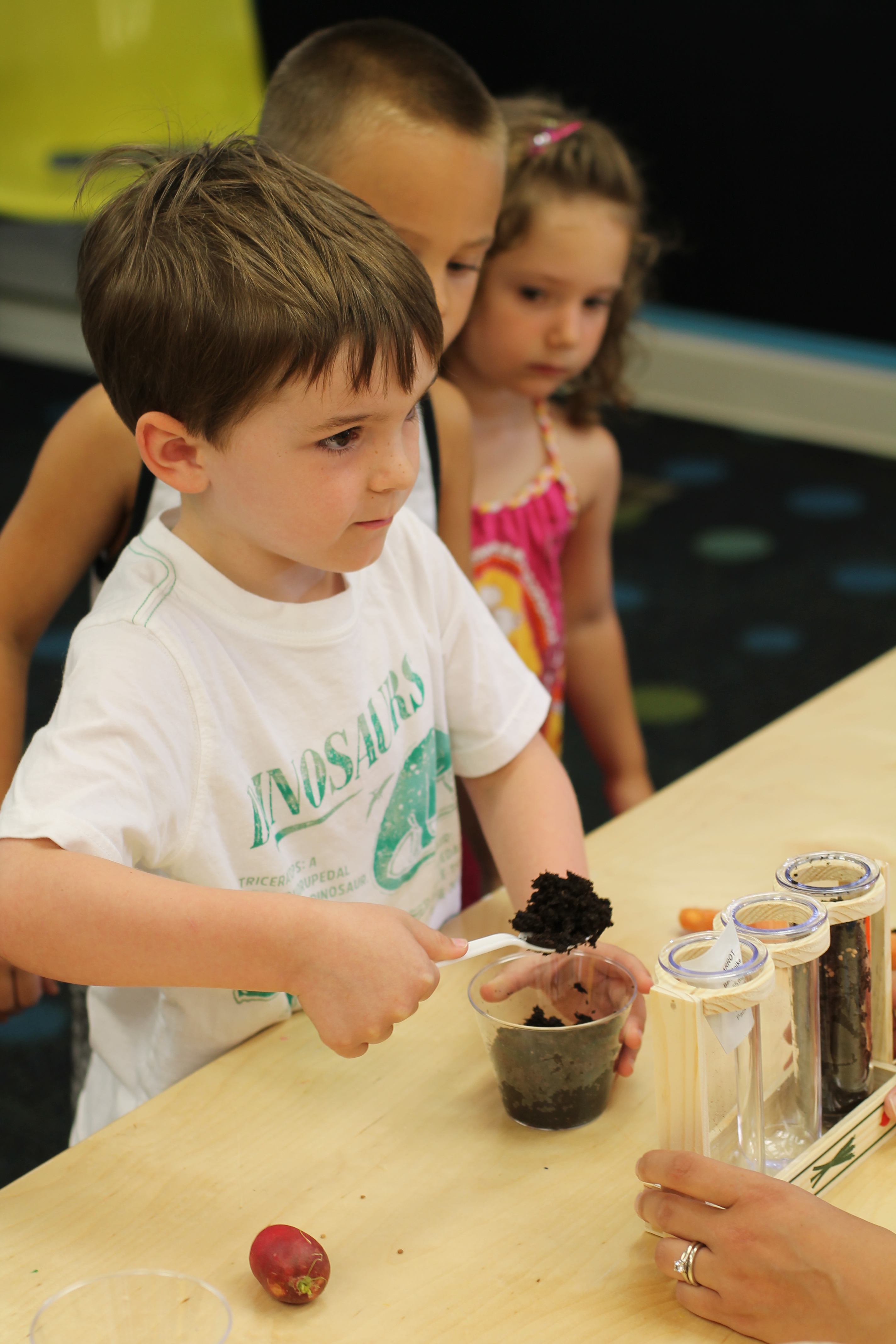 What does a plant look like? What does it need to grow? We learned about the parts of a plant, the plant life cycle and the difference between fruits and vegetables during a visit from the Cincinnati Museum Center. We rolled up our sleeves and spent some time digging in the dirt and planted our own seed to take home to add to our growing garden!