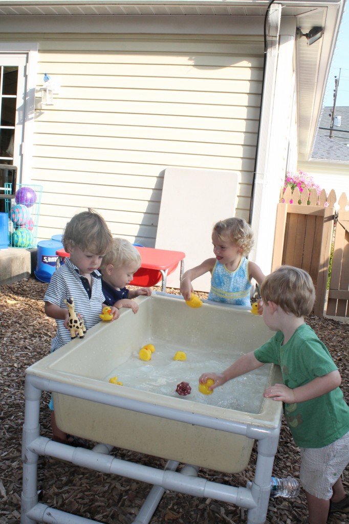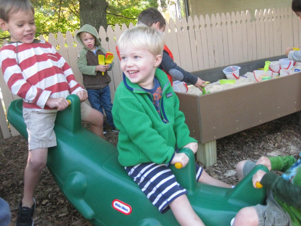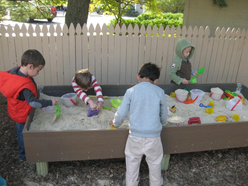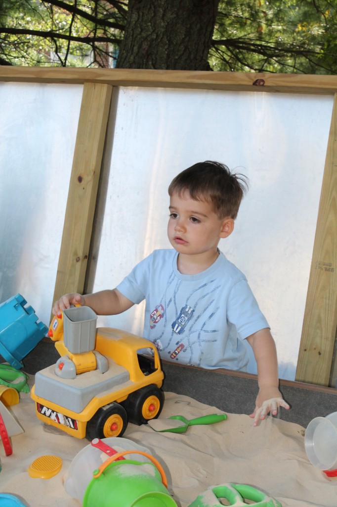 Playing outdoors allows our toddlers to learn about the world around them. Can sticks stand up in the sand? How does mud feel? Why do we slide down instead of up the slide? How do I make my truck go faster? How does the tree create cool shade from the sun? Why is the water in the water table cool in the morning and warm in the afternoon? Not only do children learn many of the basic and fundamentals about how the world works around them, they are more apt to remember what they learned because it was a concrete and personally meaningful experience!