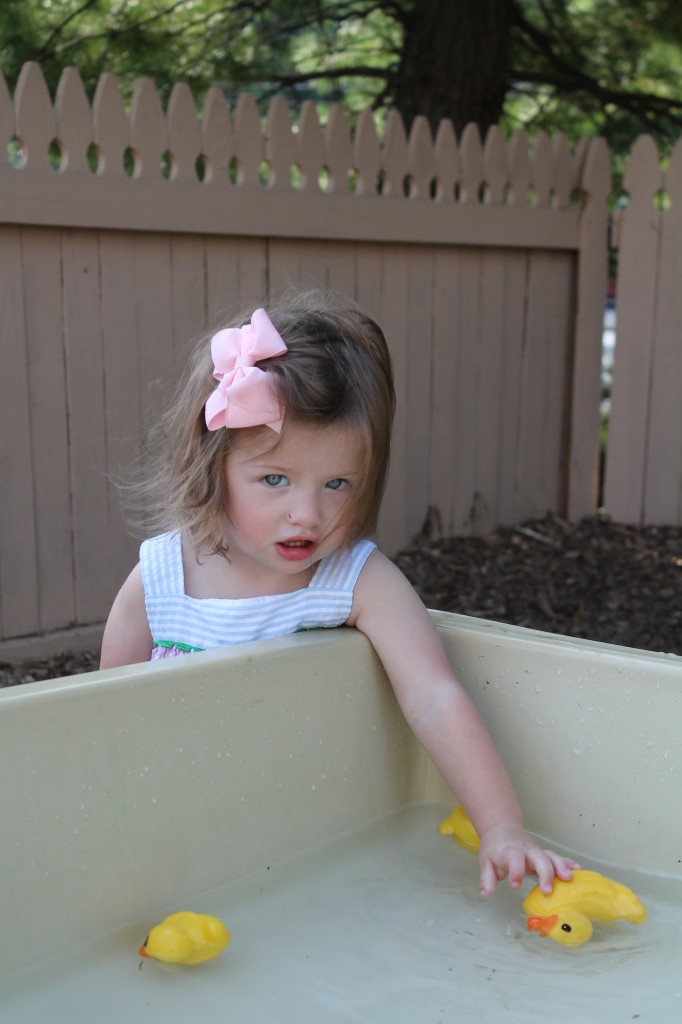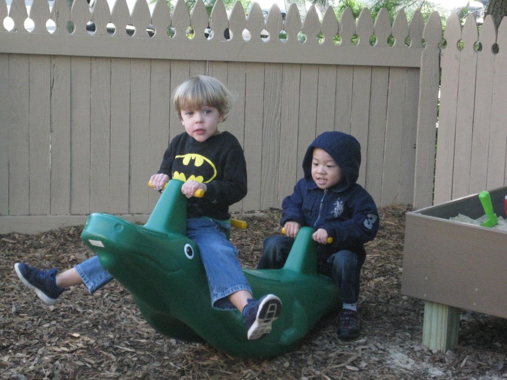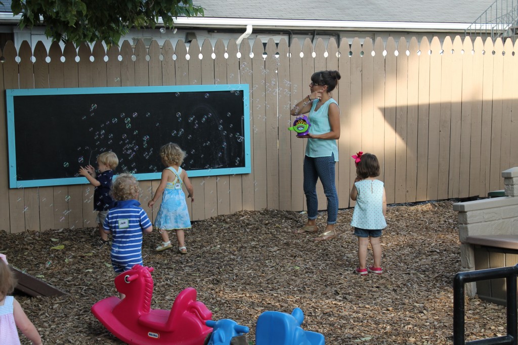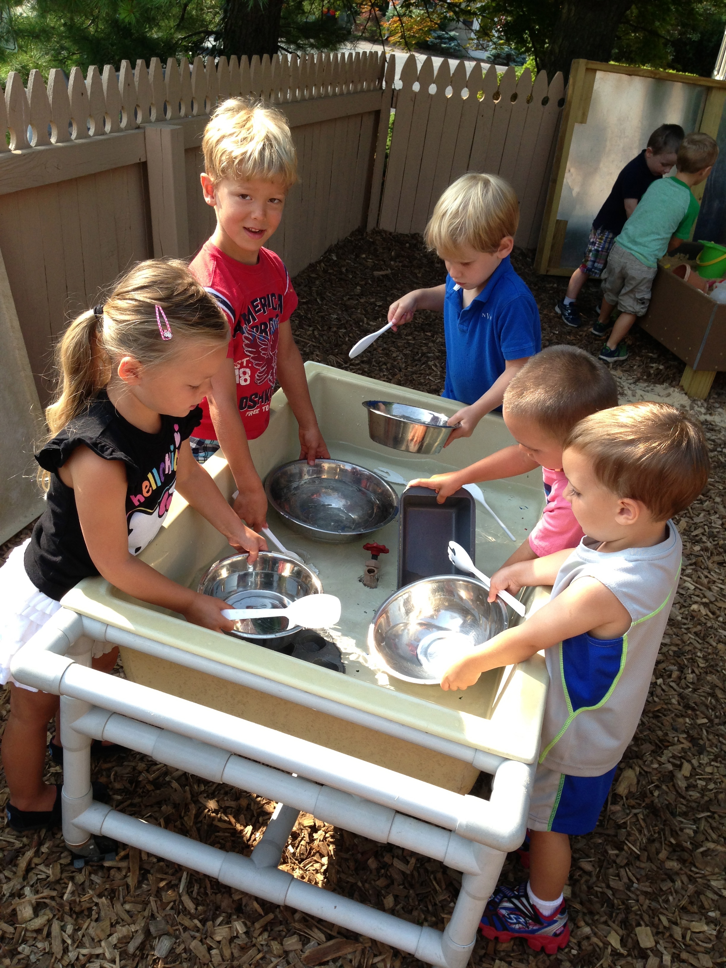Playing outdoors allows our toddlers to learn about the world around them. Can sticks stand up in the sand? How does mud feel? Why do we slide down instead of up the slide? How do I make my truck go faster? How does the tree create cool shade from the sun? Why is the water in the water table cool in the morning and warm in the afternoon? Not only do children learn many of the basic and fundamentals about how the world works around them, they are more apt to remember what they learned because it was a concrete and personally meaningful experience!