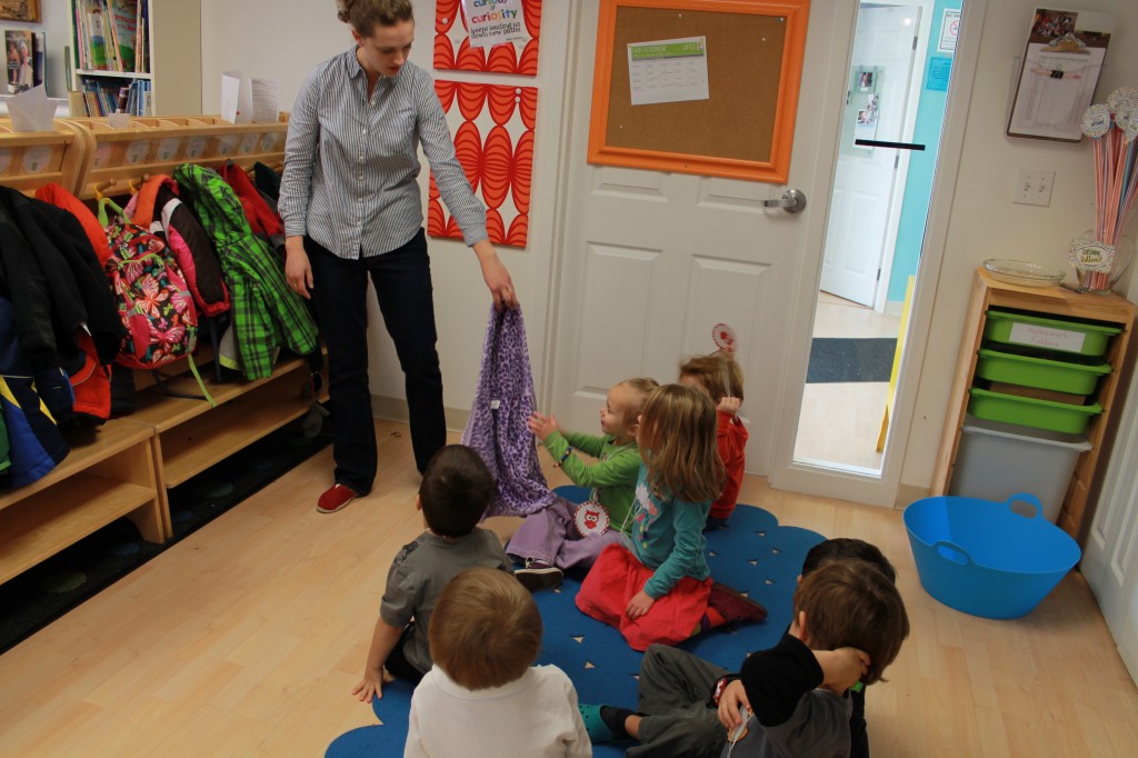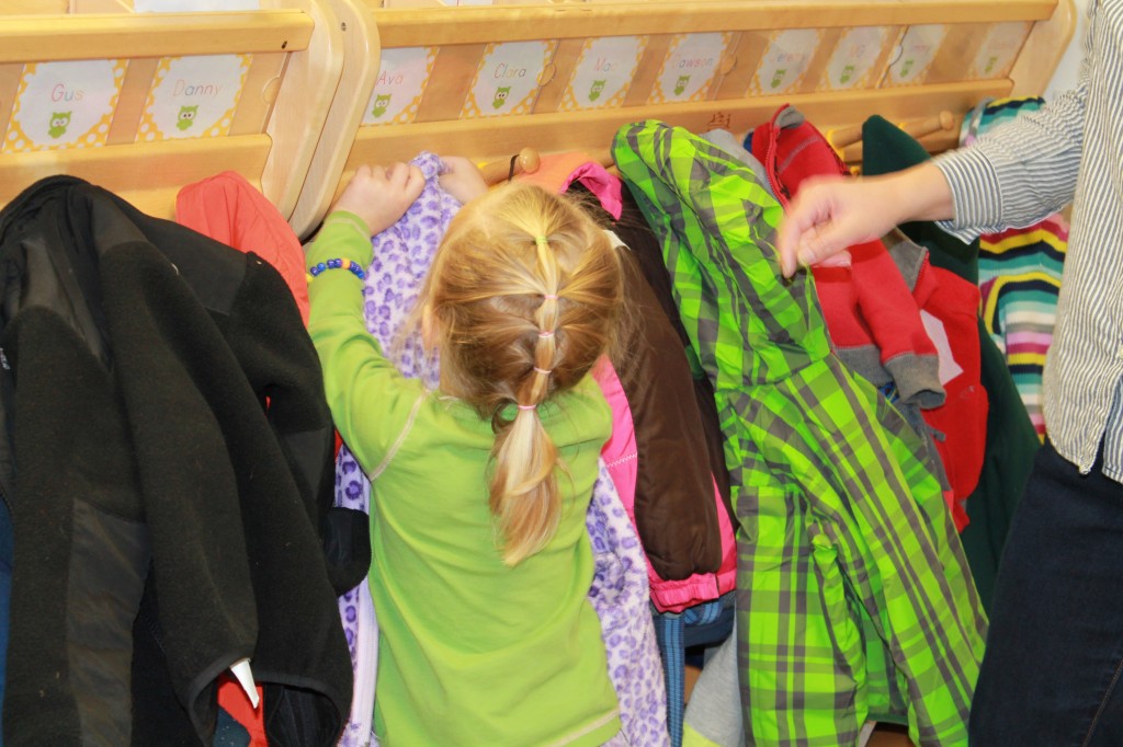 Here comes the cold! Coat season is in full swing and your preschooler is learning how to put theirs on all by themselves. “The Preschool Flip” is an easy way for your little one to gain some independence, confidence, and responsibility. Start with the hood or collar of coat at your toes open side up. Slip arms into arm holes and slowly flip the coat up over your head. Practice, practice, practice! We also learned how to hang up our belongings so nothing gets lost at the cubbies. Please label everything you send to school! Gross Motor Movement is so important at this age, we will be heading to the playground on days 32 degrees and above. Hats and mittens, please! 220 fingers is just too many to slip into all those little spots in gloves.