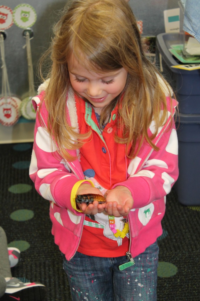 The Children’s Museum Center of Cincinnati shared with us their Snug as a Bug Program on Wheels! We learned about about a variety of insects that are found all around the world. We learned what makes an insect an insect (parts of the body) and built our own using all the parts! (Head Thorax Abdomen Antenae Six Legs). We learned about how many insects see and used the cool glasses, that Mr Dan brought, to see like a insect! Puppets, songs, activities…it was a great afternoon!