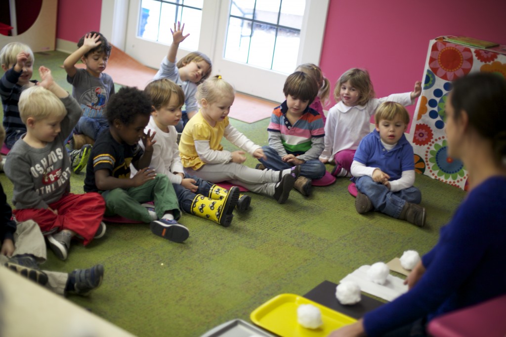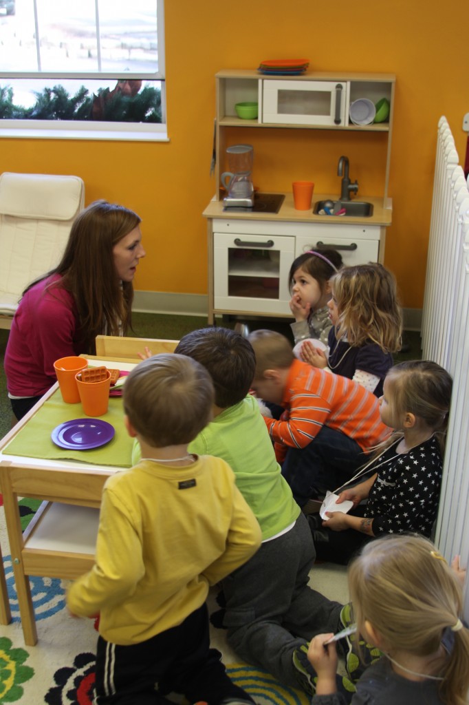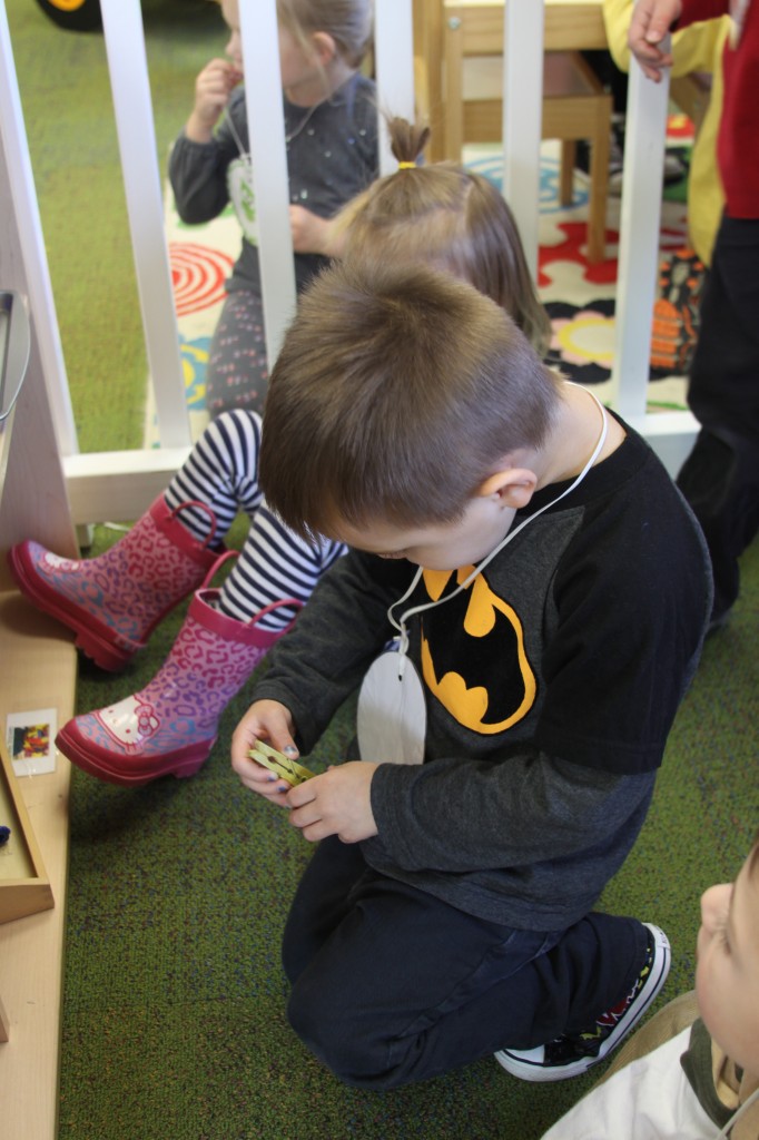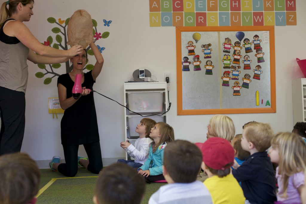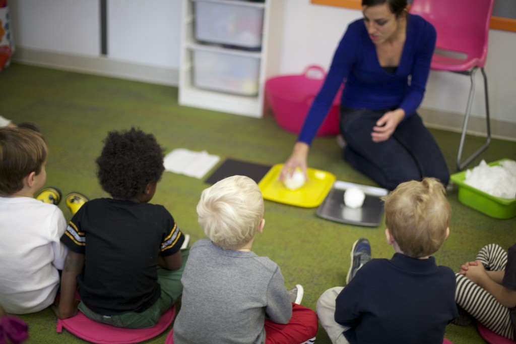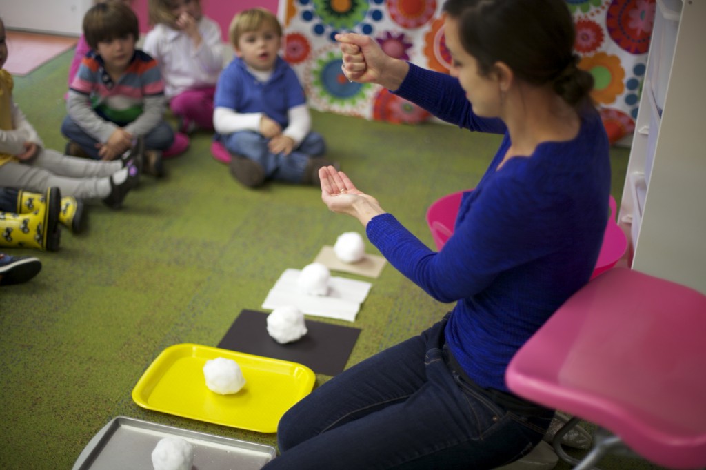 I showed the children how snow melts into water by holding a small snowball in my hand then squeezing it to melt it with the warmth of my hand. We watched as the water dripped out.