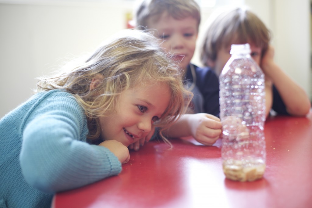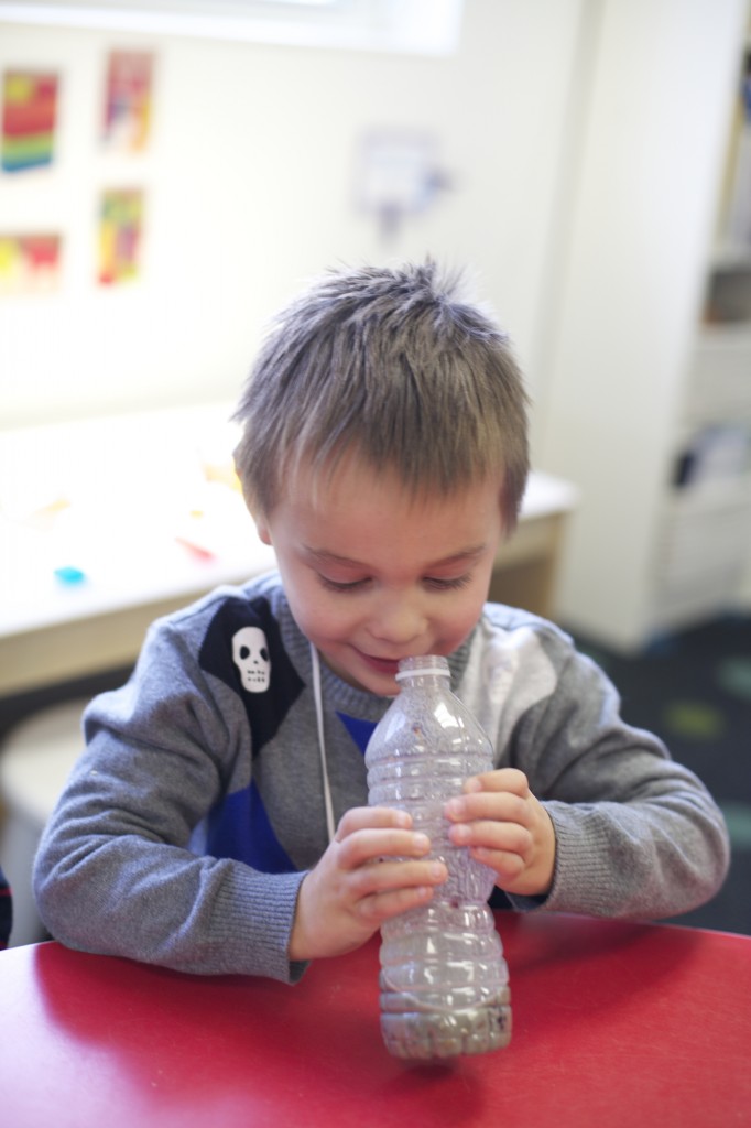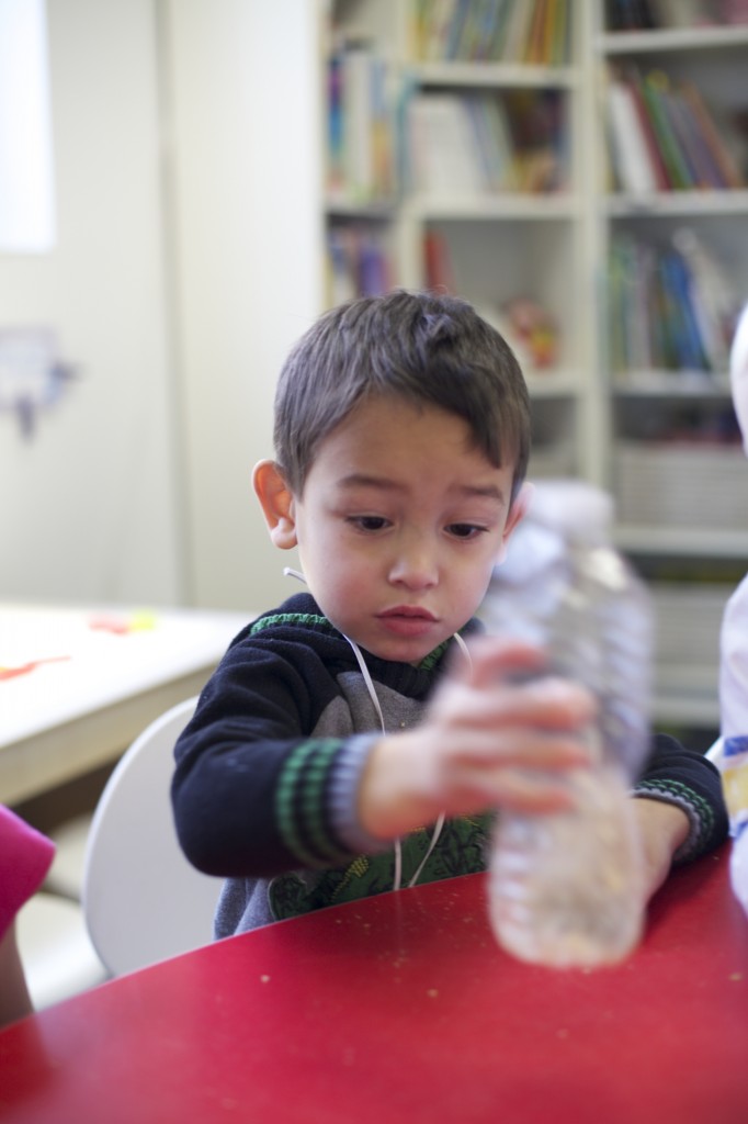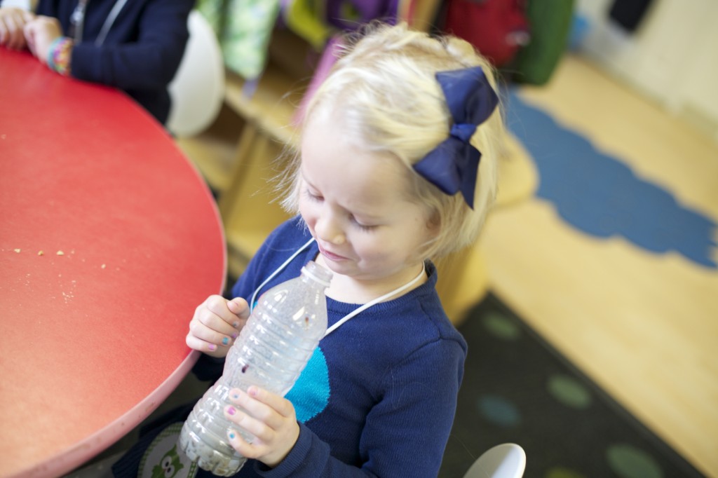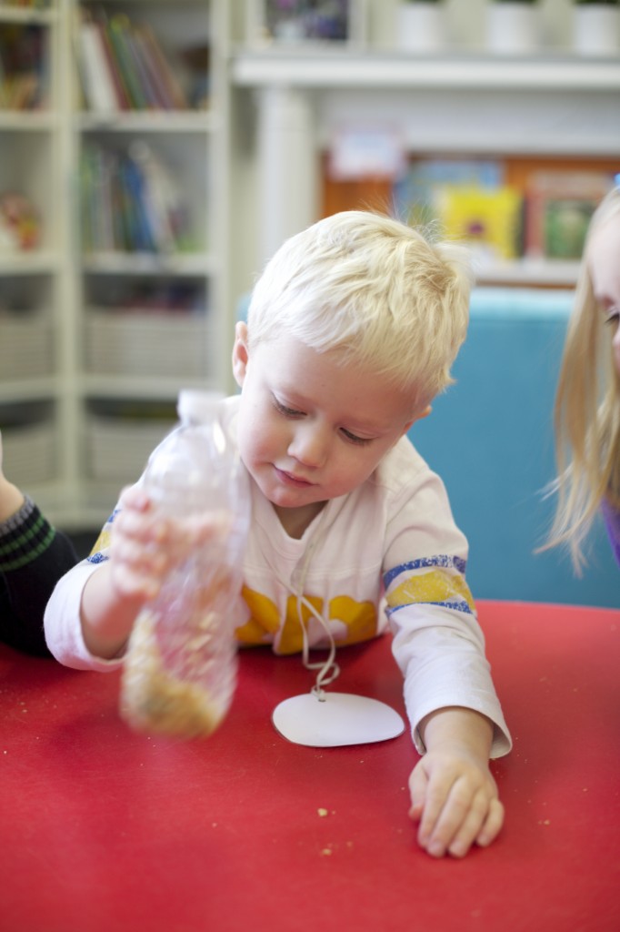 Next we poured rocks into the bottle because turkeys swallow rocks to help with their digestion in their second stomach, called the “gizzard”. The children shook up the bottle with the rocks and watched the rocks mash up the crackers.