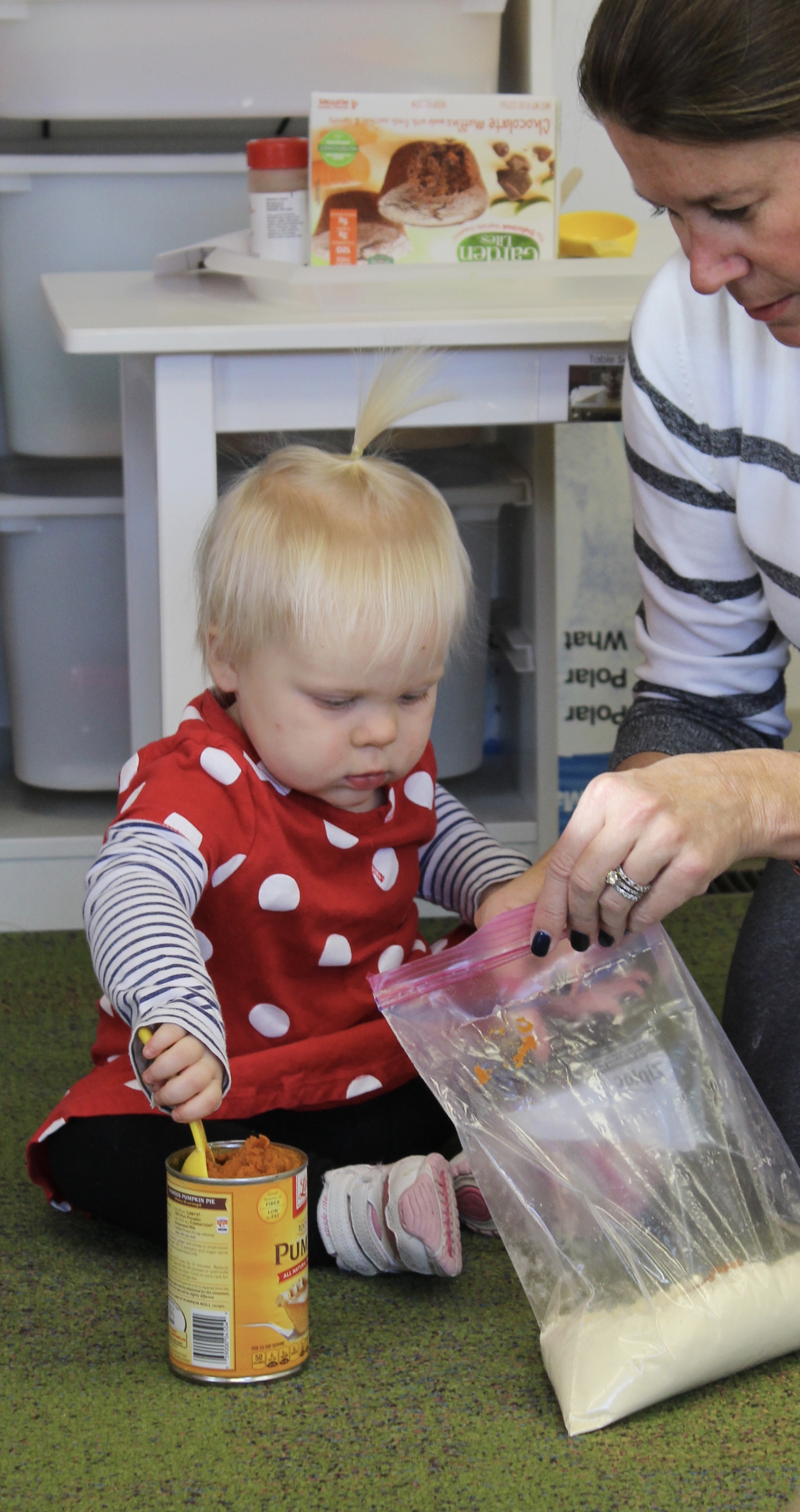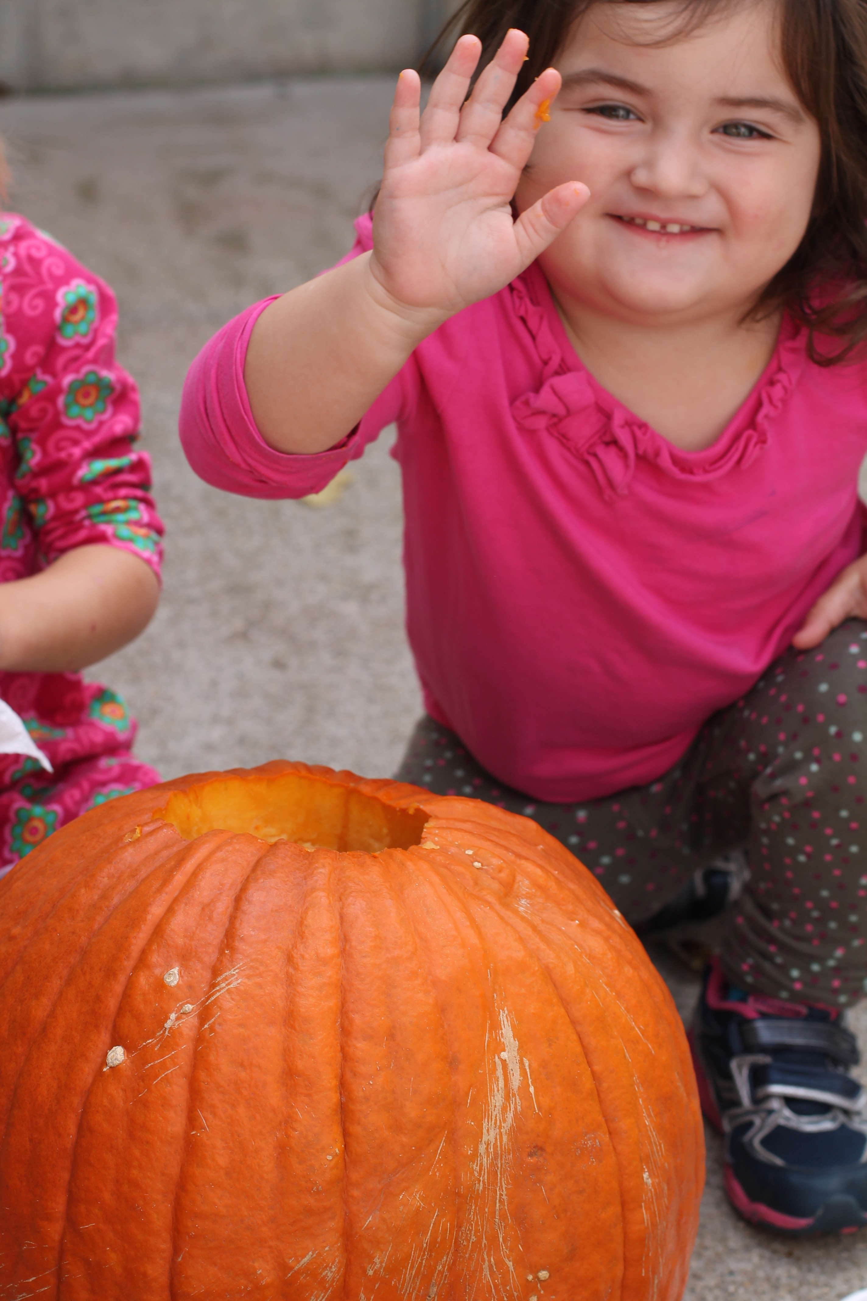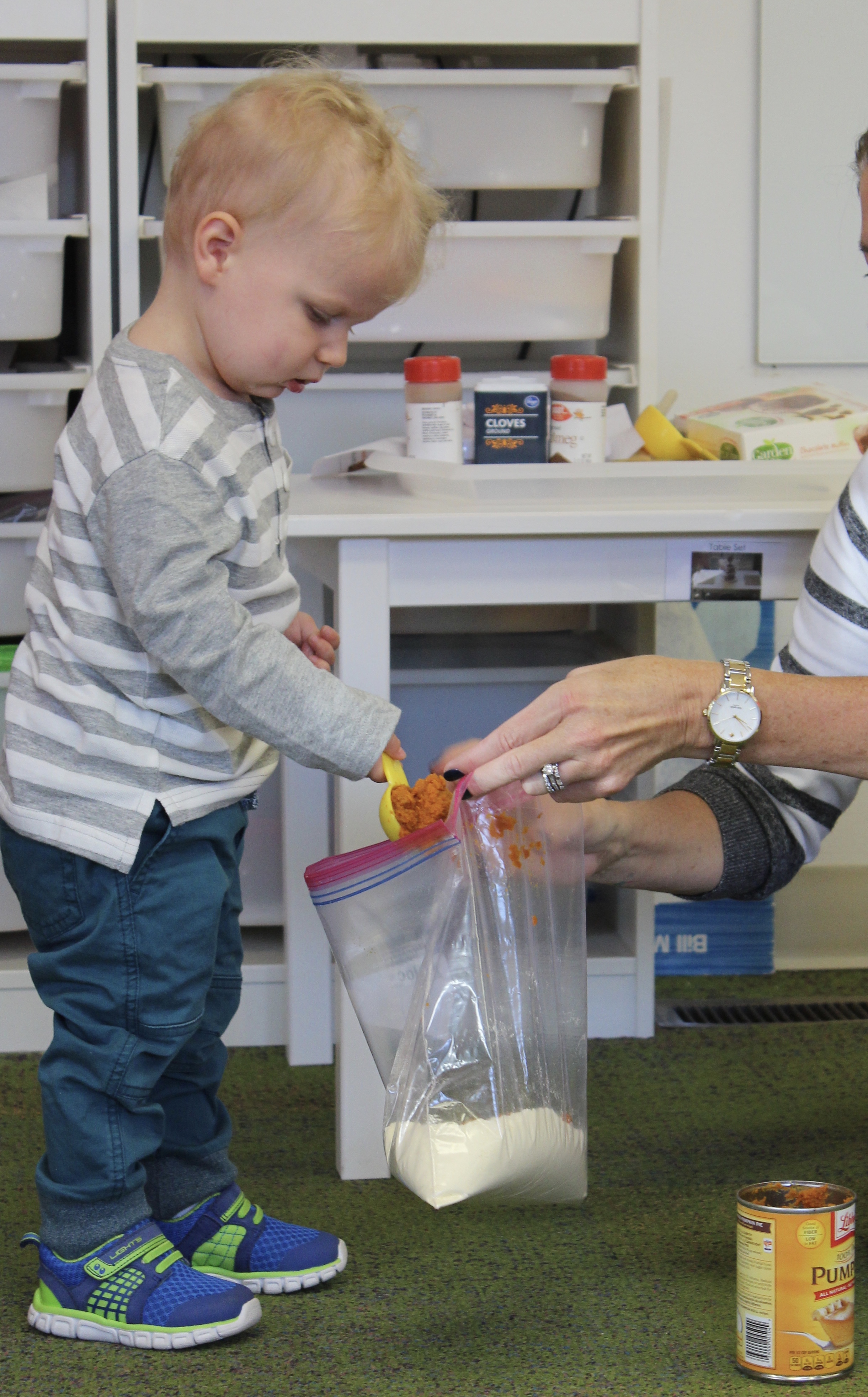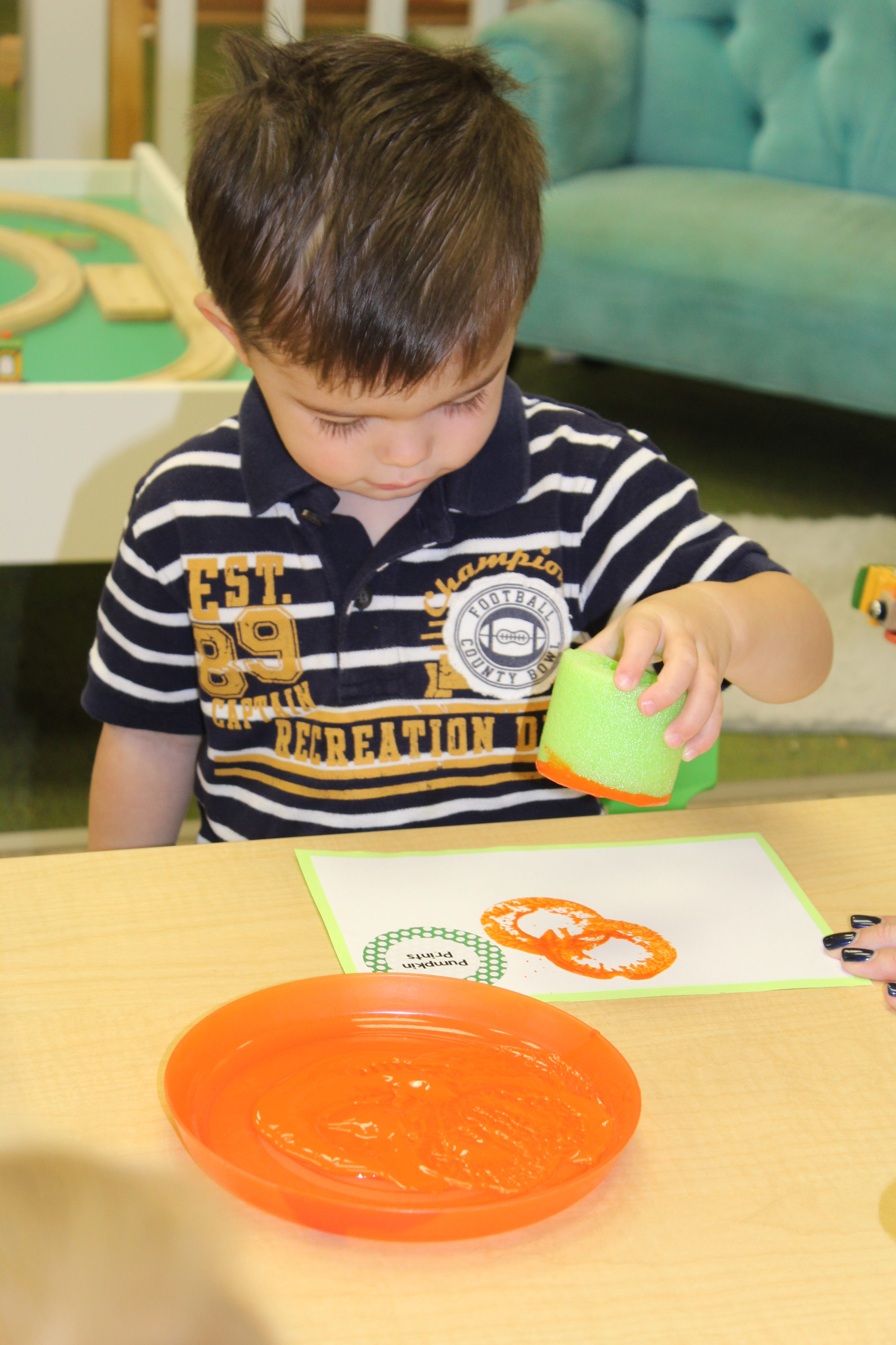Orange is the focus color for the month of October!  So many fun purposeful play experiences to immerse the toddlers in all things orange.  Pumpkins, paint, playdough, discovery bins, fine motor skills, large motor skills, new vocabulary, songs, games, and more have kept our class busy learning through play.
