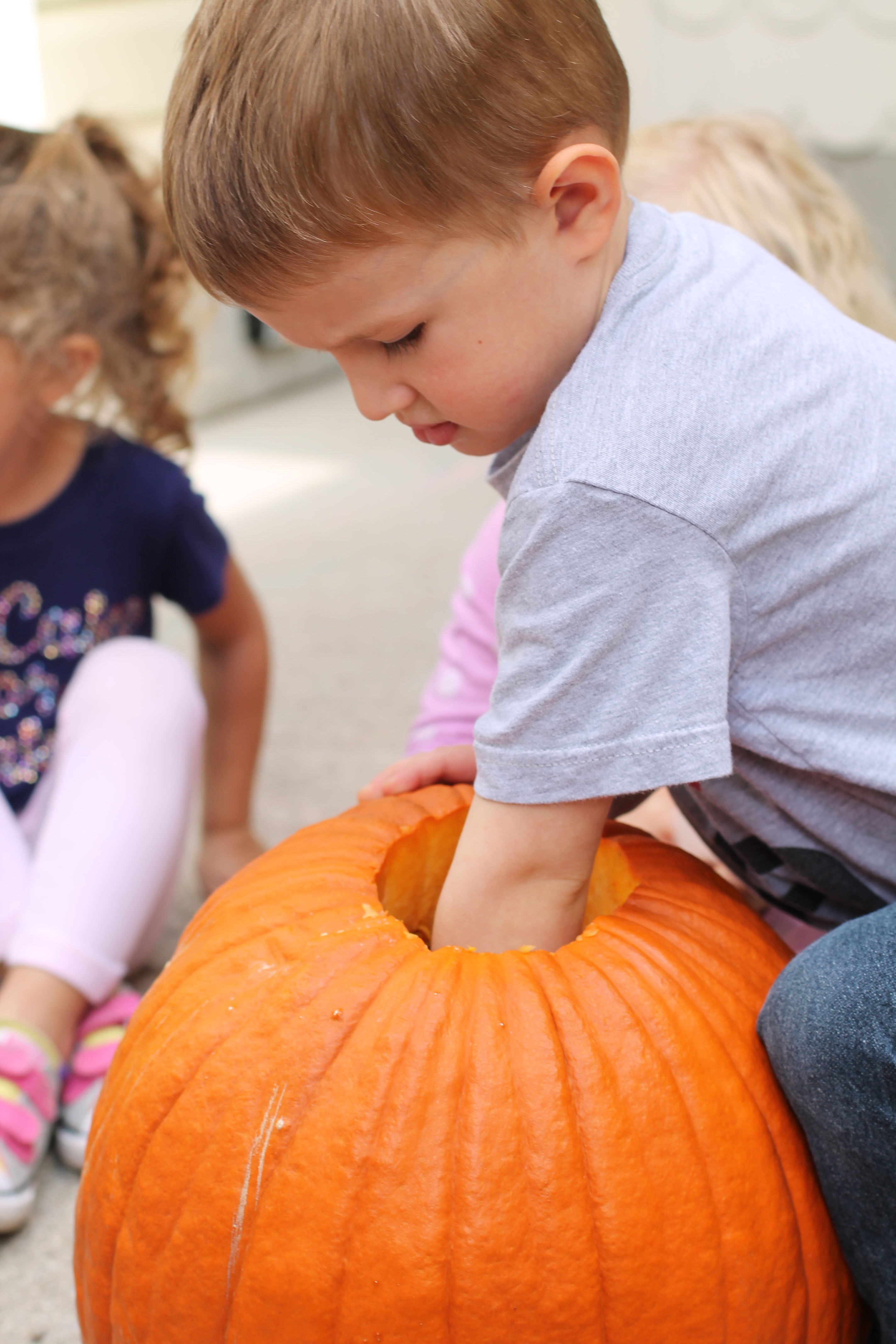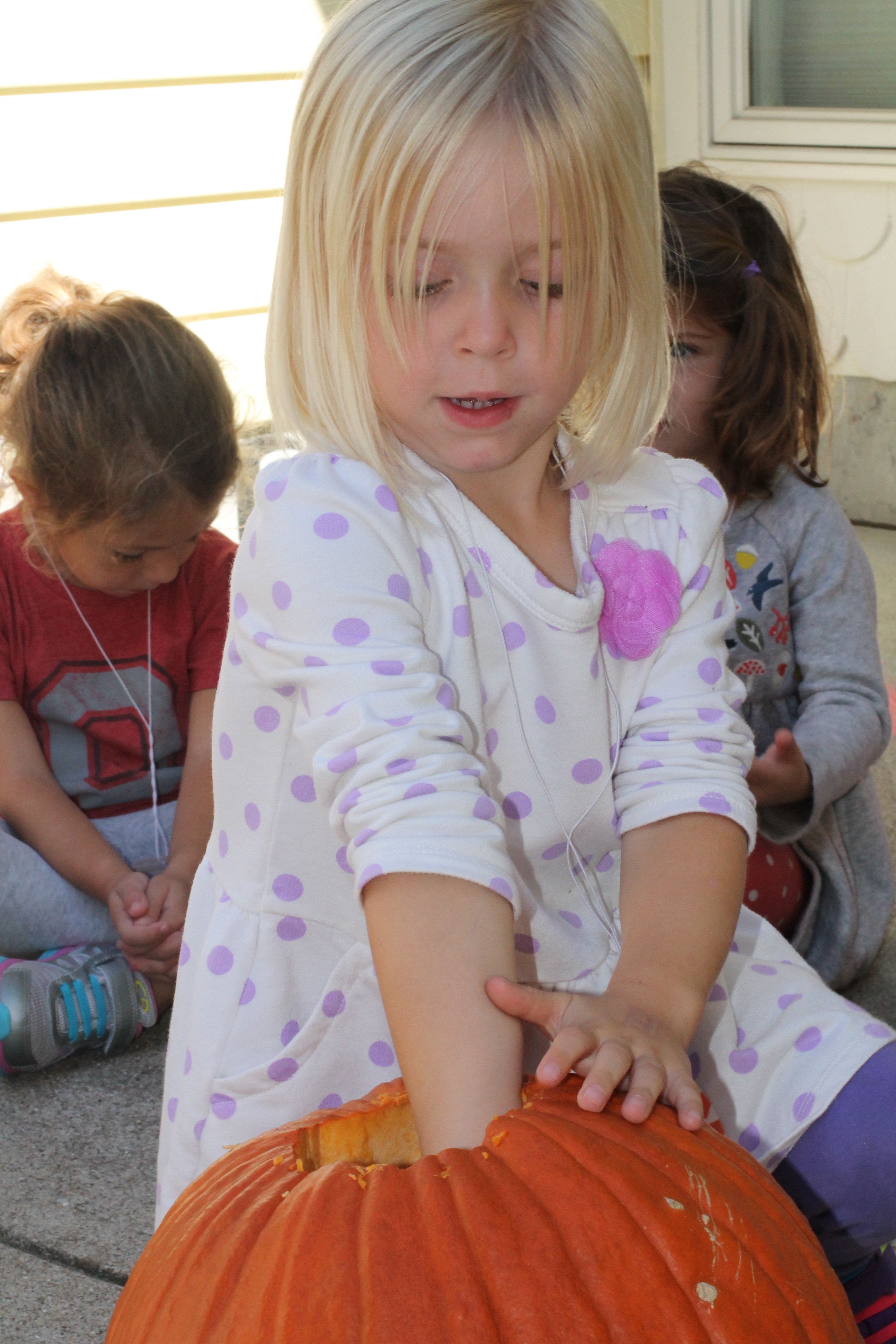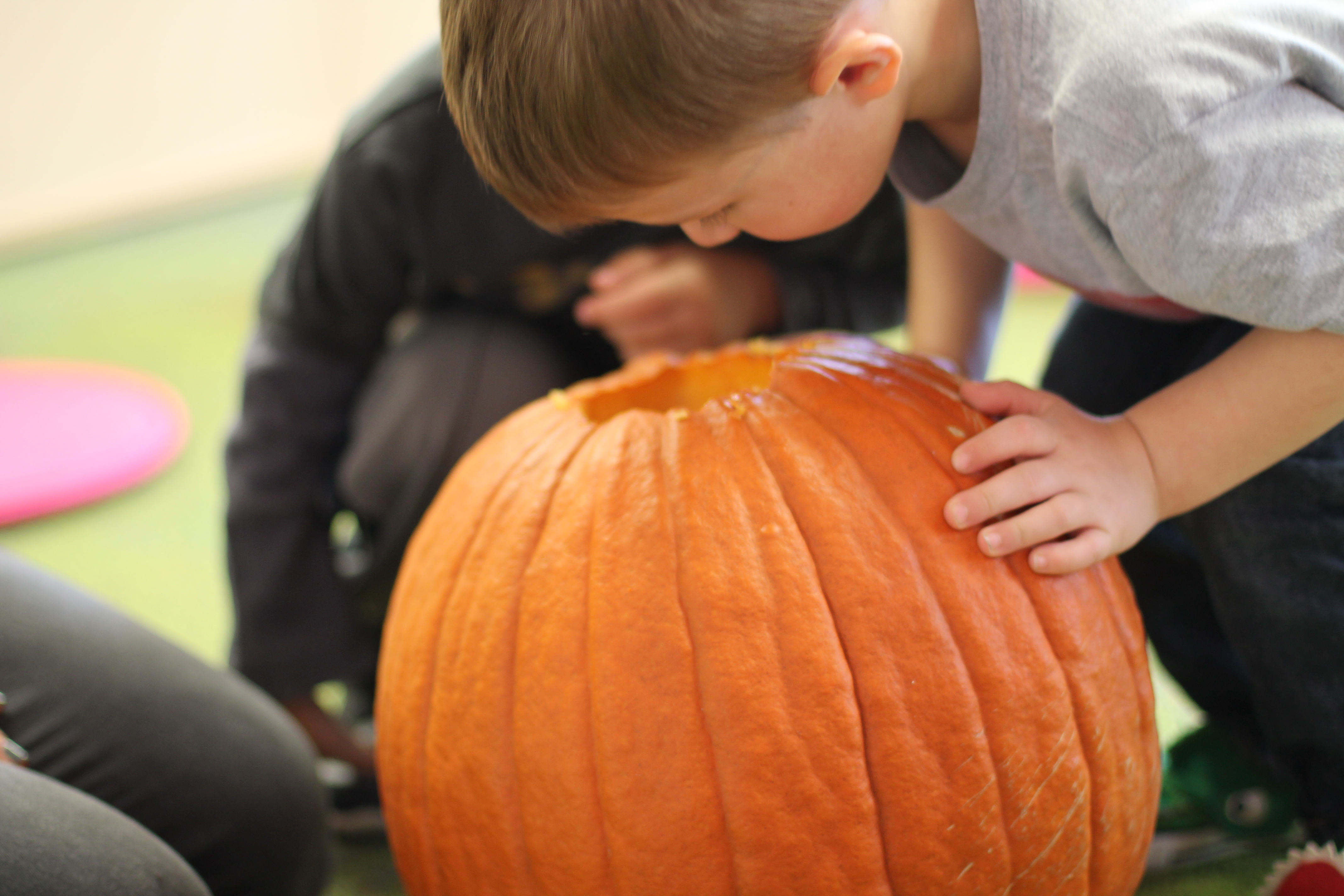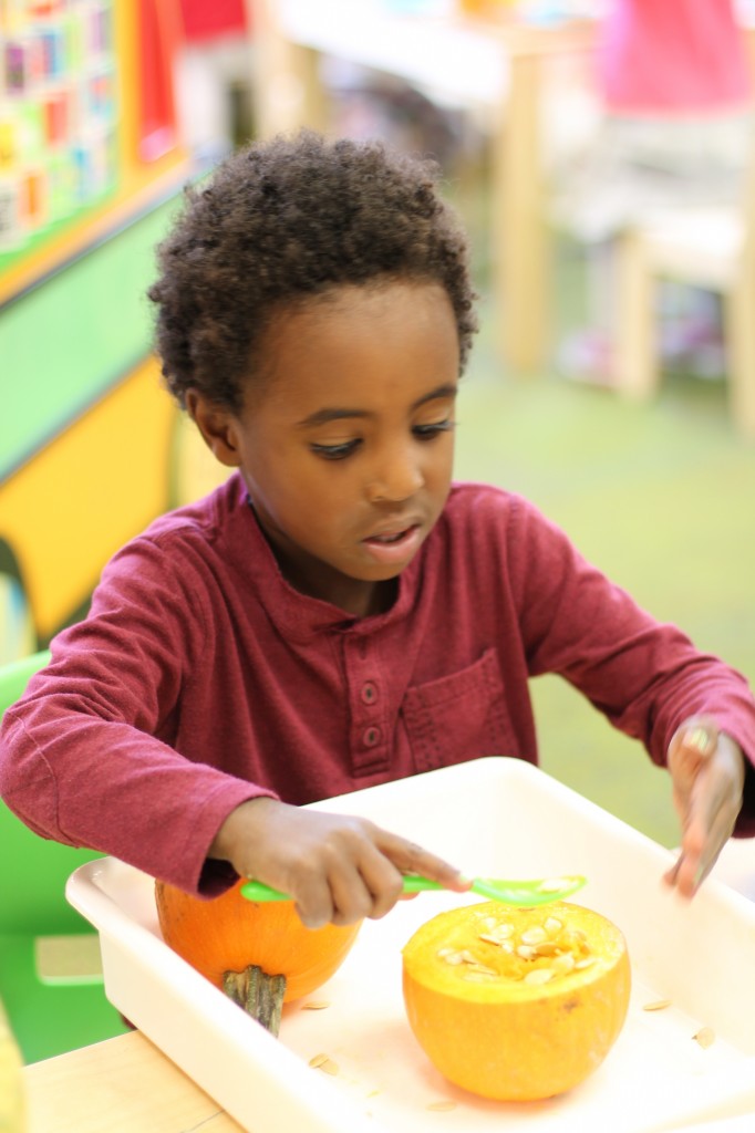 We had a lot of fun exploring our class pumpkin using all 5 of our senses! Some of us weren’t so sure we liked the “squishy” feeling inside of the pumpkin 😉