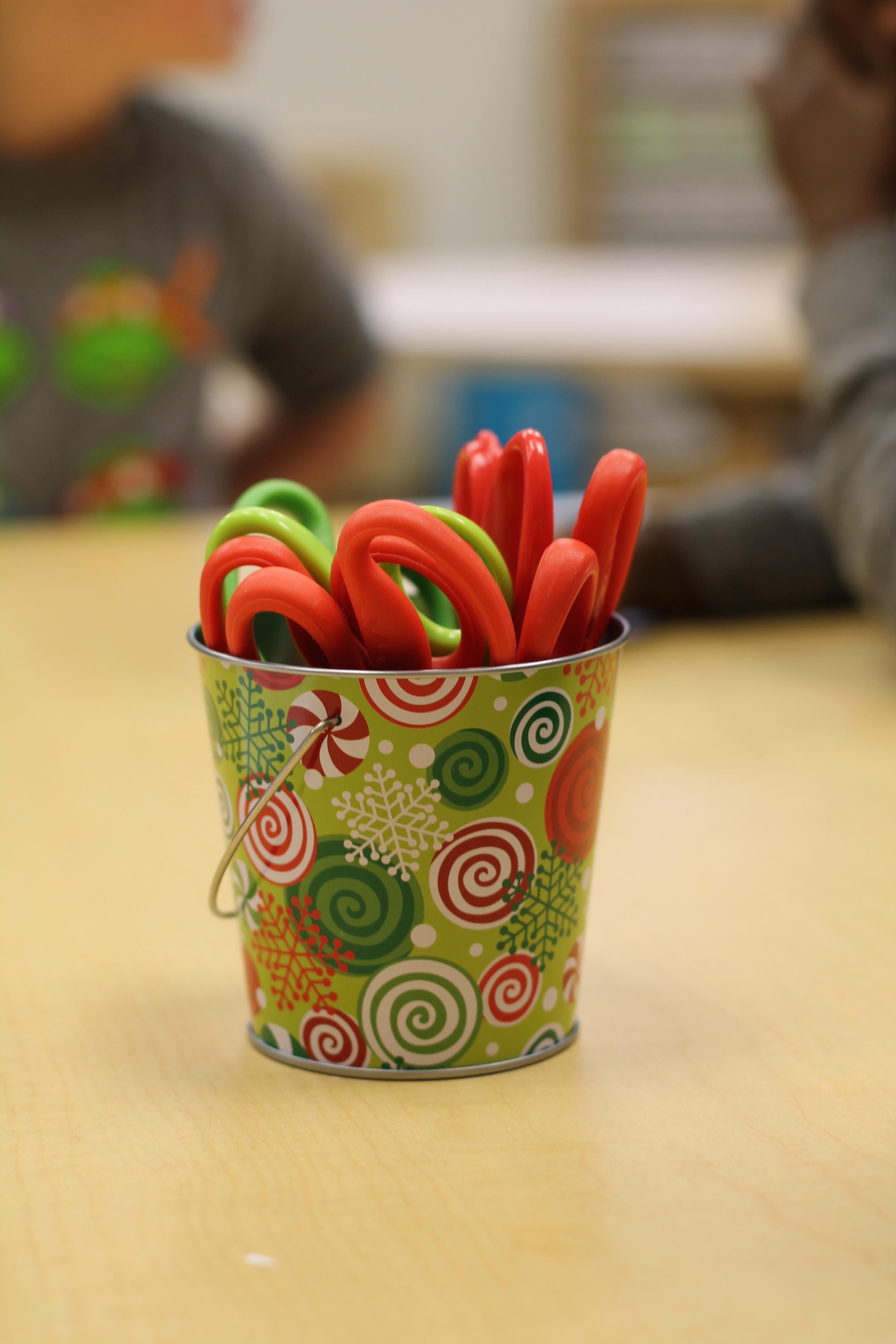 To help us with correct scissor grip, we put smiley face stickers on our thumbs. The goal is to keep our thumbs to the sky, always looking to see that smiley face!