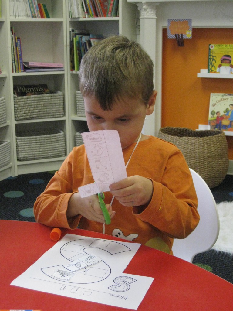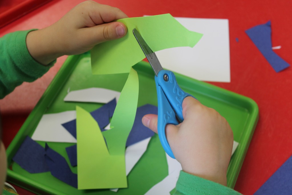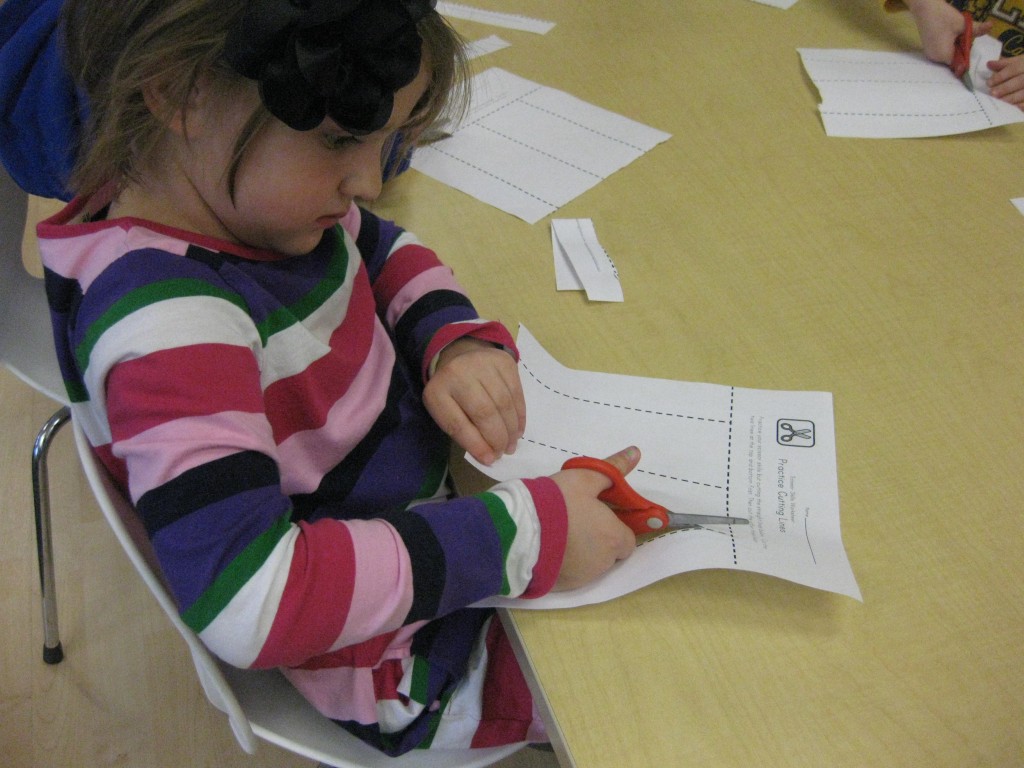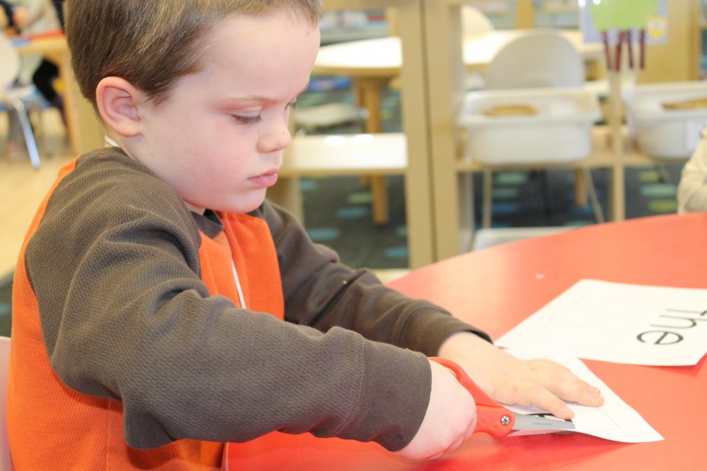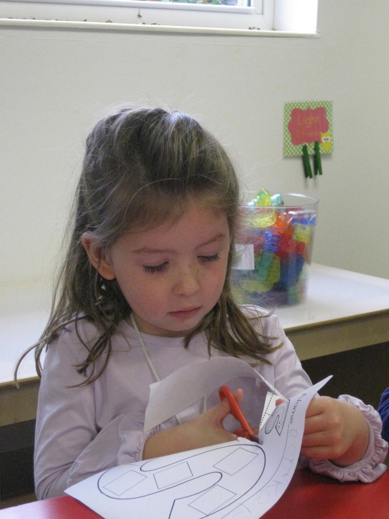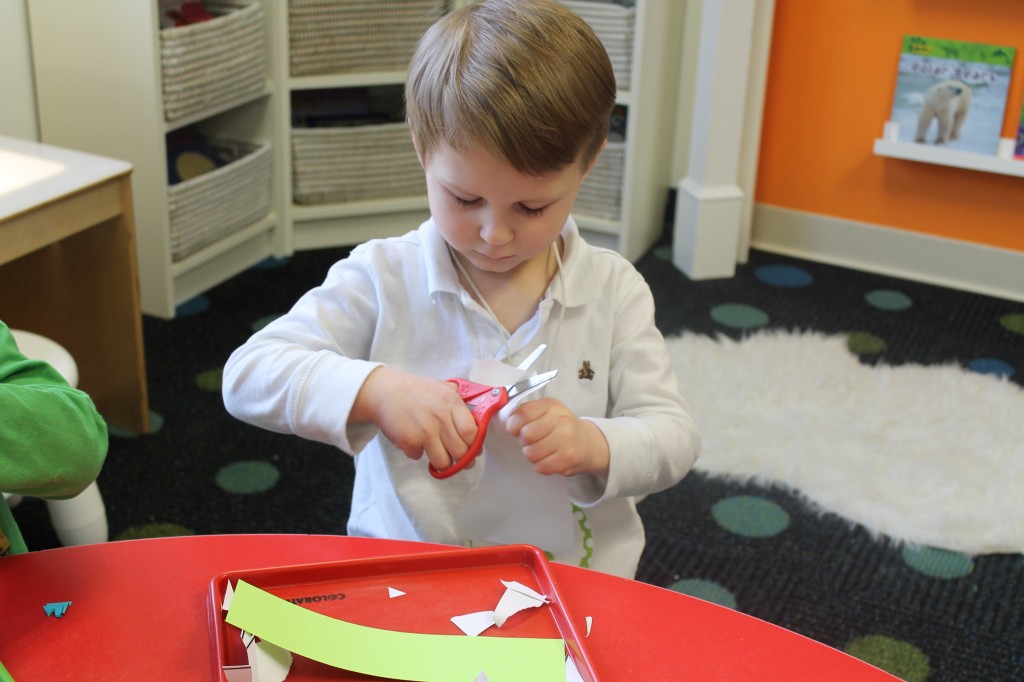 On Monday the preschoolers practiced their scissor skills. We talked about the correct way to hold scissors (two fingers in the bottom hole, one in the top, thumb always facing up), we strengthened our fine motor muscles by snipping straws. Cutting materials other than paper is a great way to develop those tiny muscles. Straws, pipe cleaners, brown bags, pasta, playdough, and other household items are great to use. This morning we used these straw bits to thread pipe cleaners. The tiny pieces are awesome for working on the pincer grip. These activities are perfect for handwriting basics. Have fun exploring ways to develop fine motor muscles at home!
