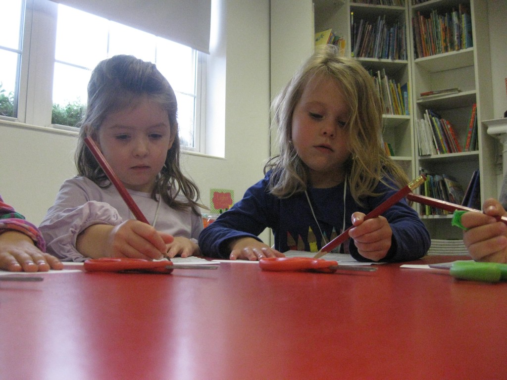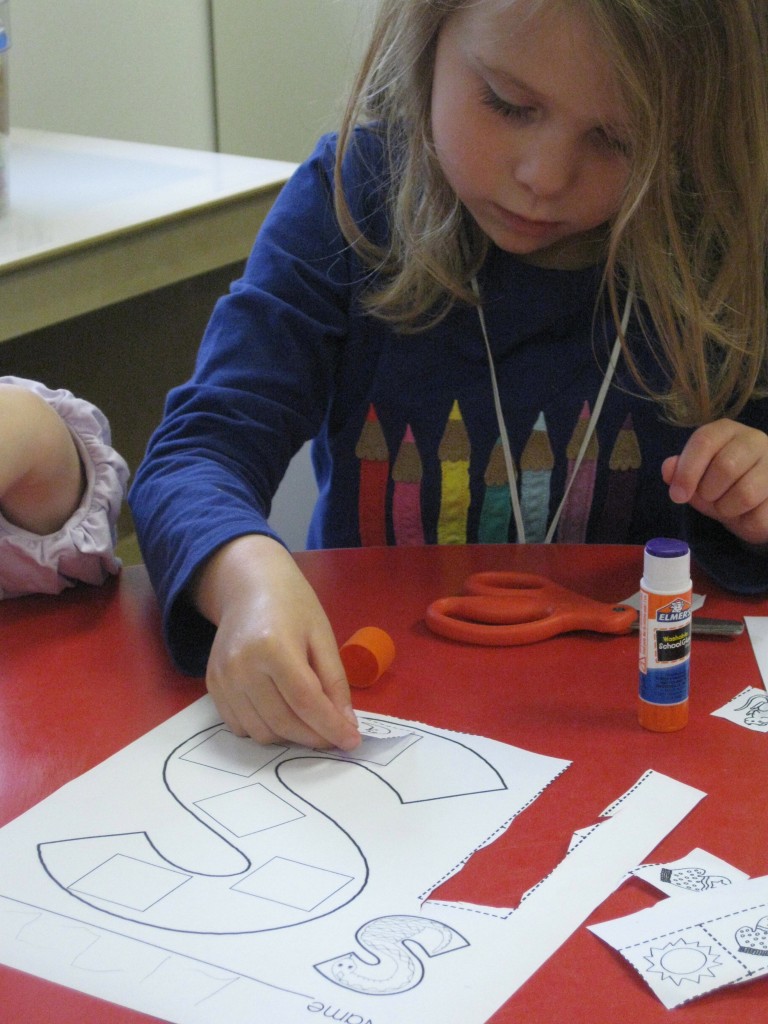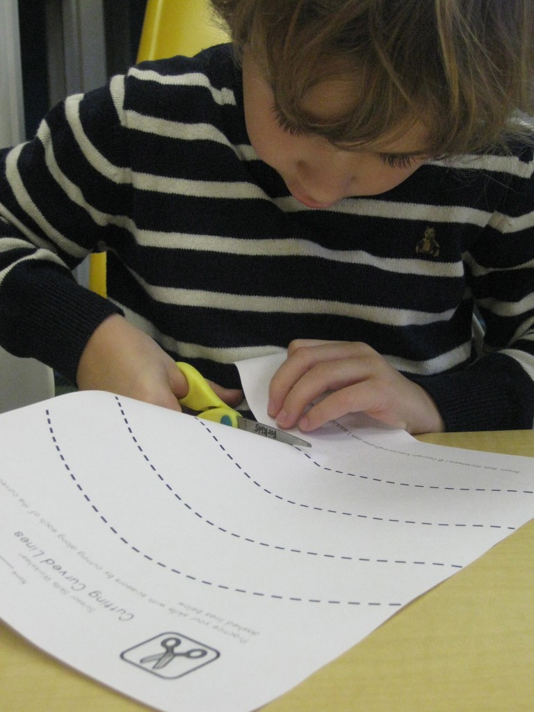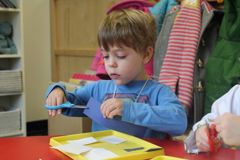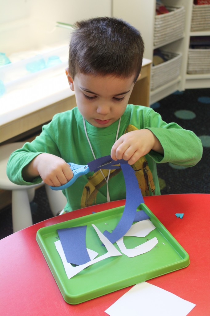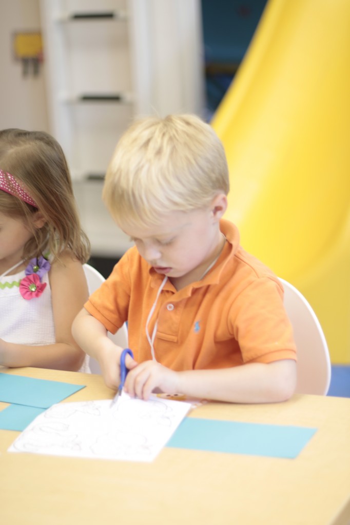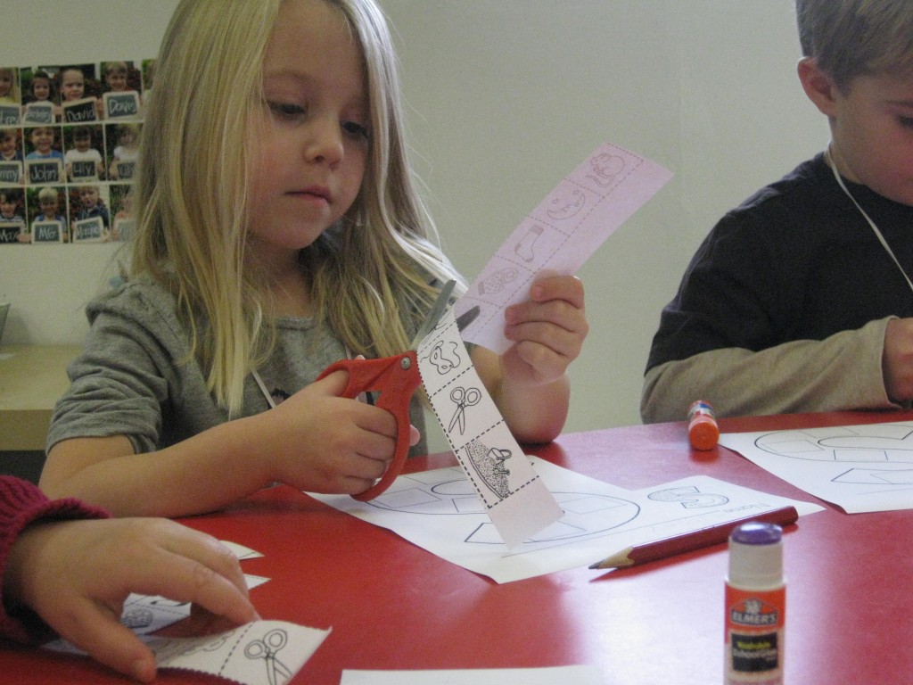 On Monday the preschoolers practiced their scissor skills. We talked about the correct way to hold scissors (two fingers in the bottom hole, one in the top, thumb always facing up), we strengthened our fine motor muscles by snipping straws. Cutting materials other than paper is a great way to develop those tiny muscles. Straws, pipe cleaners, brown bags, pasta, playdough, and other household items are great to use. This morning we used these straw bits to thread pipe cleaners. The tiny pieces are awesome for working on the pincer grip. These activities are perfect for handwriting basics. Have fun exploring ways to develop fine motor muscles at home!