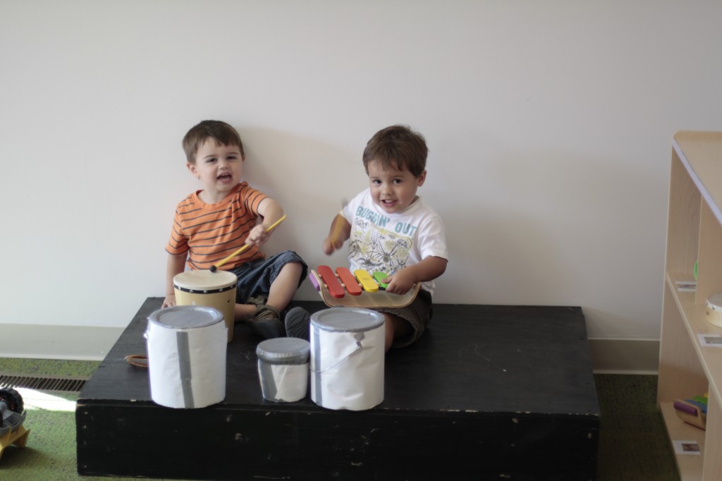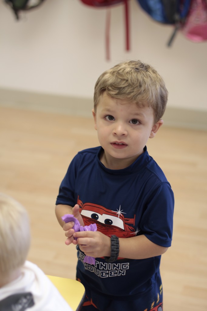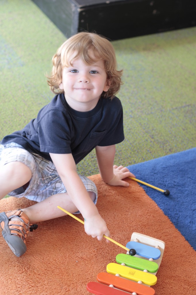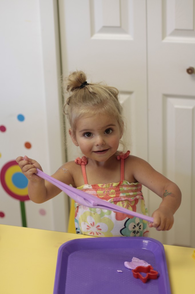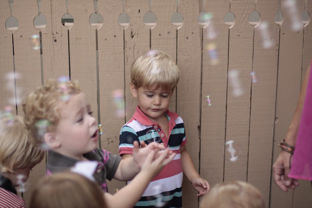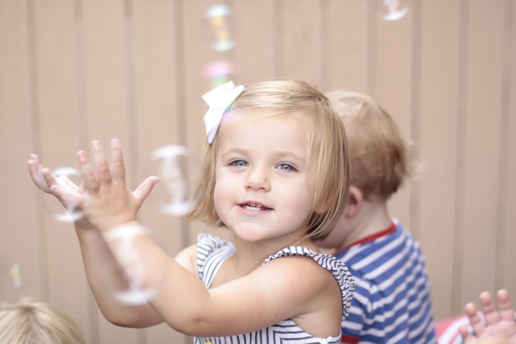 We continued our music theme for the week with exploring musical instruments, singing, dancing with ribbons, and so on! We’ve had a lot of fun in the music center. Also, I brought in my guitar, and we sang together at the end of the day. Miss Kate taught the children a new song: “The Baby Bumblebee Song.” It was an instant hit! 🙂 The children also enjoyed the bee wings we made to go along with our “Flight of the Bumblebee” theme for day 3. Aside from the music theme for the week, the children had fun playing with bubbles and bouncing in the bouncy house.
