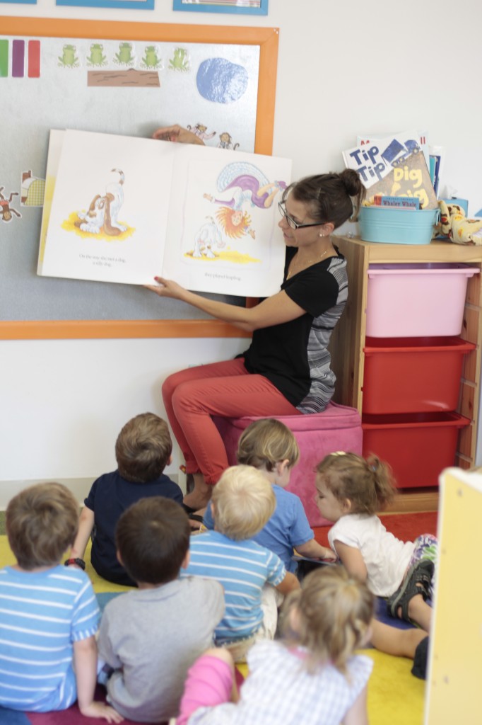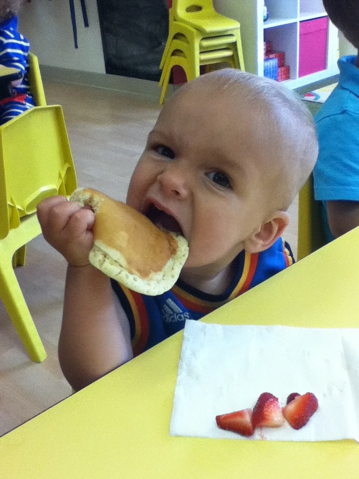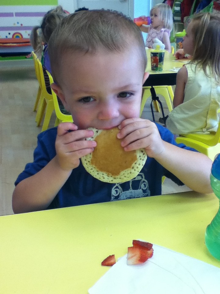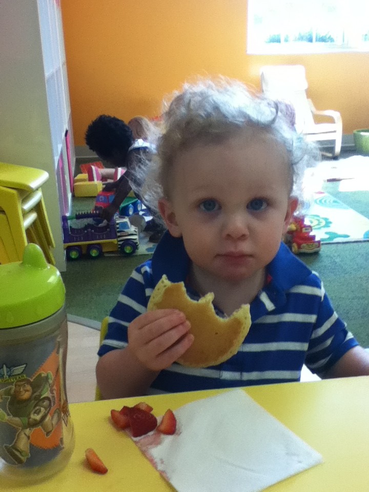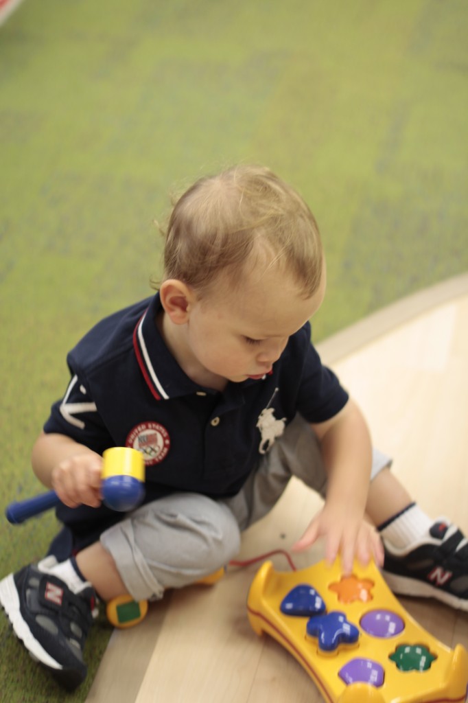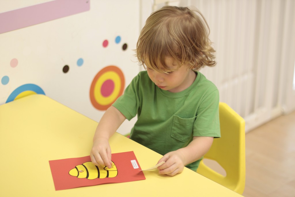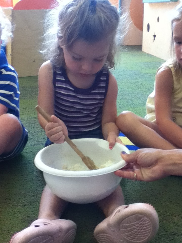 We continued our music theme for the week with exploring musical instruments, singing, dancing with ribbons, and so on! We’ve had a lot of fun in the music center. Also, I brought in my guitar, and we sang together at the end of the day. Miss Kate taught the children a new song: “The Baby Bumblebee Song.” It was an instant hit! 🙂 The children also enjoyed the bee wings we made to go along with our “Flight of the Bumblebee” theme for day 3. Aside from the music theme for the week, the children had fun playing with bubbles and bouncing in the bouncy house.