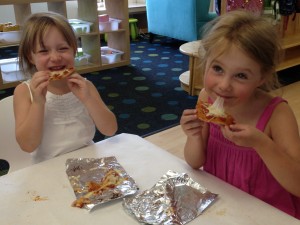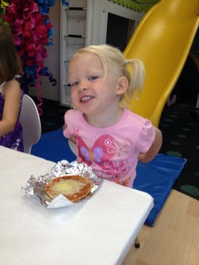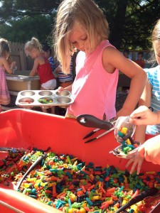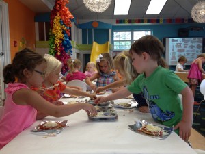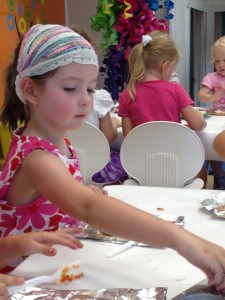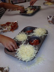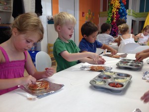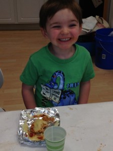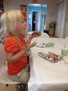 Cooking with children provides practical experience with many skills such as following directions and measuring.  It helps toddlers develop fine motor skills, eye hand coordination and even early concepts of math and science.  We make chocolate chip muffins when talking about the letter M then oatmeal cookies when focusing on the letter O.  The toddlers also tasted chicken soup with rice after reading the book by Maurice Sendak.  Fun process – yummy product!