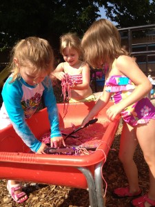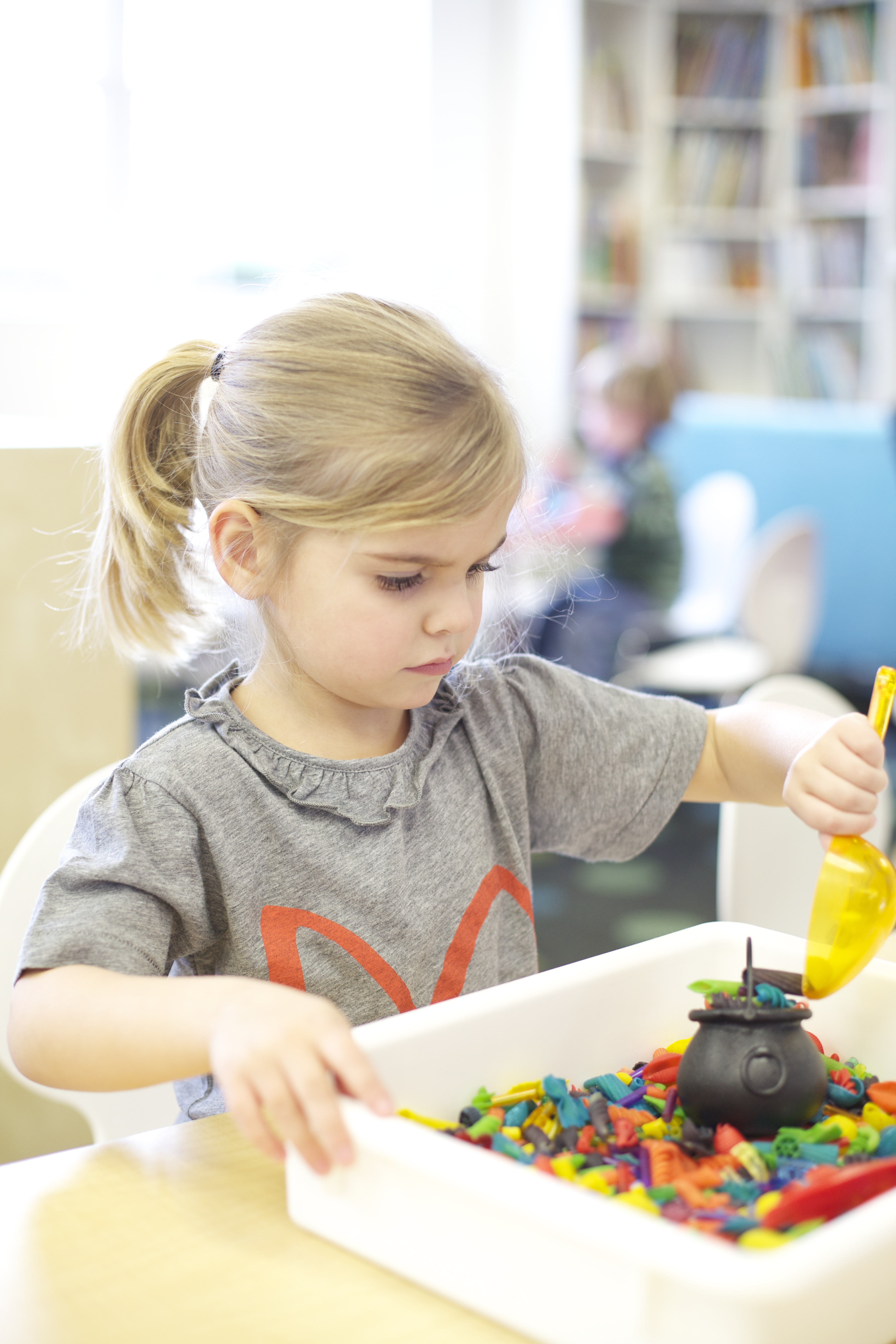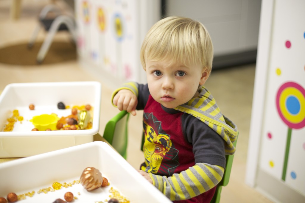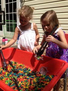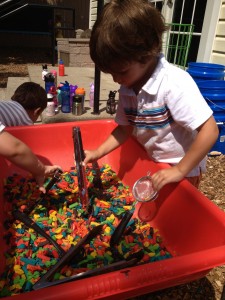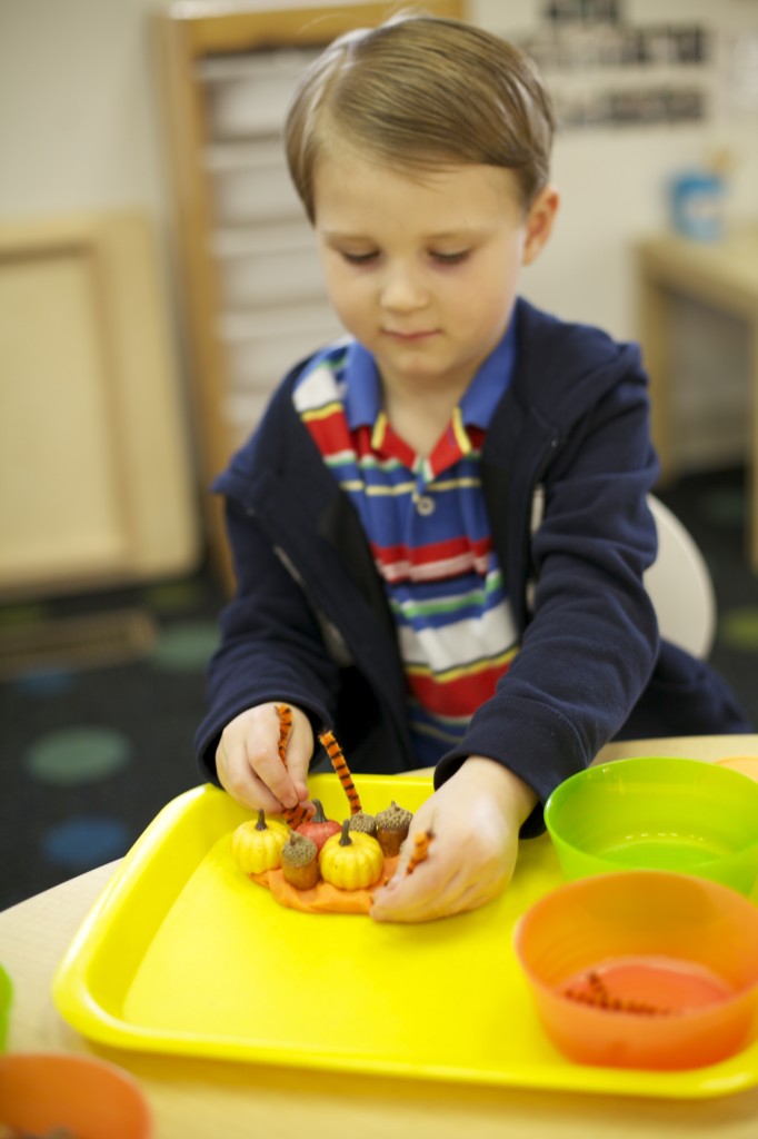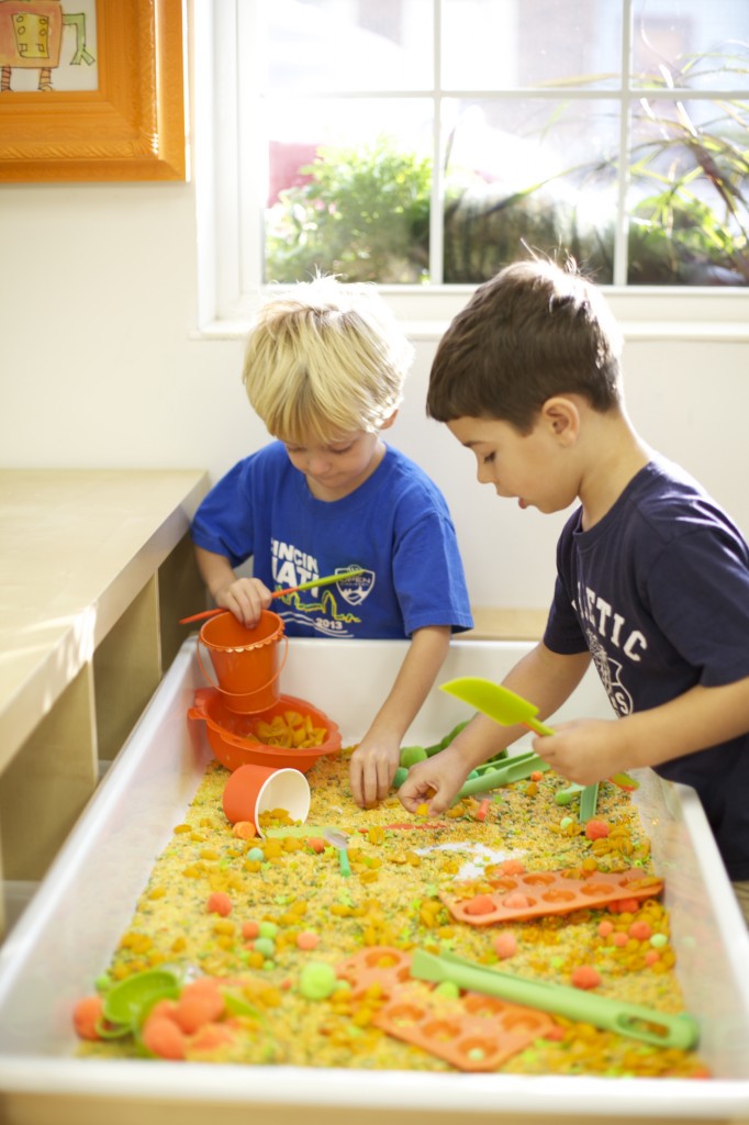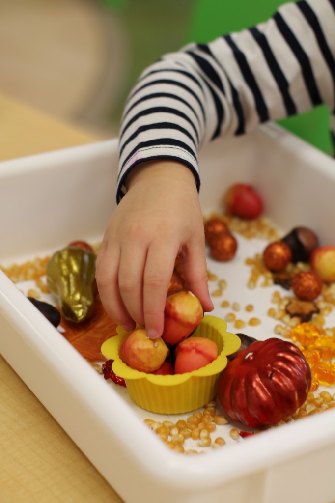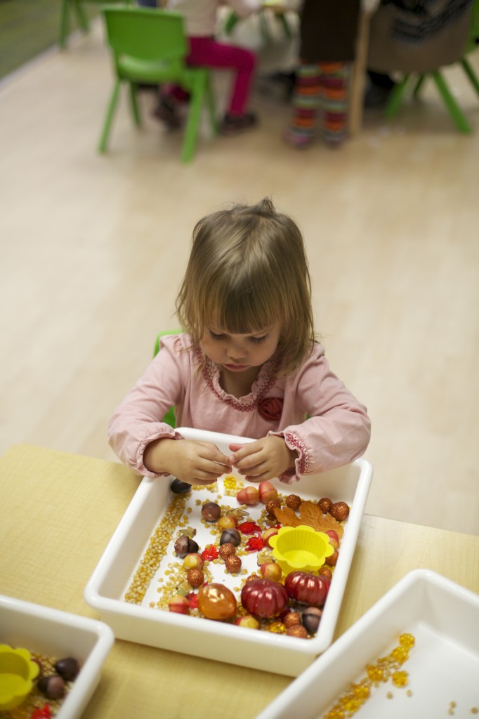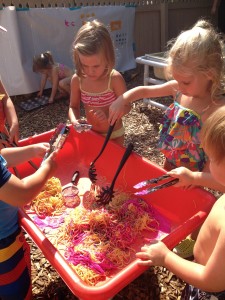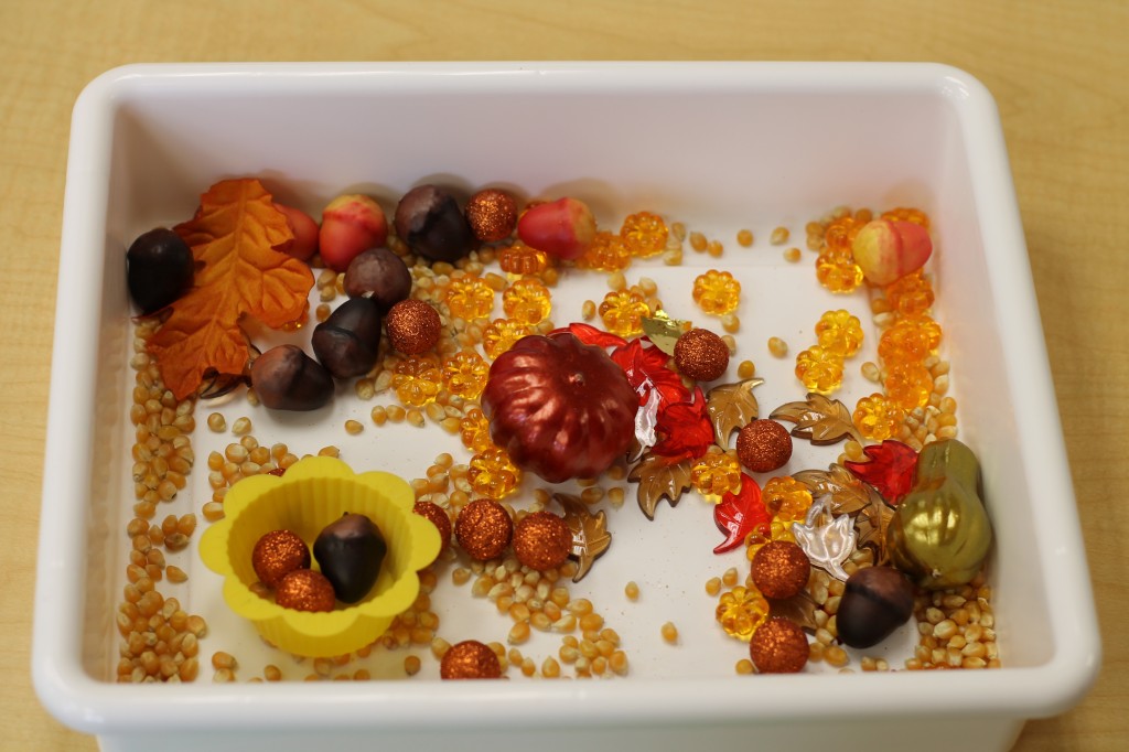 Sensory play supports language and cognitive growth, fine motor skills, and problem solving skills.  It aids in enhancing memory functioning and  is great for calming.  The sensory tub and discovery bins are popular in our room.  This is truly hands-on learning!