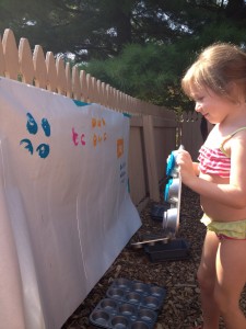We have been focusing on the color yellow in the toddler room this month.  Our sensory tub is filled with fun items to “make lemonade”.  We are creating with yellow play dough and  yellow collage free art.