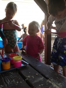 Creating is important for the toddlers.  They improve their fine motor skills, experimenting with materials is the foundation for science, and it provides a sense of pride which boosts self confidence.  We often do crafts in small groups which allows for instruction and discussion of shapes, colors, letters, counting, and theme vocabulary.