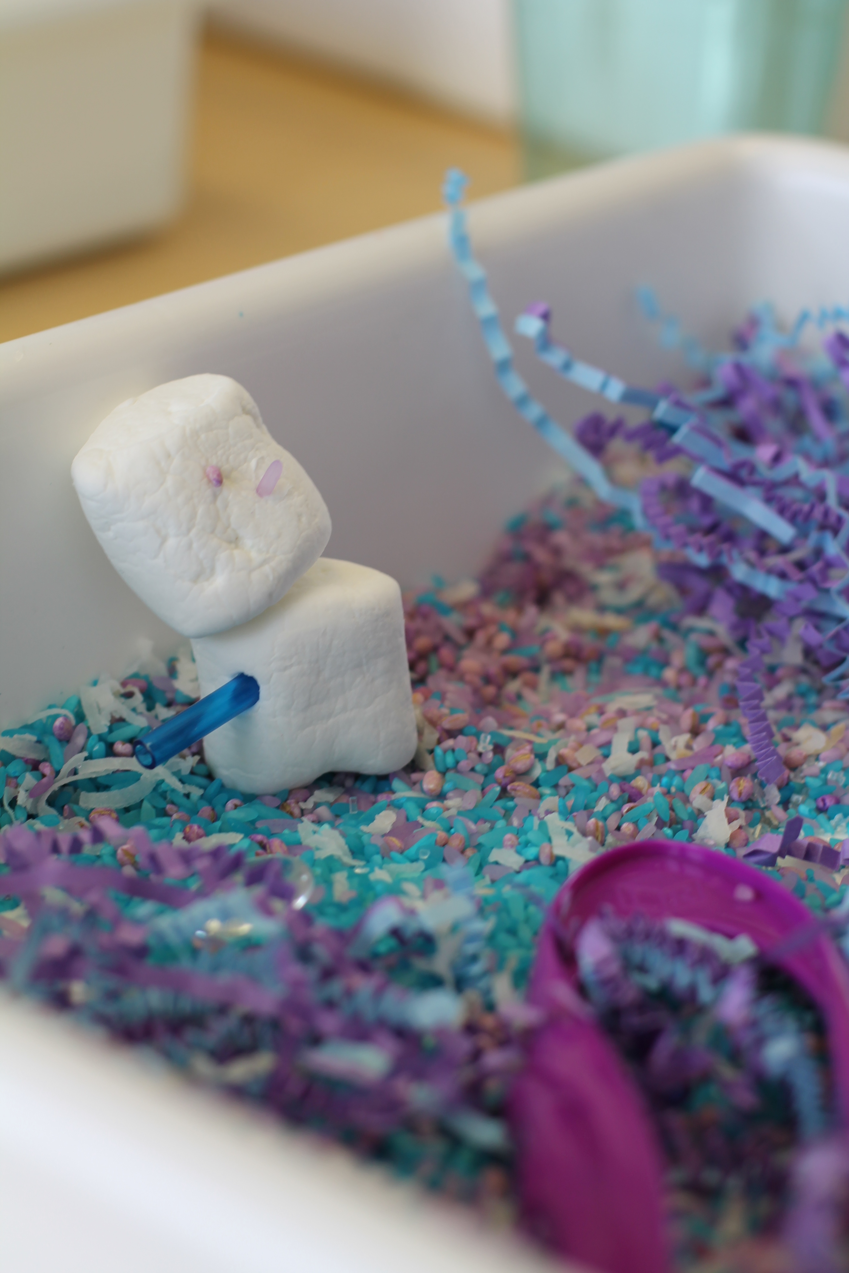 The toddler class is making the most of our time indoors on these cold days.  We have enjoyed some extra center time, baked, painted, crafted, crawled through an arctic cave and bounced “snowballs” on the parachute!