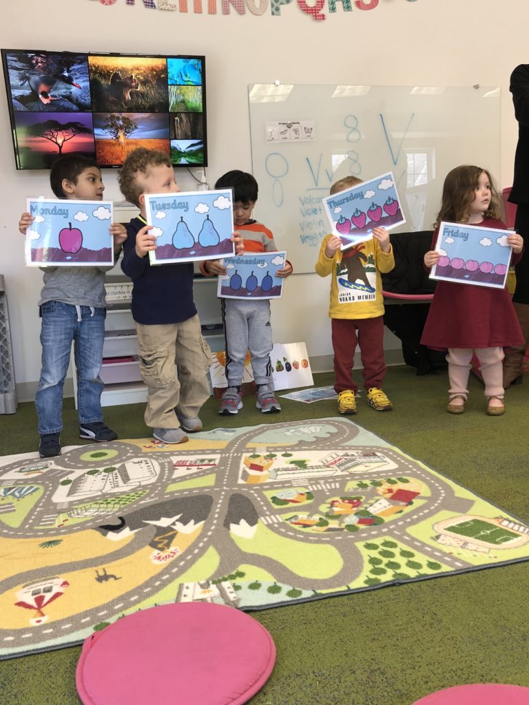 Spring has arrived, and we have started learning about bugs and plant life! We read “The Very Hungry Caterpillar” and retold the story with pictures cards.  We then acted out the butterfly life cycle!