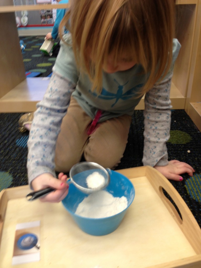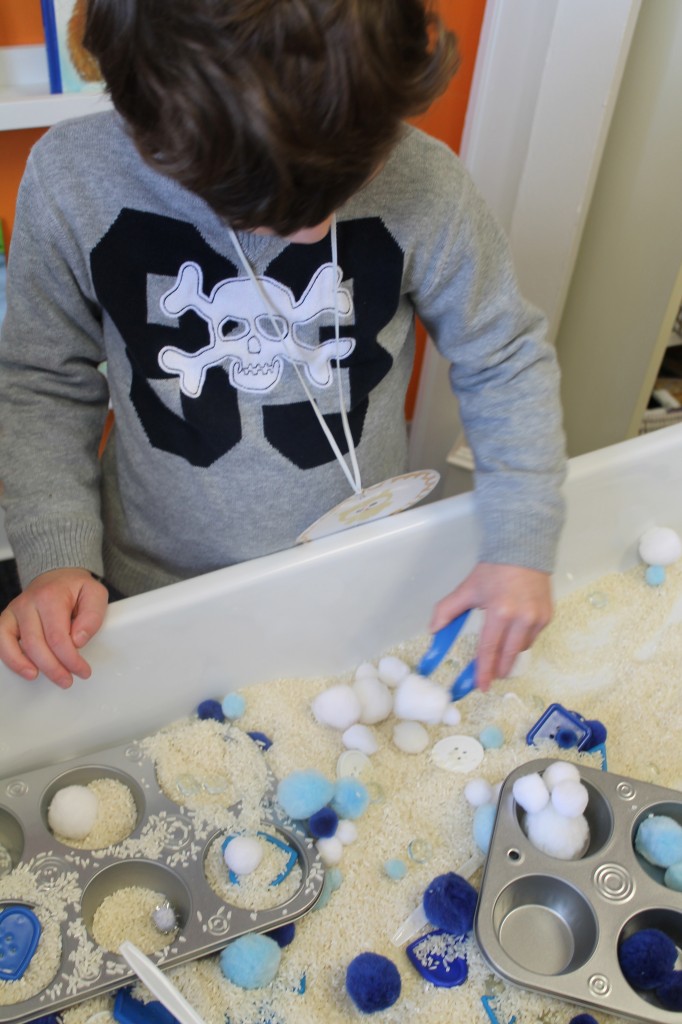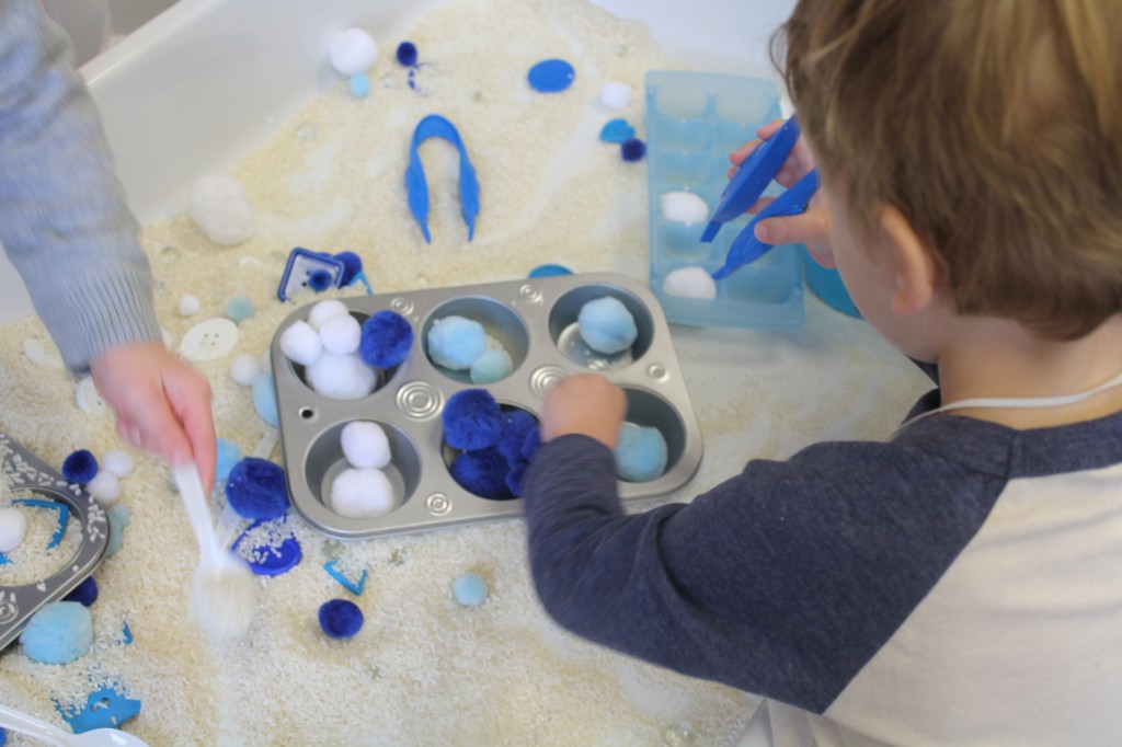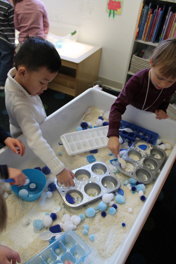 While exploring at the Sensory Tub children exercise problem solving skills, natural curiosity, and teamwork. Preschoolers connect real world materials with experience and senses while developing and understanding of volume and capacity. Pouring, scooping, sifting, and digging strengthen fine motor muscles as well.