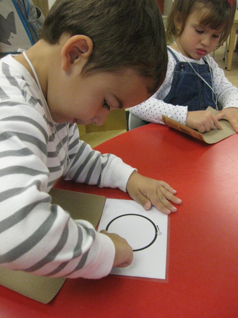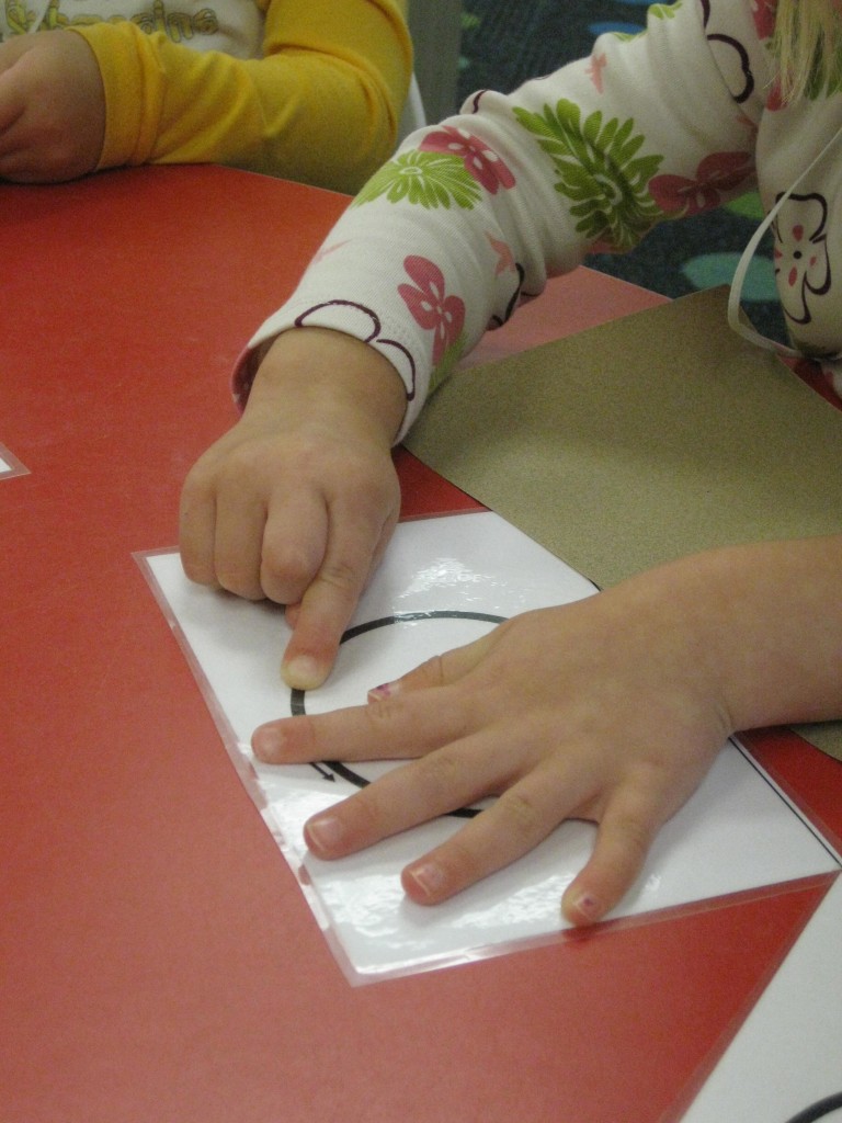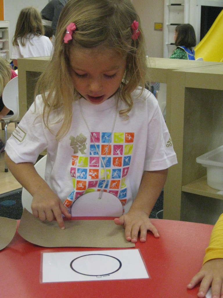 The preschoolers matched colors and shapes while strengthening their fine motor muscles today. Building strong fine motor skills helps develop the handwriting process.
