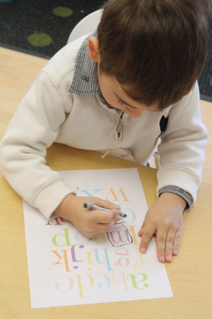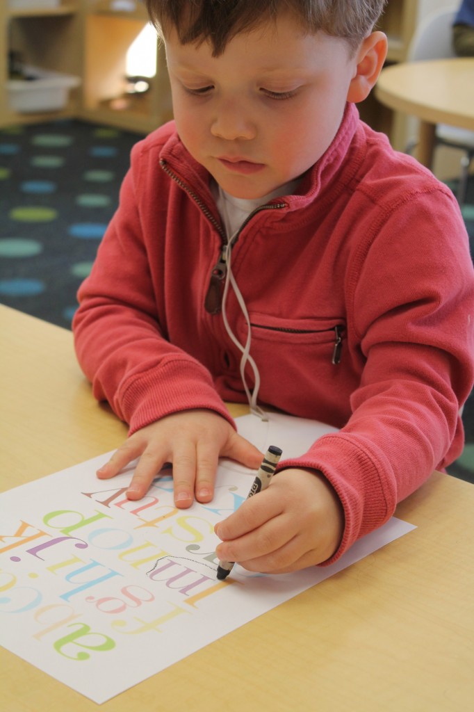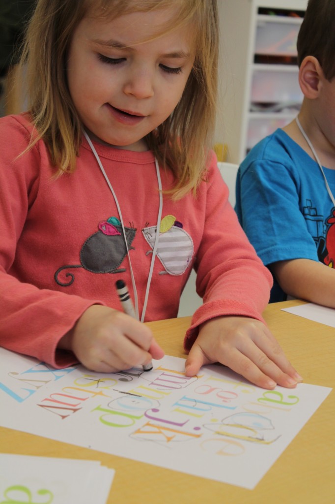 The preschoolers used those listening ears to see how well they could follow directions this morning. We practiced letter recognition, letter sounds, crayon grip, and fine motor skills while we were at it!
