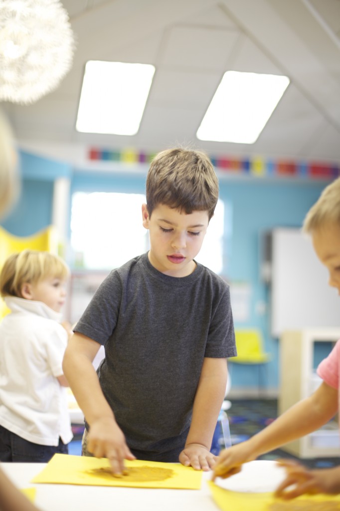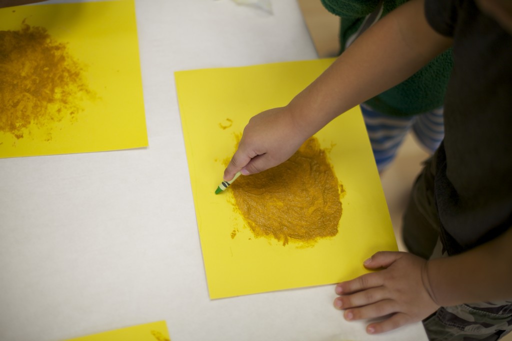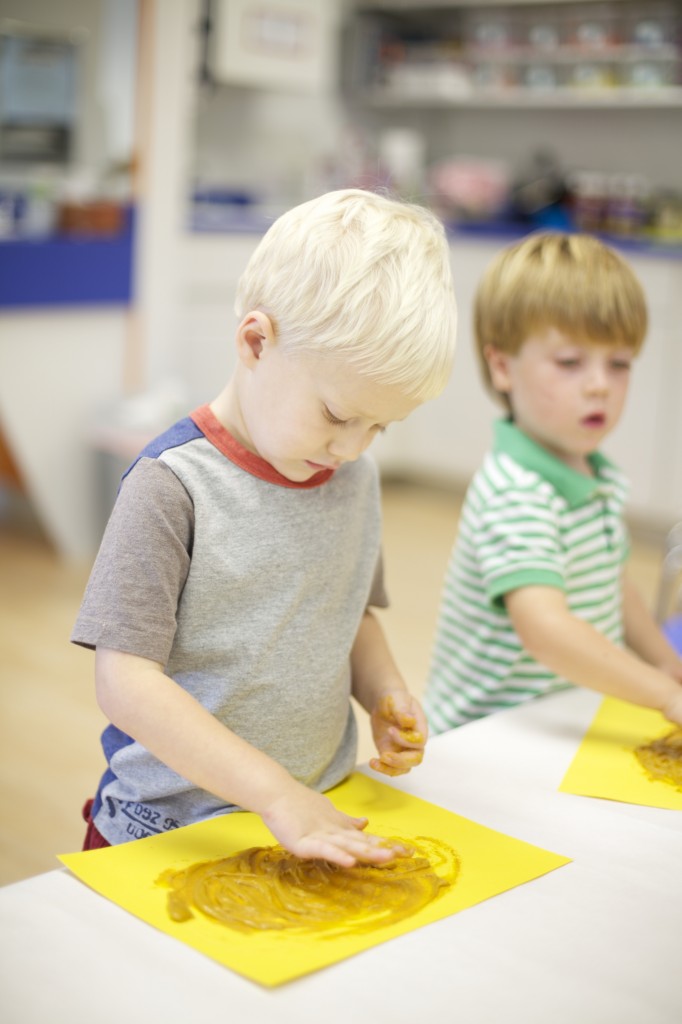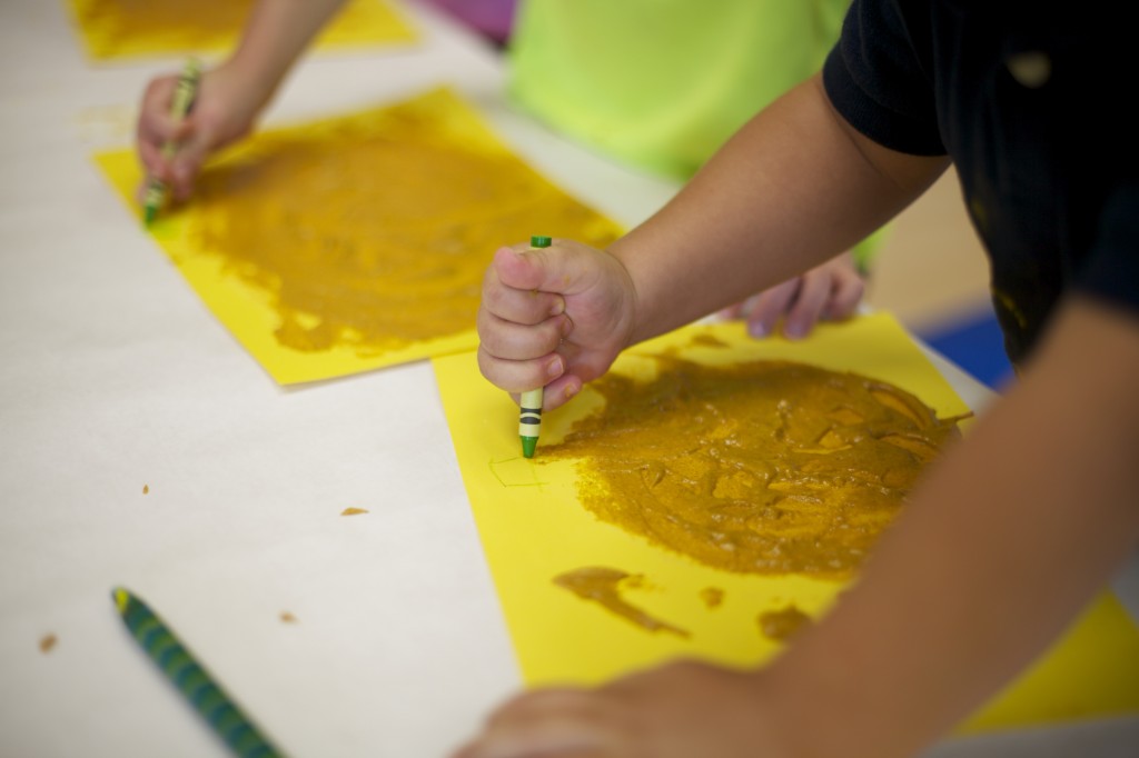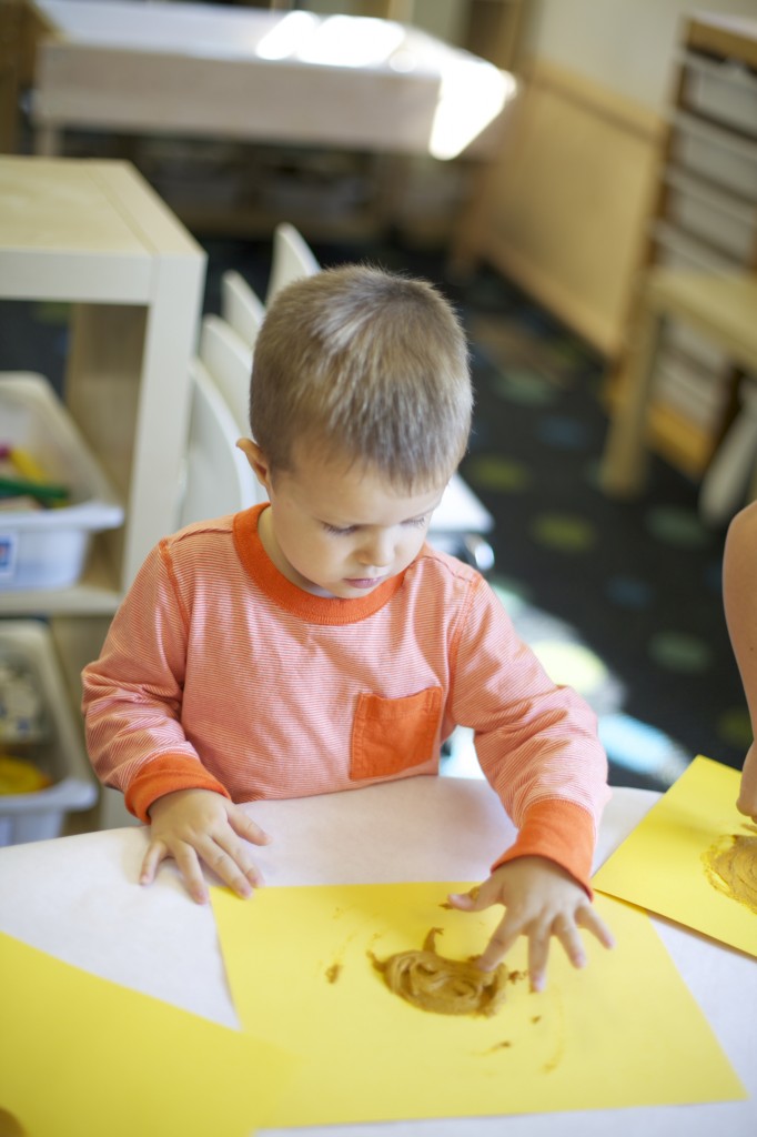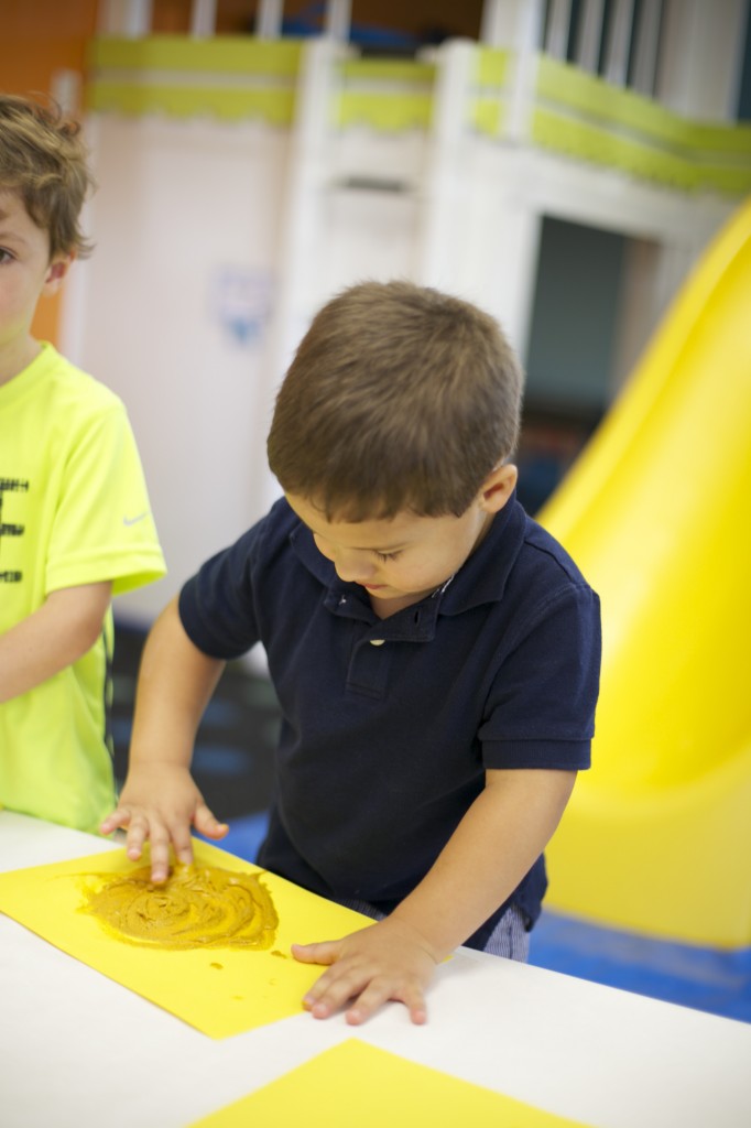 Our toddler friends practiced using a glue stick again in their art project with Ms. Kristen! They made owls using the triangle, too!