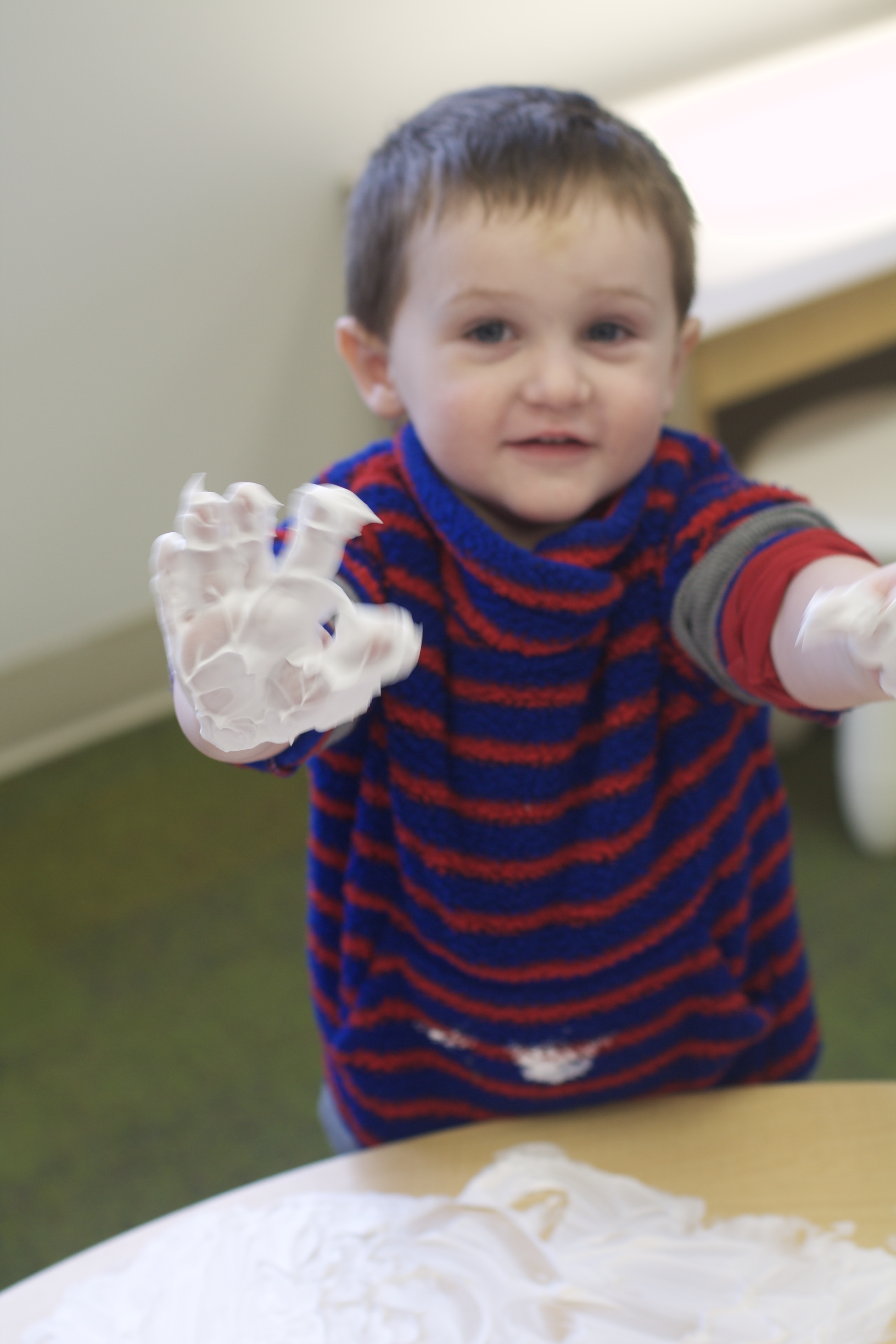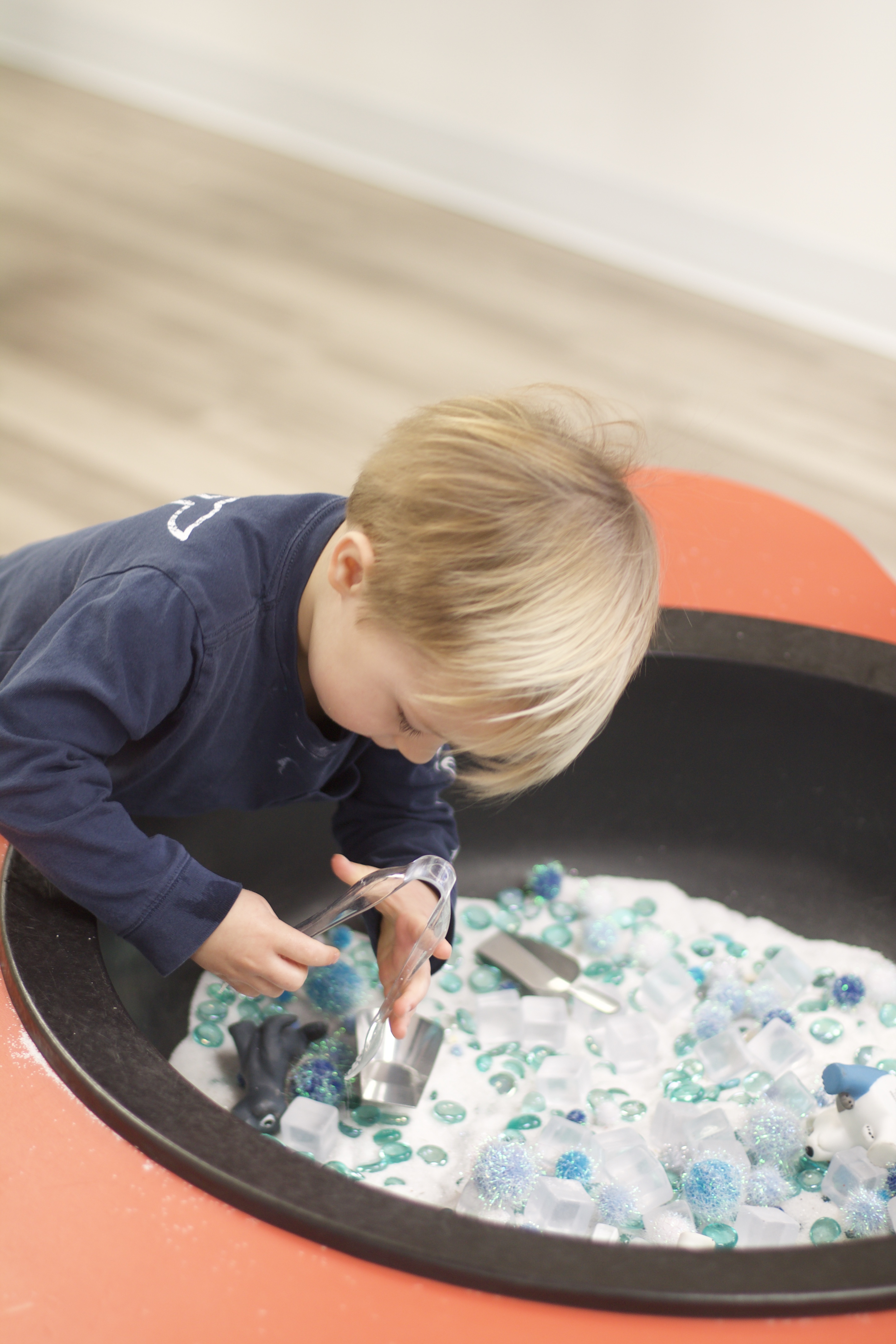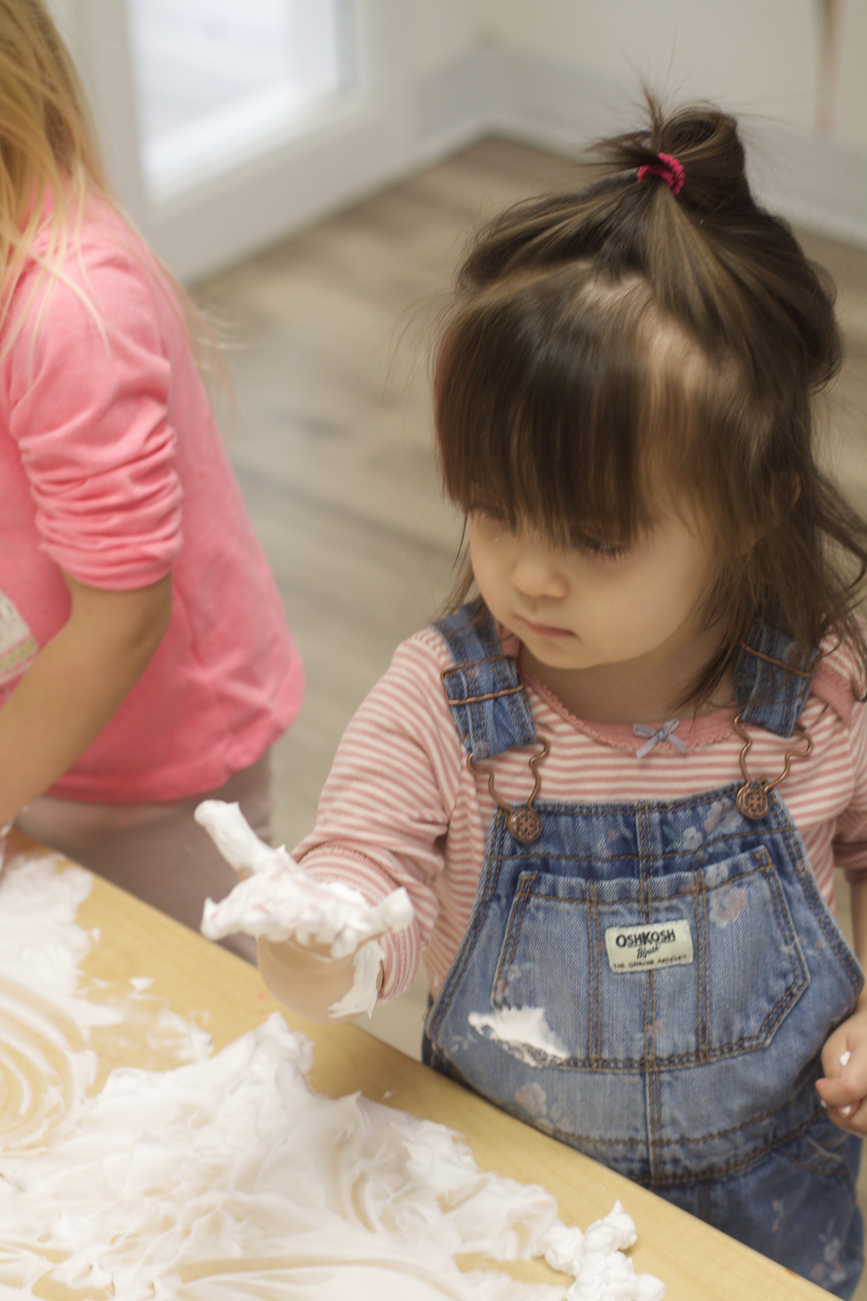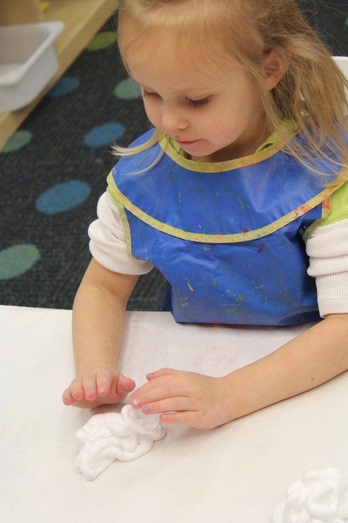 We are enjoying the wonders of winter and the color white through sensory experiences. Sensory activities facilitate exploration and naturally encourage children to use scientific processes while they play, create, investigate and explore.