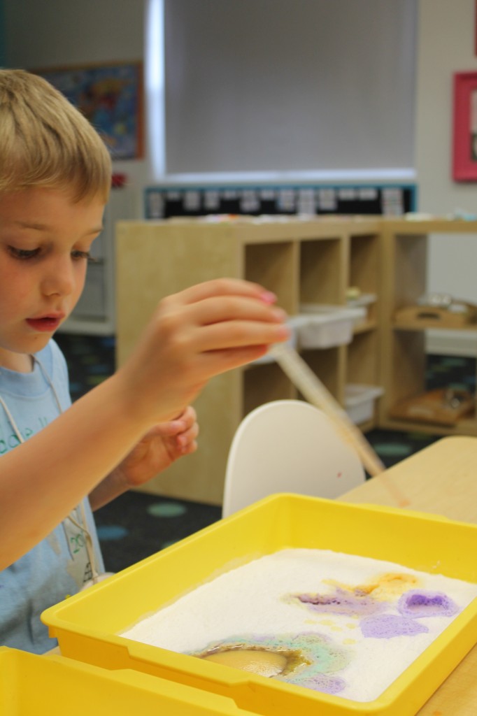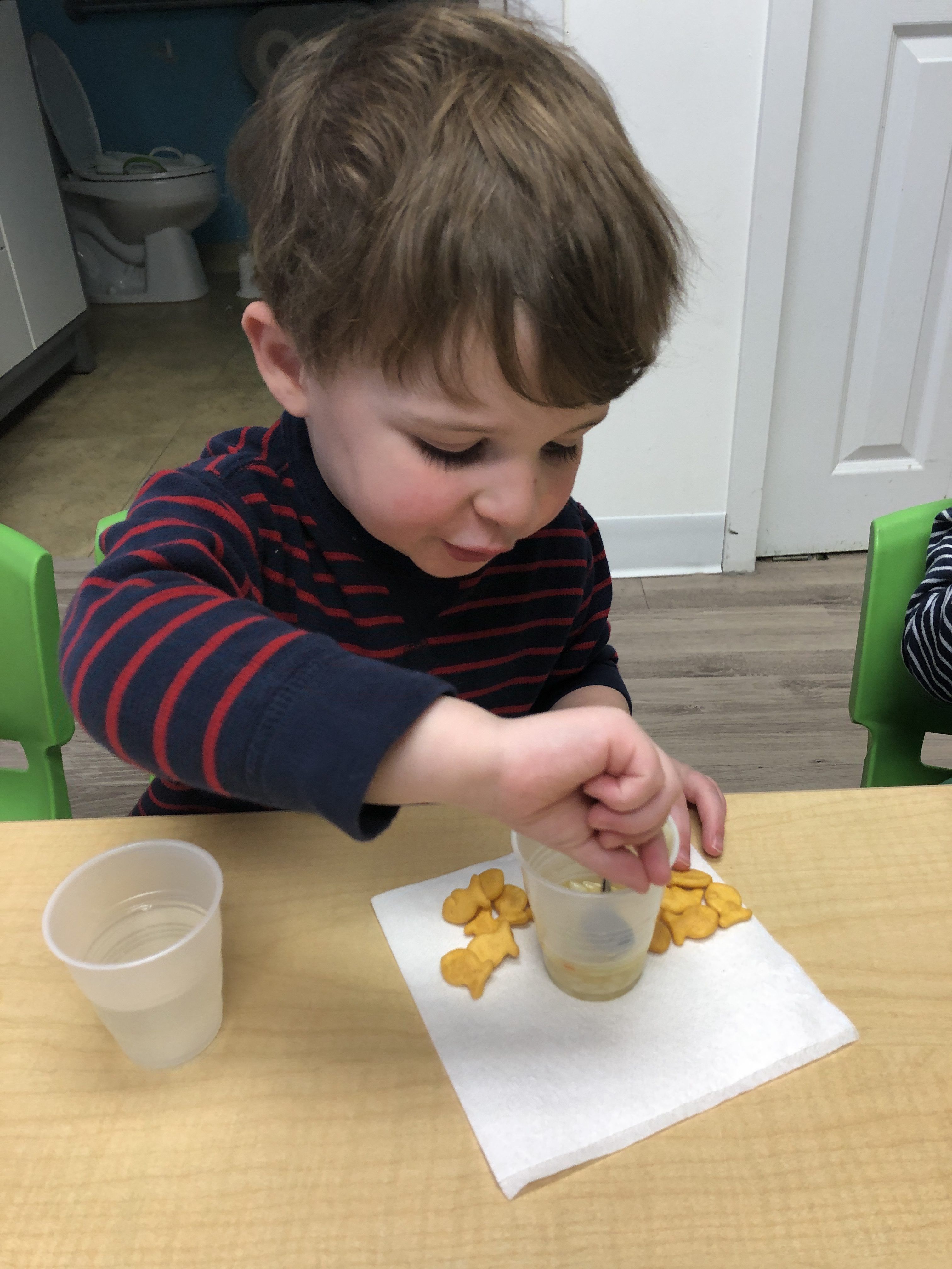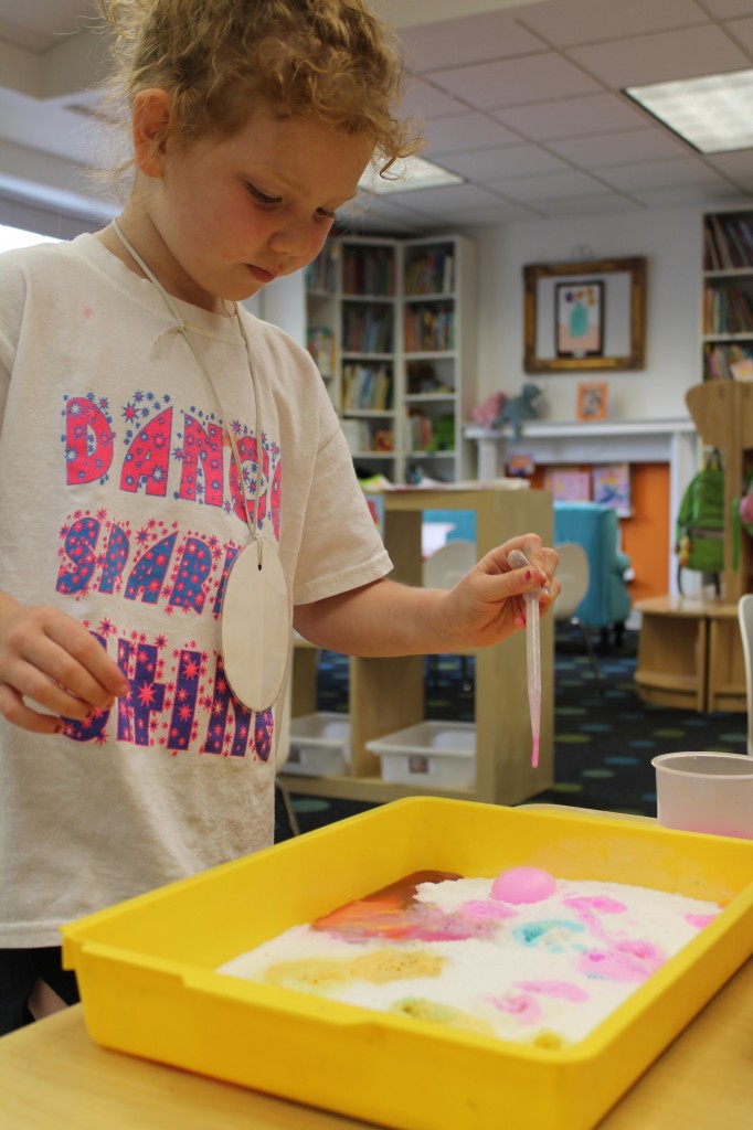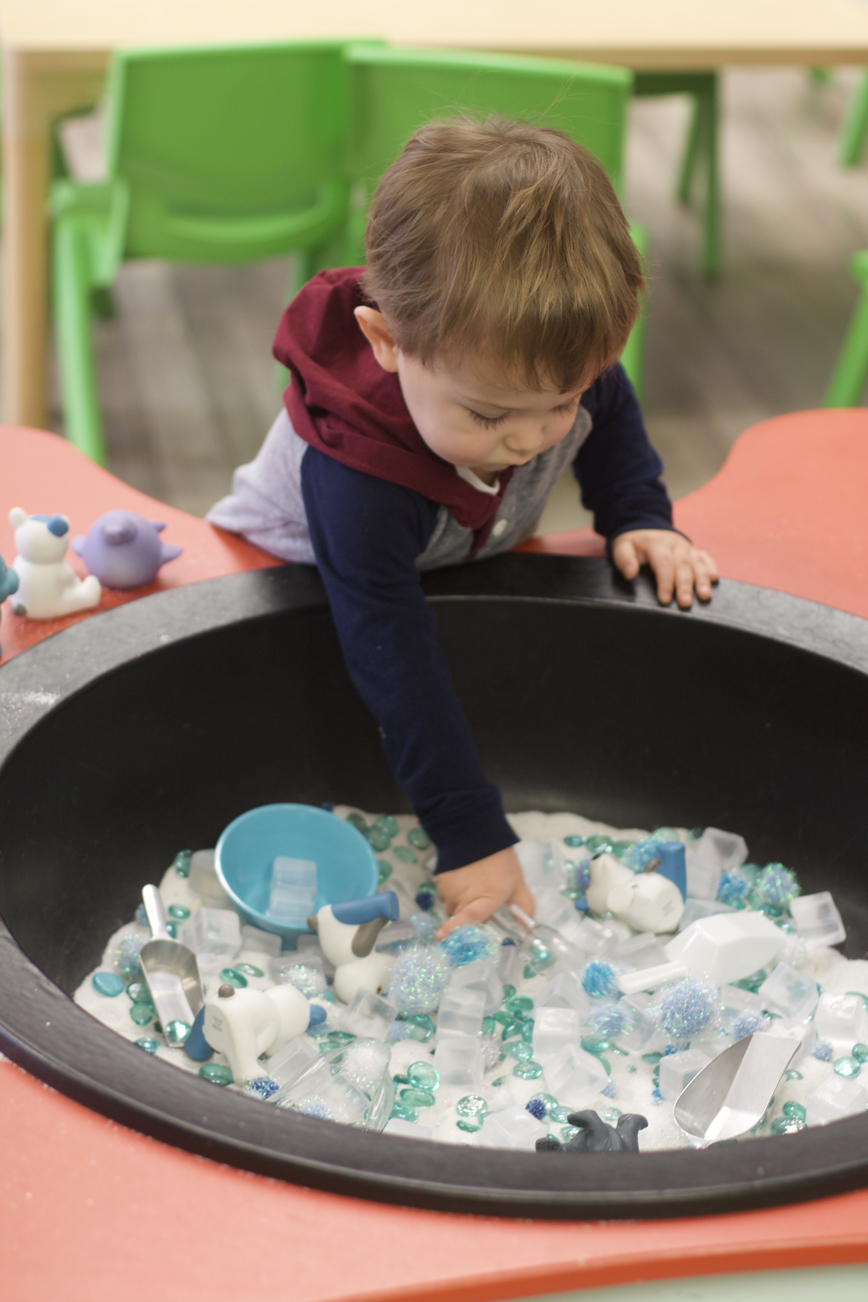 We are enjoying the wonders of winter and the color white through sensory experiences. Sensory activities facilitate exploration and naturally encourage children to use scientific processes while they play, create, investigate and explore.