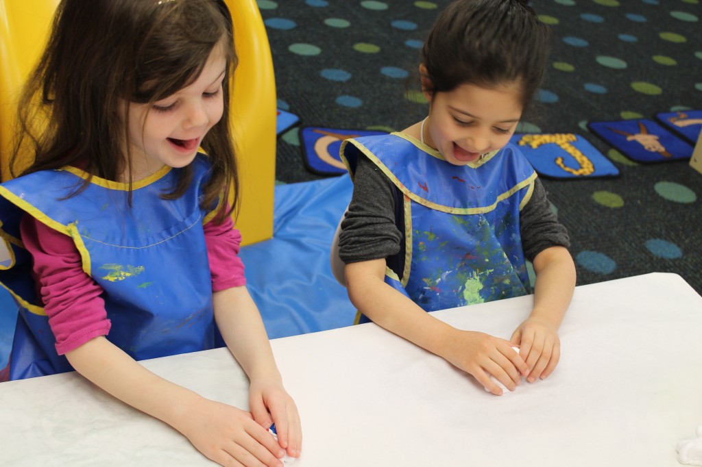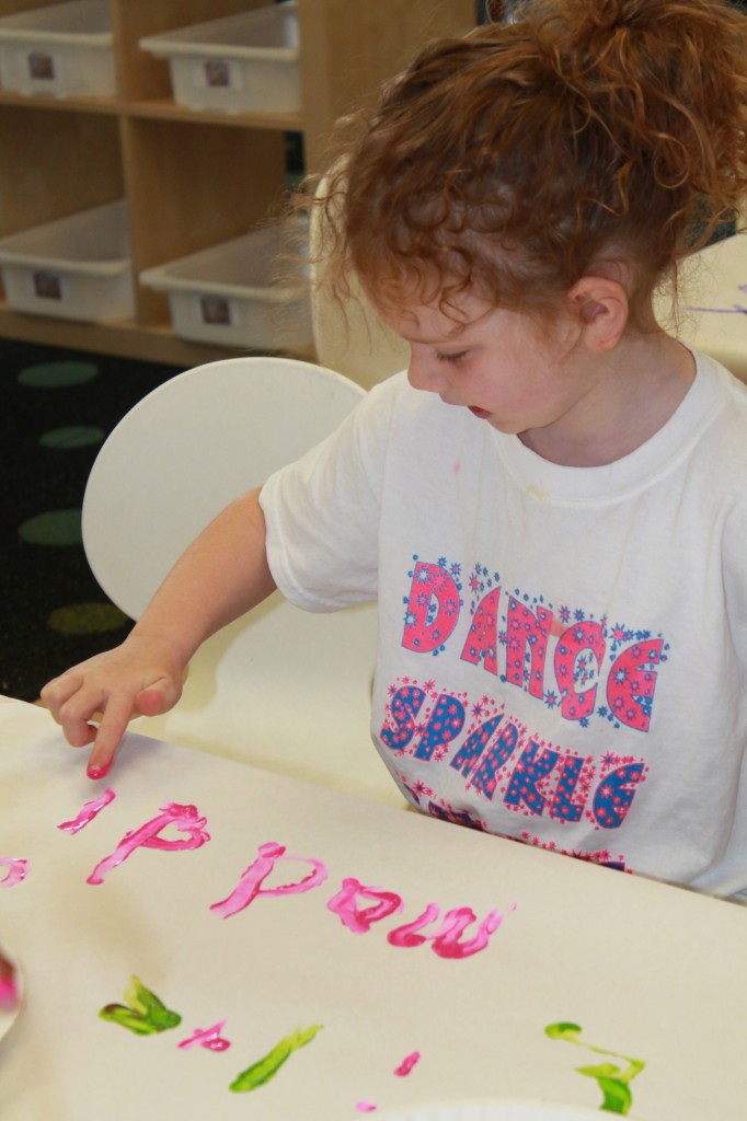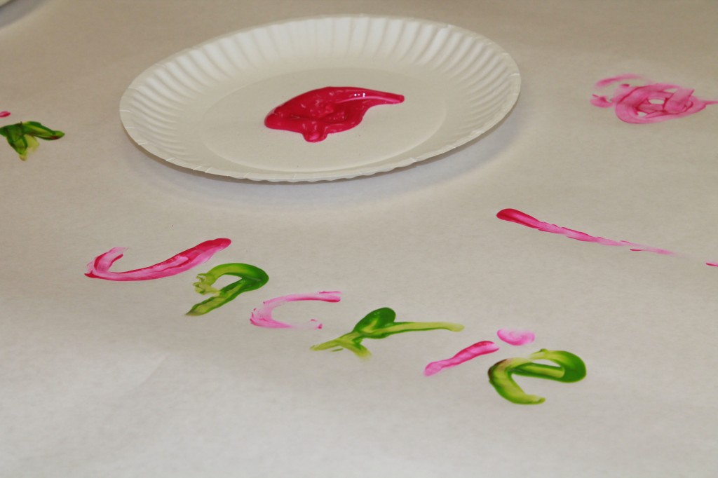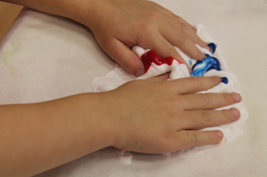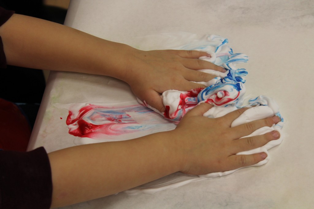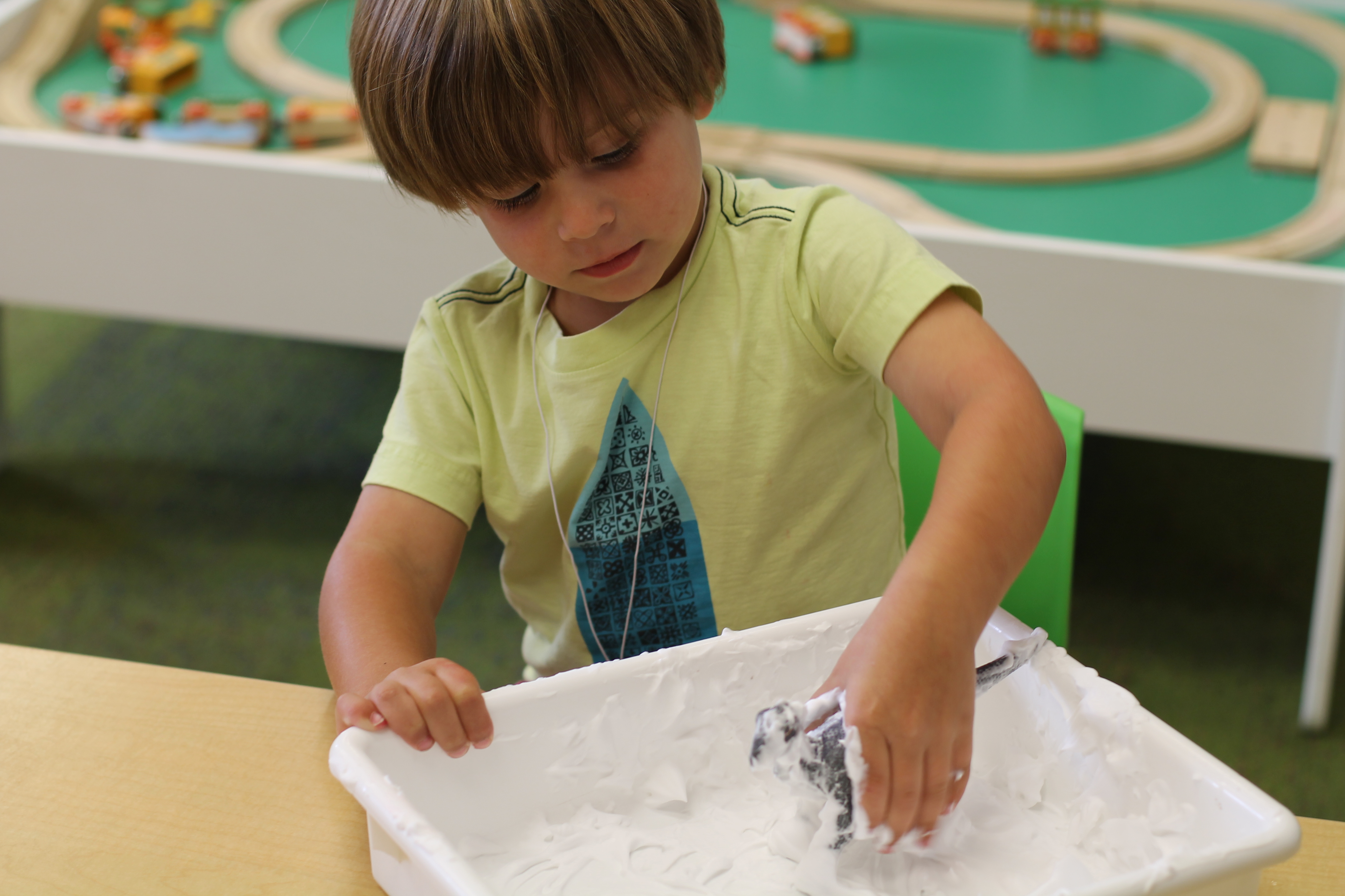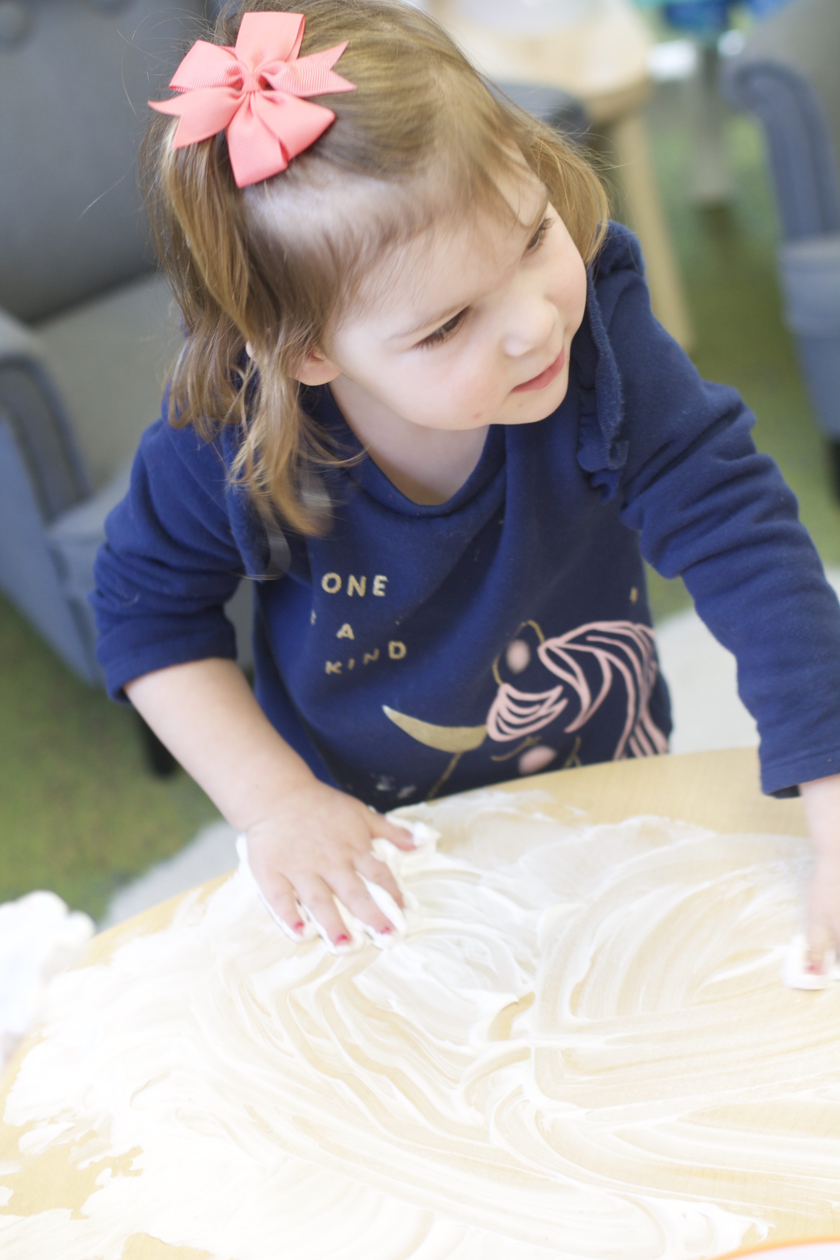 Shaving cream on the tables provided an interesting textured sensory activity. It also provides an empty canvas to practice drawing shapes, letters, and lines.