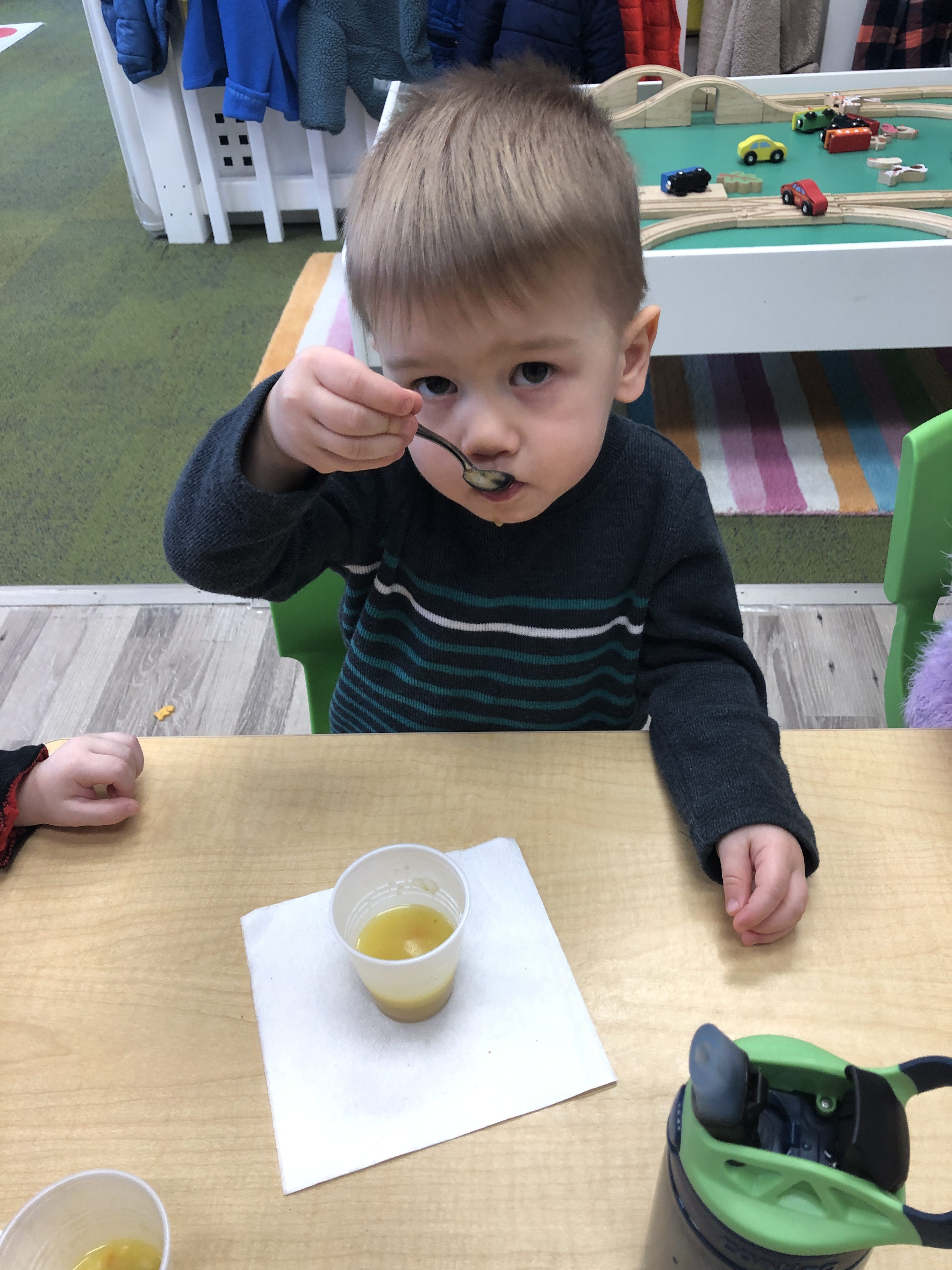 Maurice Sendak’s Chicken Soup with Rice provided an activity to use all of our senses including taste! We read the book, danced to the video with song by Carole King, and tasted chicken soup with rice!