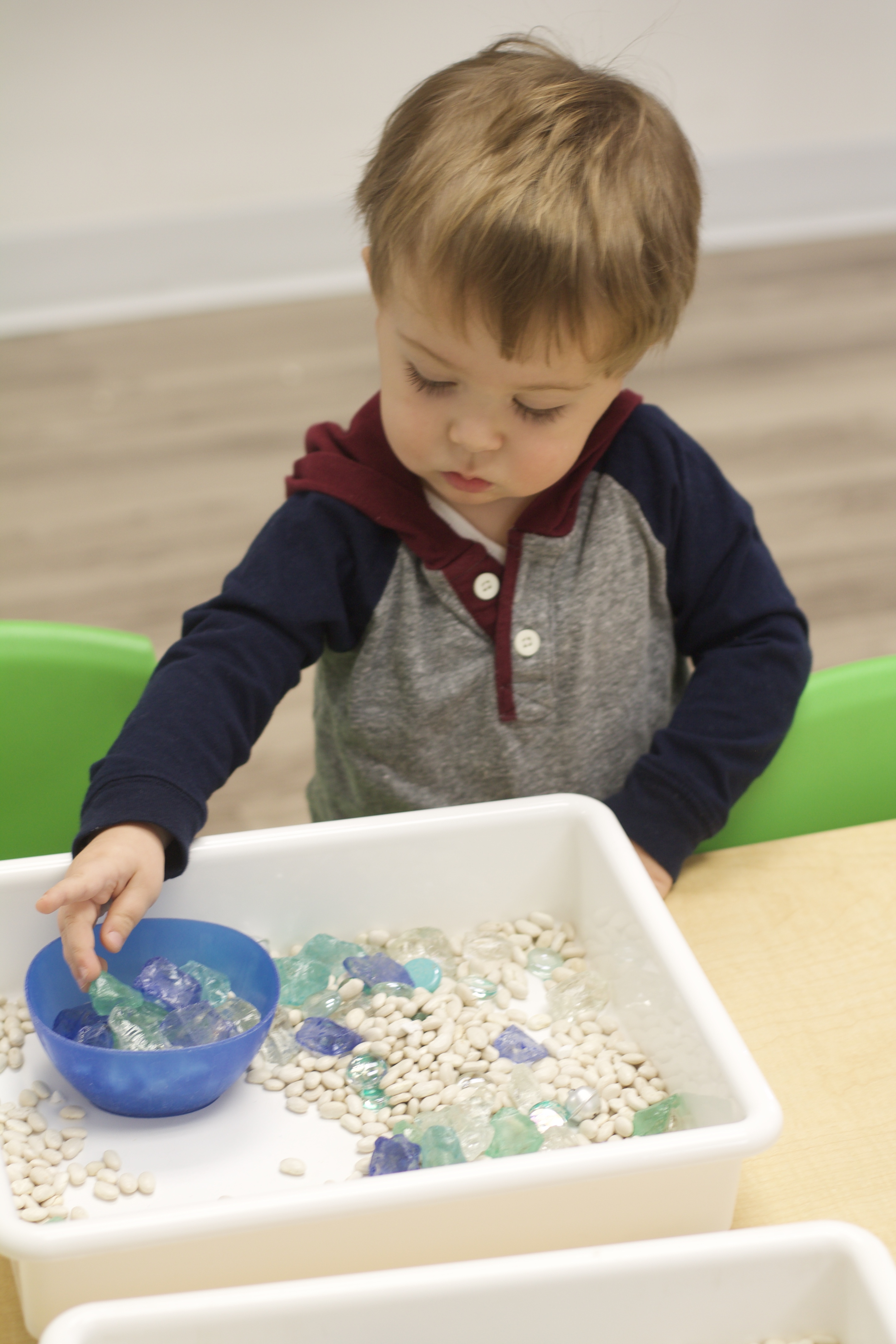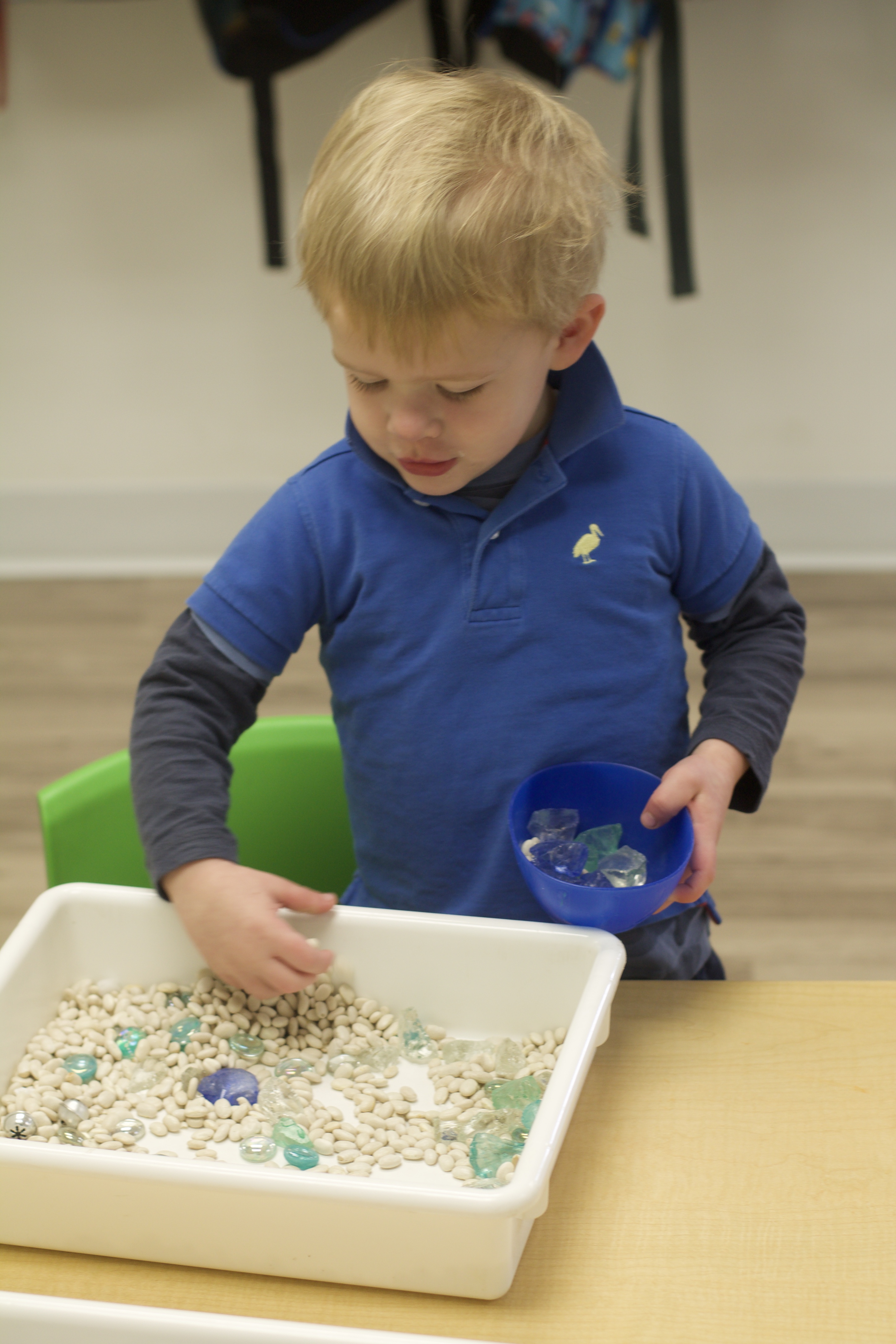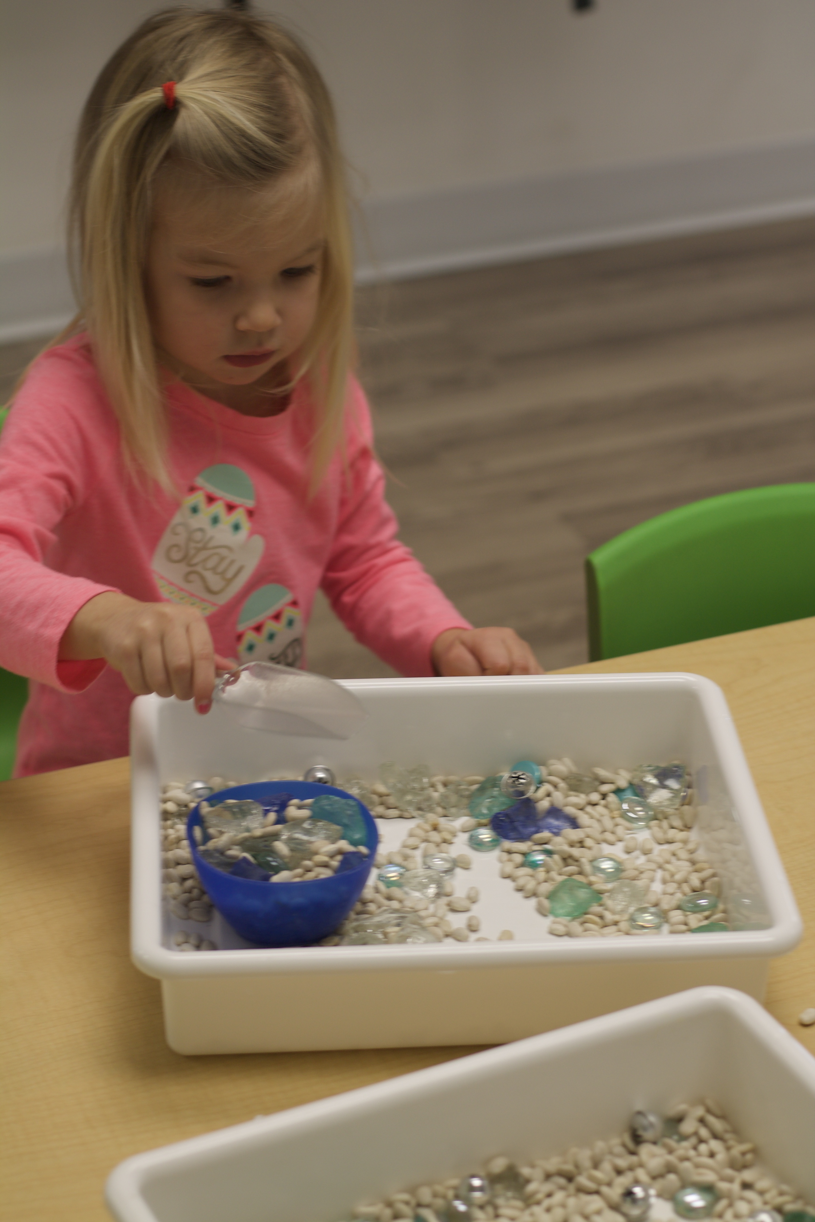 Our sensory bin and discovery tubs provided different textures and items to sort and pour.