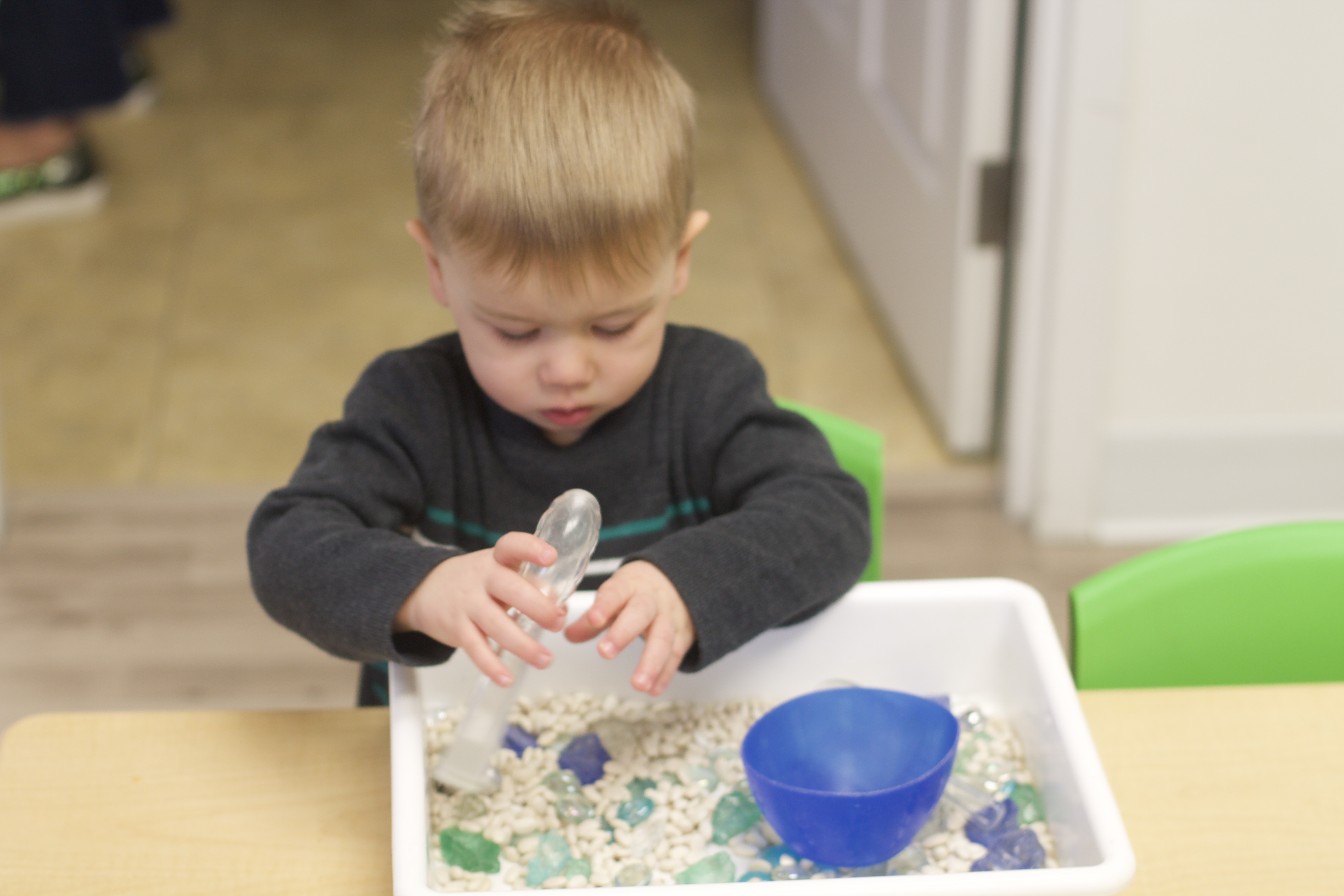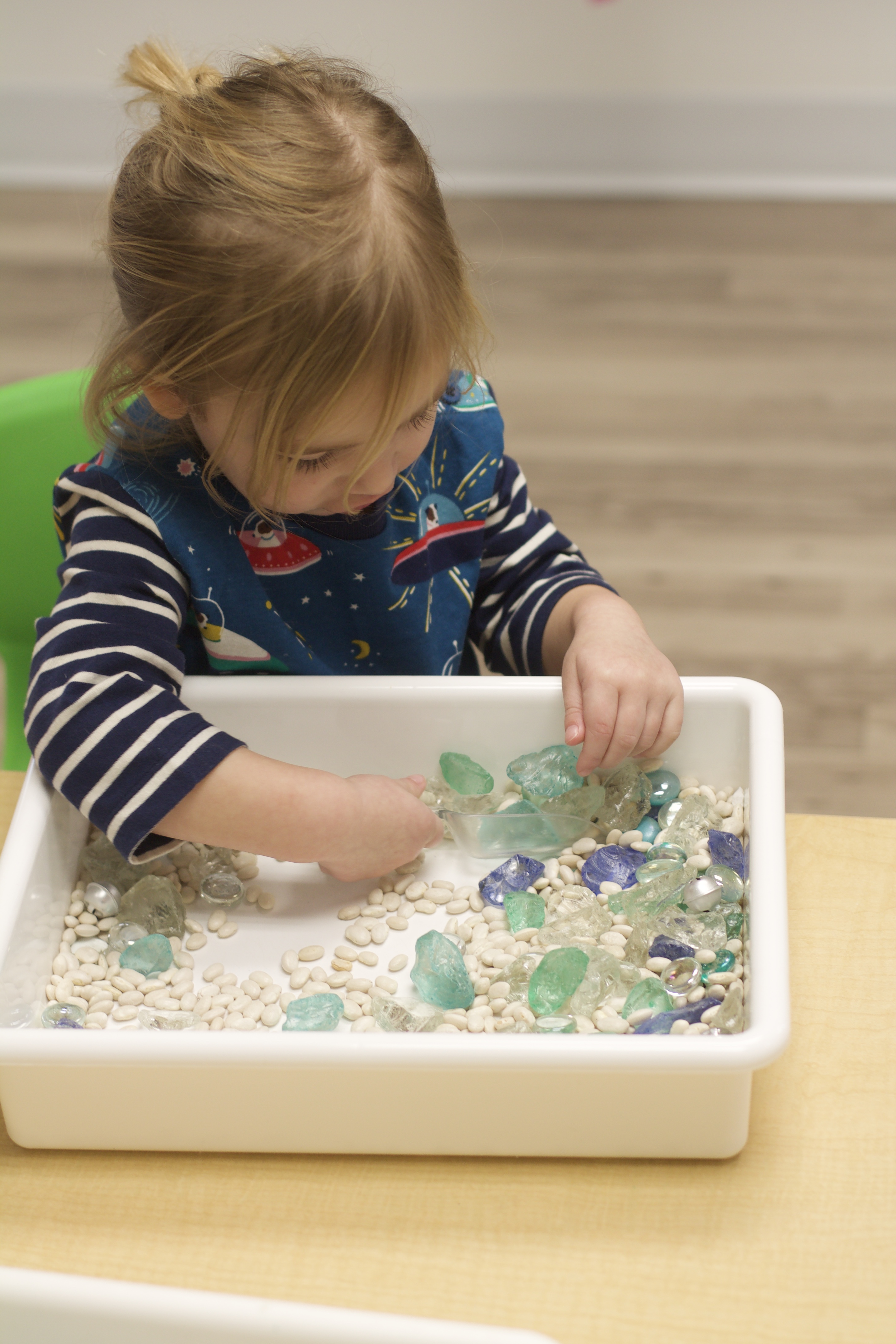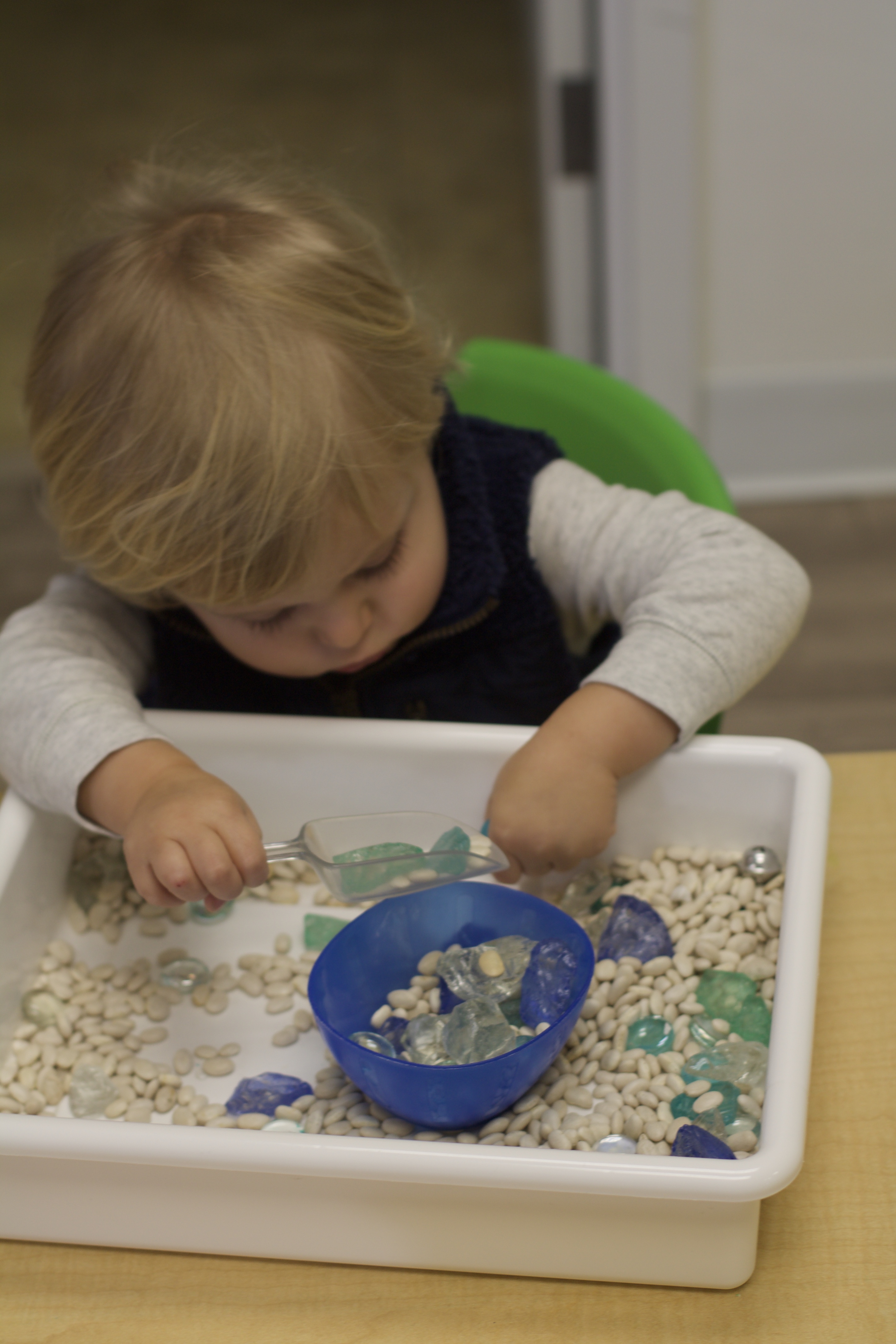 Our sensory bin and discovery tubs provided different textures and items to sort and pour.