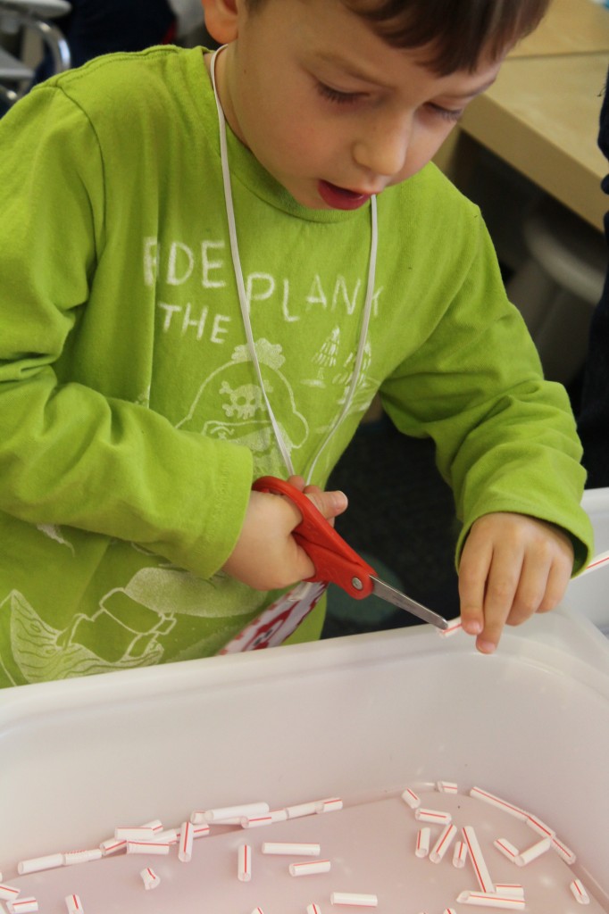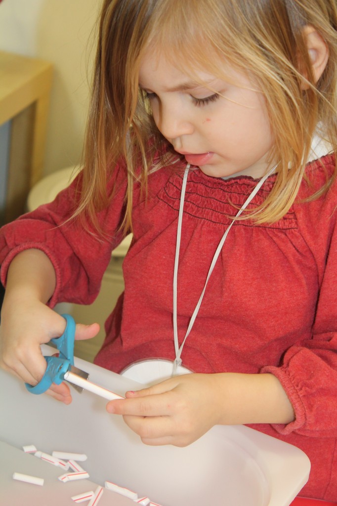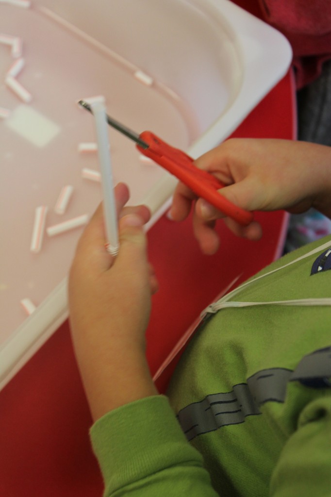 Now that our preschoolers have mastered how to use scissors it’s time to explore a bit. Today we cut straws to strengthen the muscles in our hands and fingers. Strong fine motor muscles are imperative to build handwriting skills. These muscles serve as a foundation for pencil grip, letter formation, and endurance while coloring and writing. Exposing preschoolers to multiple mediums while cutting is key. Explore using scissors with playdough, noodles, straws, fabric, cardboard, pipe cleaners, anything you can find!