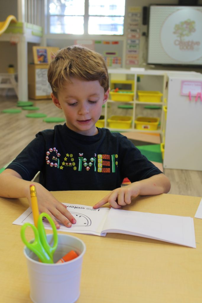 Our early reading adventure began in K Prep this week. The focus during reading groups was how to use their “Magic Reading Finger.” Why do we have children use their finger to track the words while they read? The reason for this practice is because our eyes naturally follow movement, placing a finger, on a page and strategically moving it down the text, a reader will naturally keep their place and be more focused. This helps readers concentrate and understand what they read.