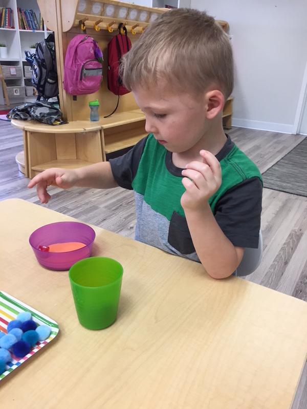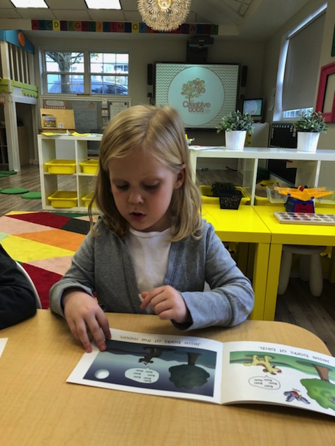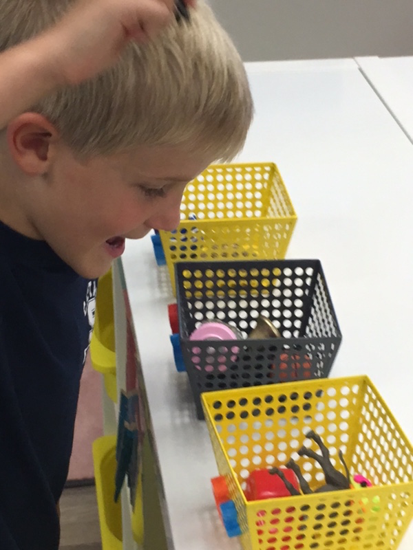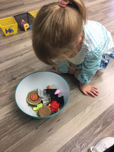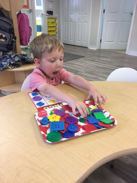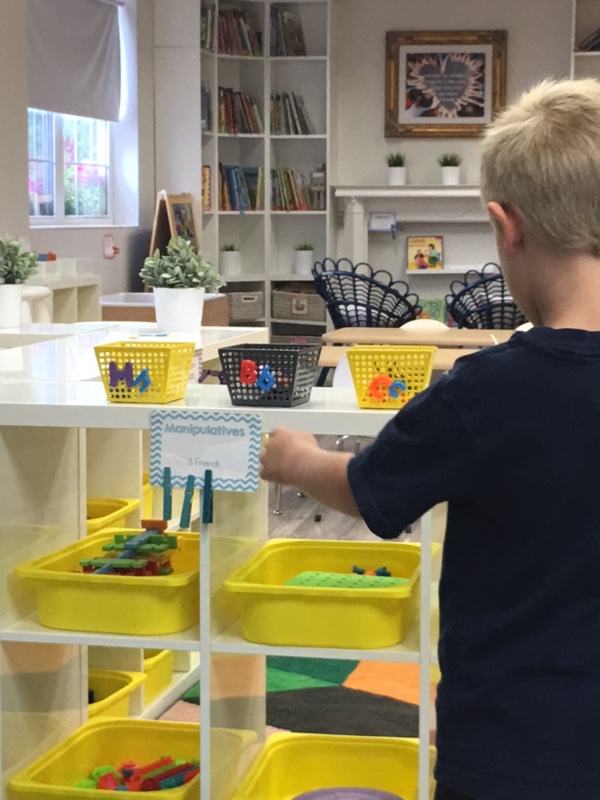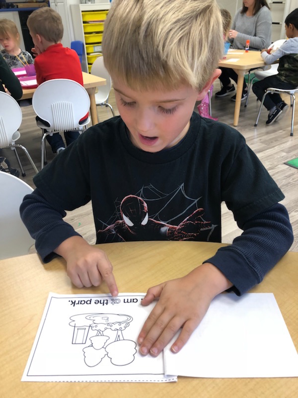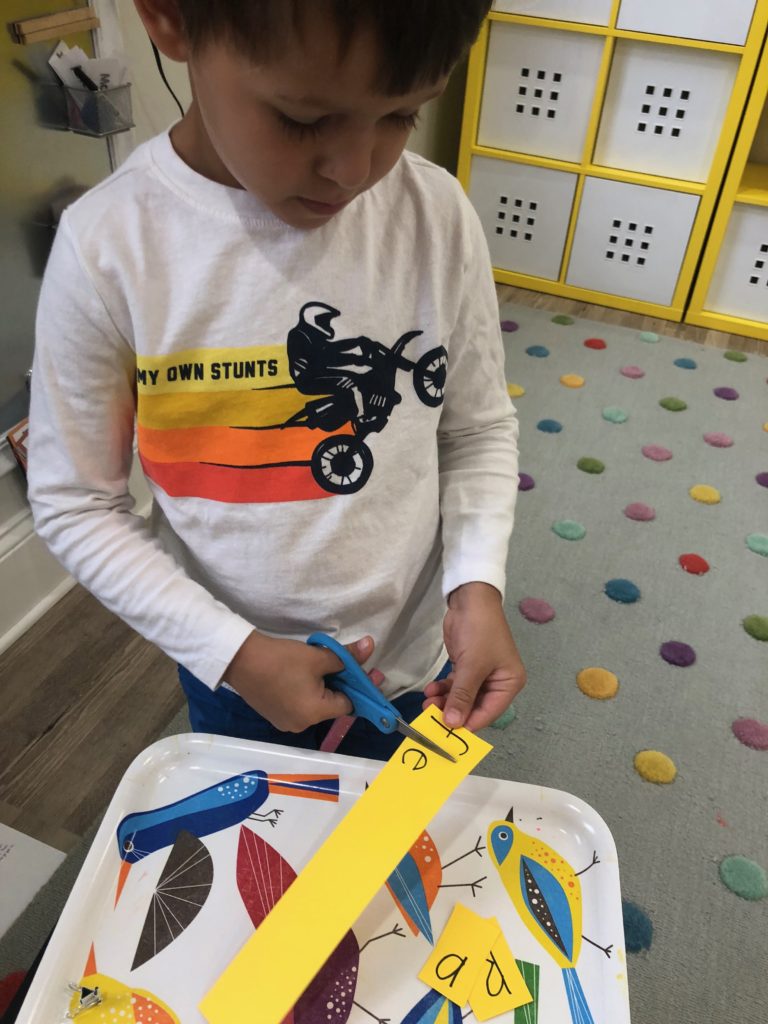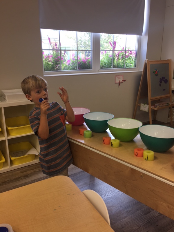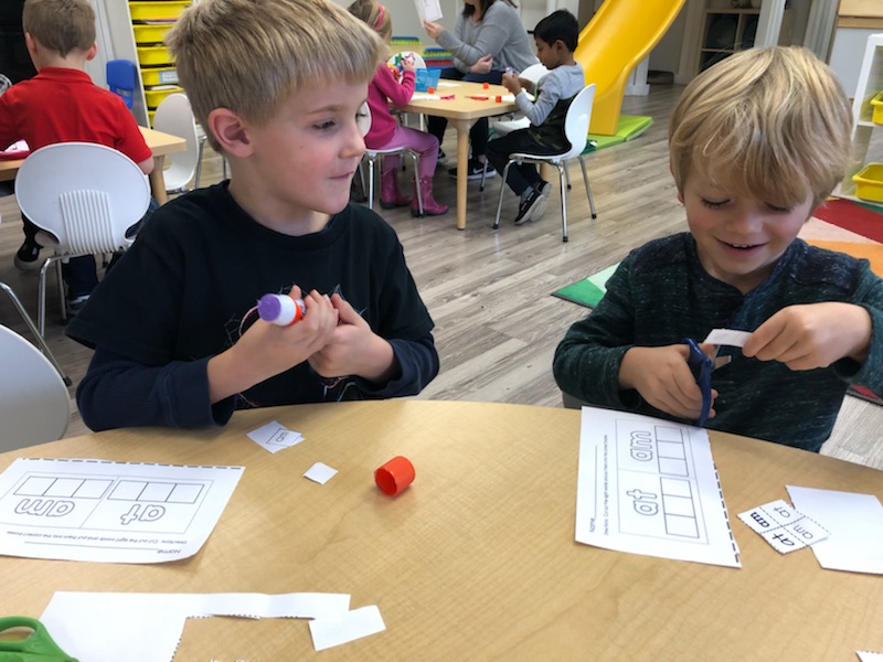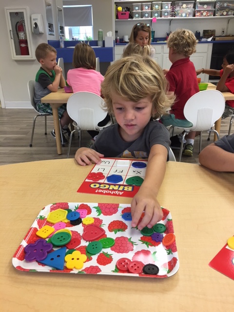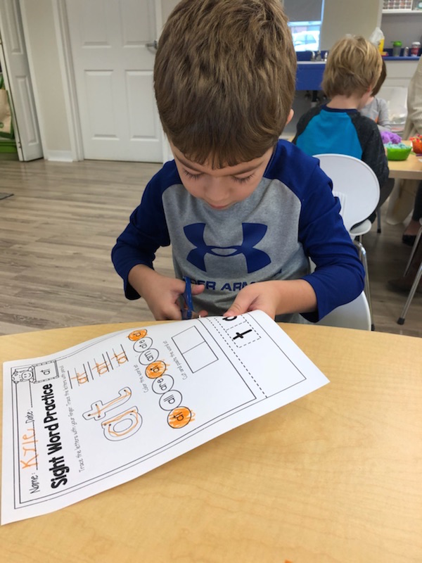 Letter and Word Awareness is the ability to identify individual written letters and words. Once children are able to identify printed letters, they develop the ability to identify entire words. The entire developmental progression from letter awareness to word awareness to fluent reading typically begins around age three with letter awareness and continues through age five, six or seven with fluent reading. Our K Prep class is beginning working on understanding that words are groups of letters separated by spaces on either side. Children’s names are the most important word to them, so what better place to start!