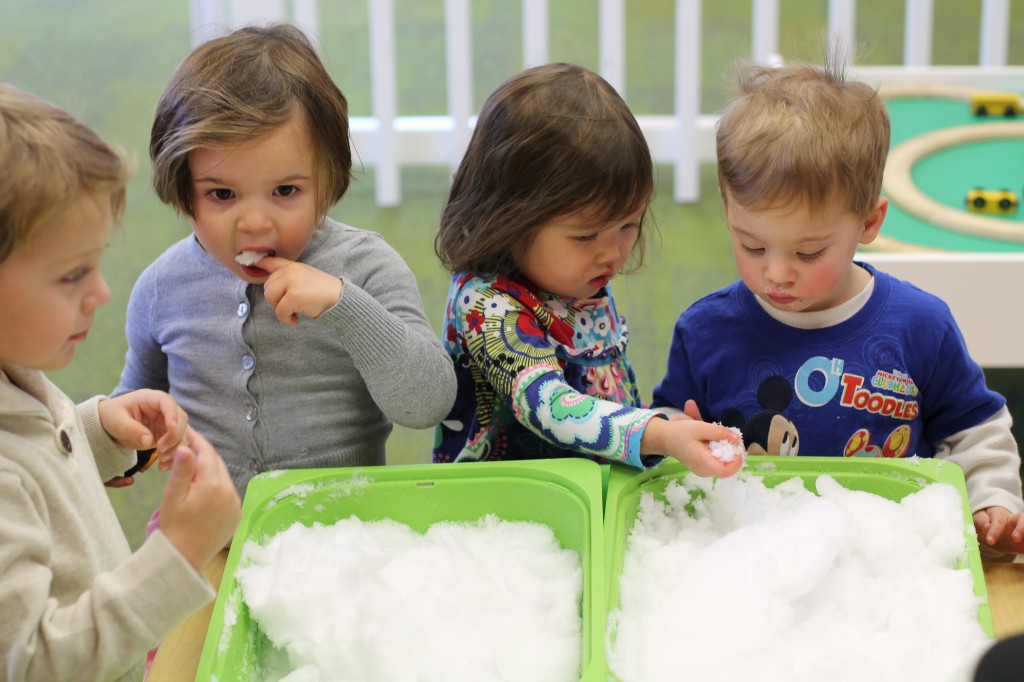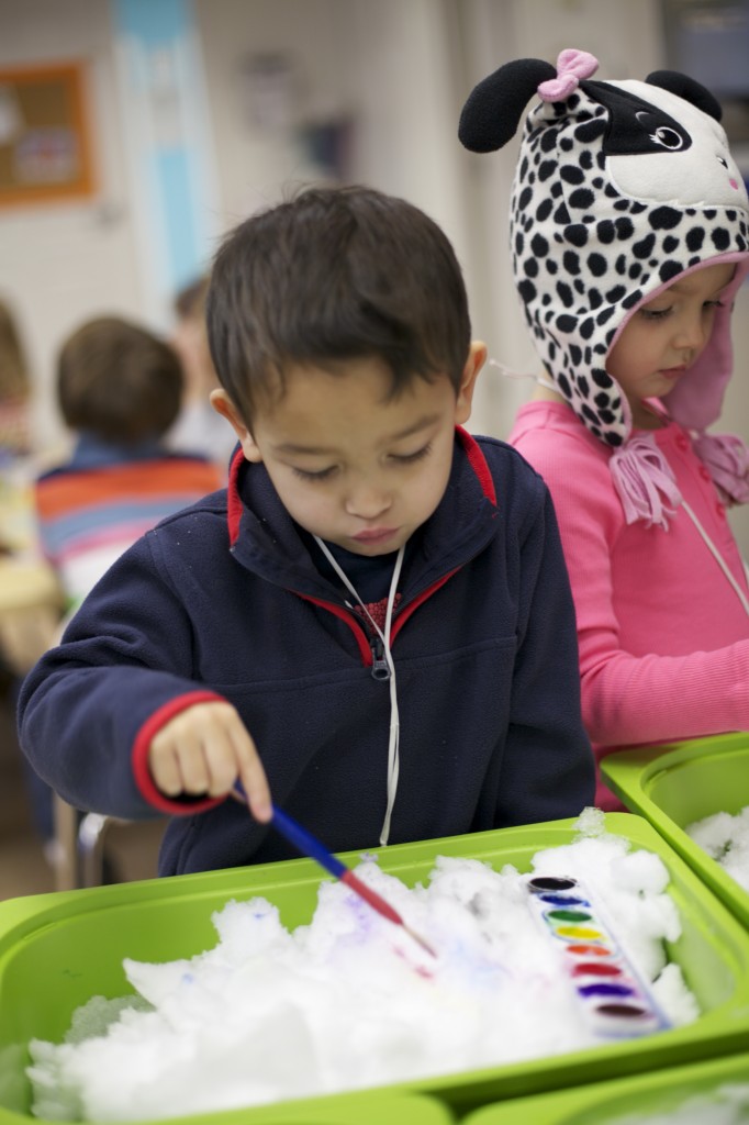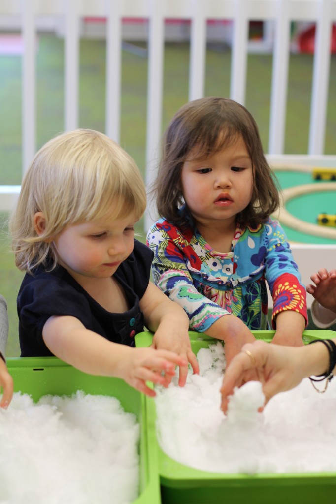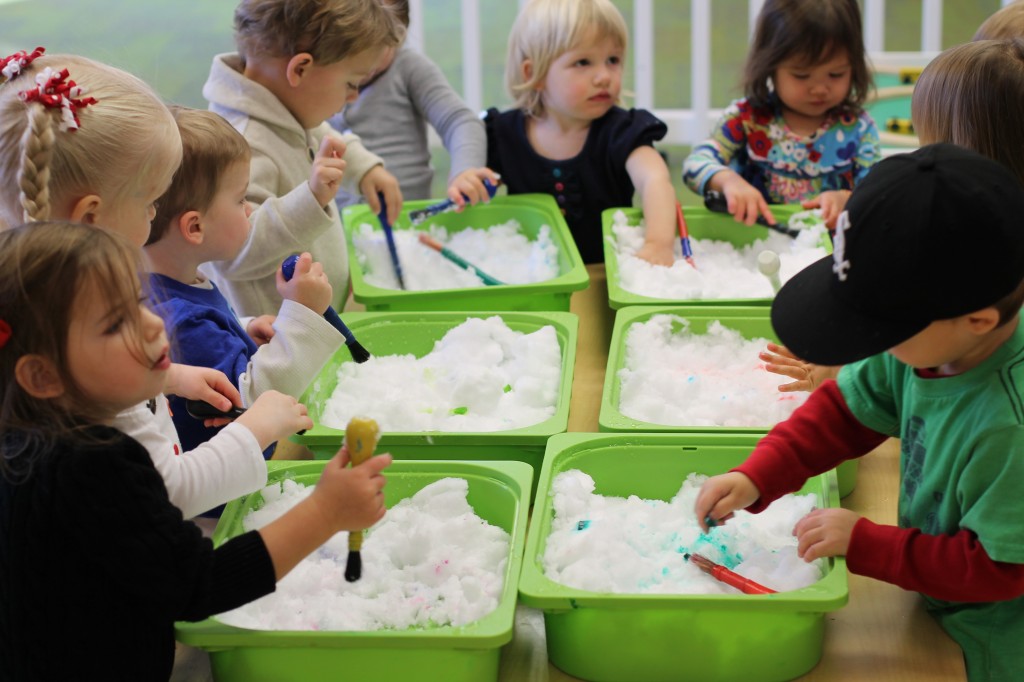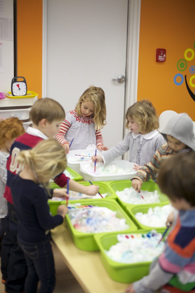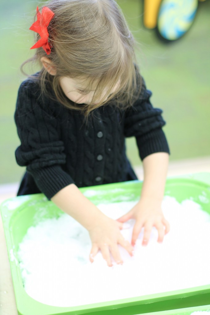 Happy New Year from the studio toddler room! The weather has kept us busy indoors this month but we have filled our days with crafts, discovery bins, winter centers, stories, dancing, and learning through play. Our color focus is white and our shape is the triangle so we incorporated these focus targets into most of our centers, small groups, whole group and purposeful play.