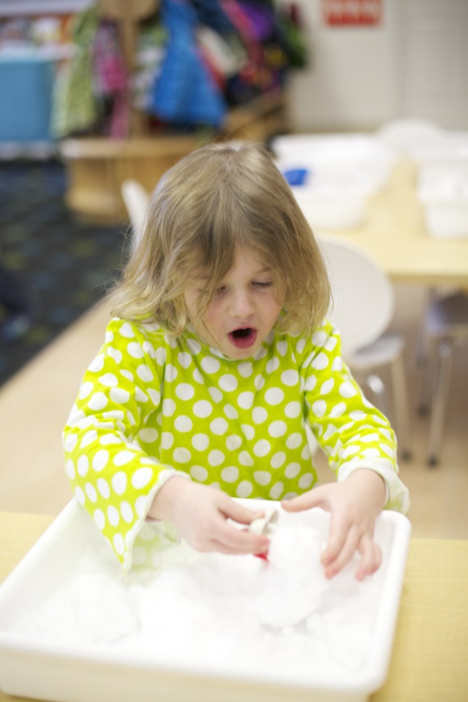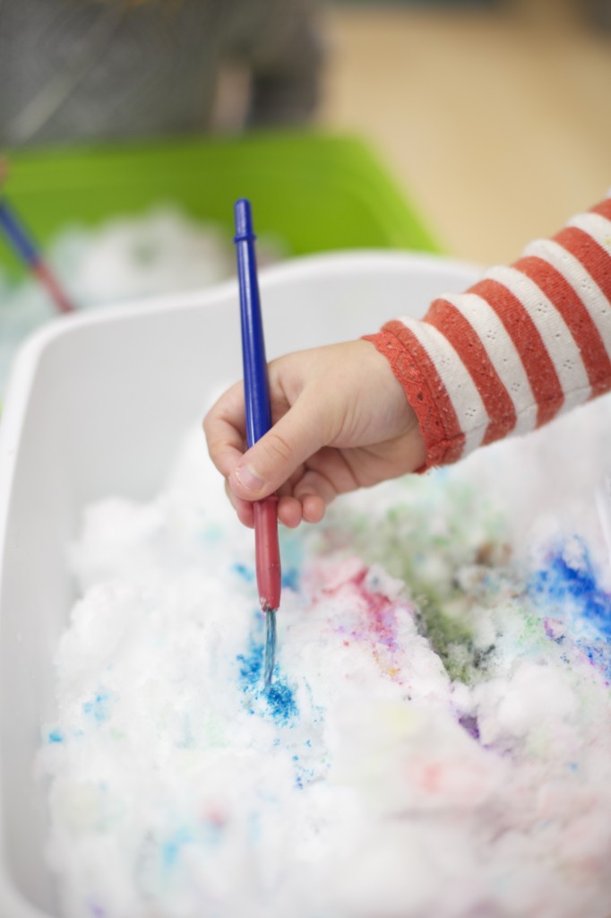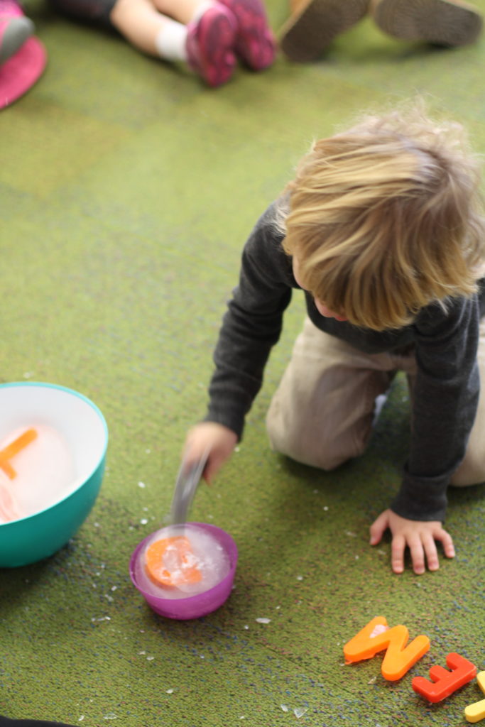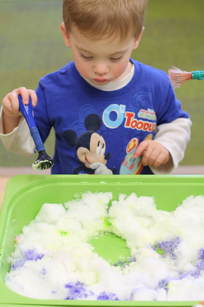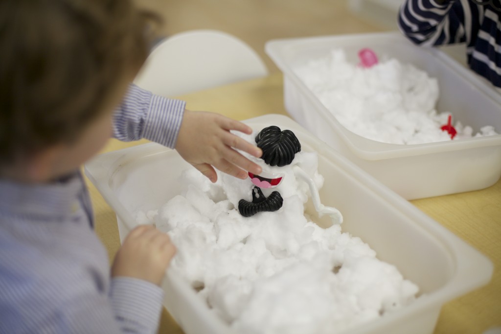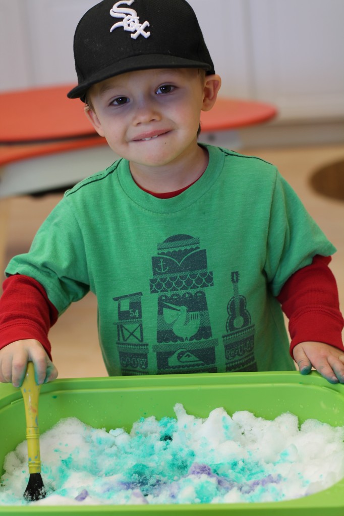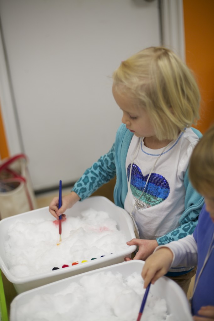 Happy New Year from the studio toddler room! The weather has kept us busy indoors this month but we have filled our days with crafts, discovery bins, winter centers, stories, dancing, and learning through play. Our color focus is white and our shape is the triangle so we incorporated these focus targets into most of our centers, small groups, whole group and purposeful play.