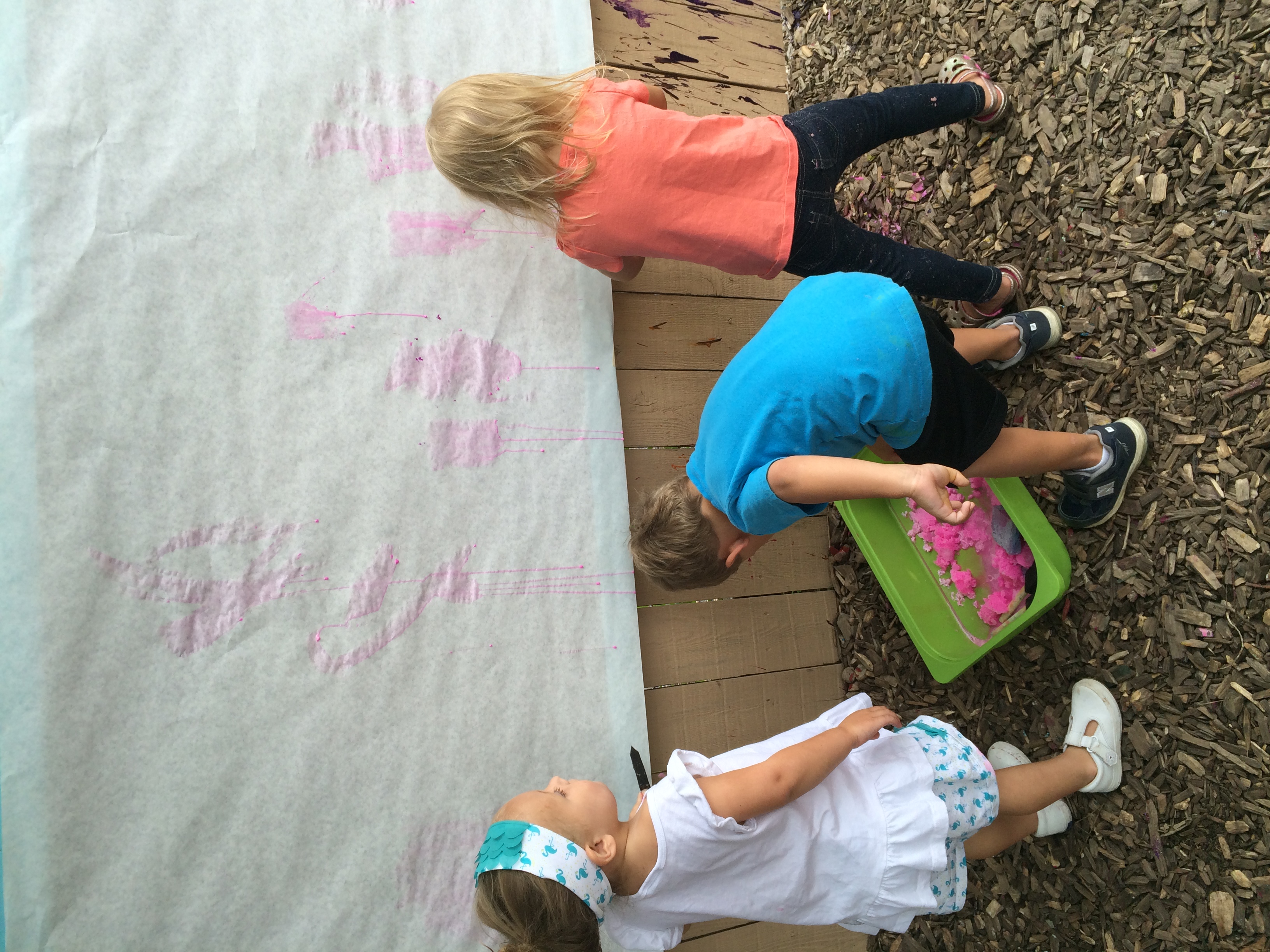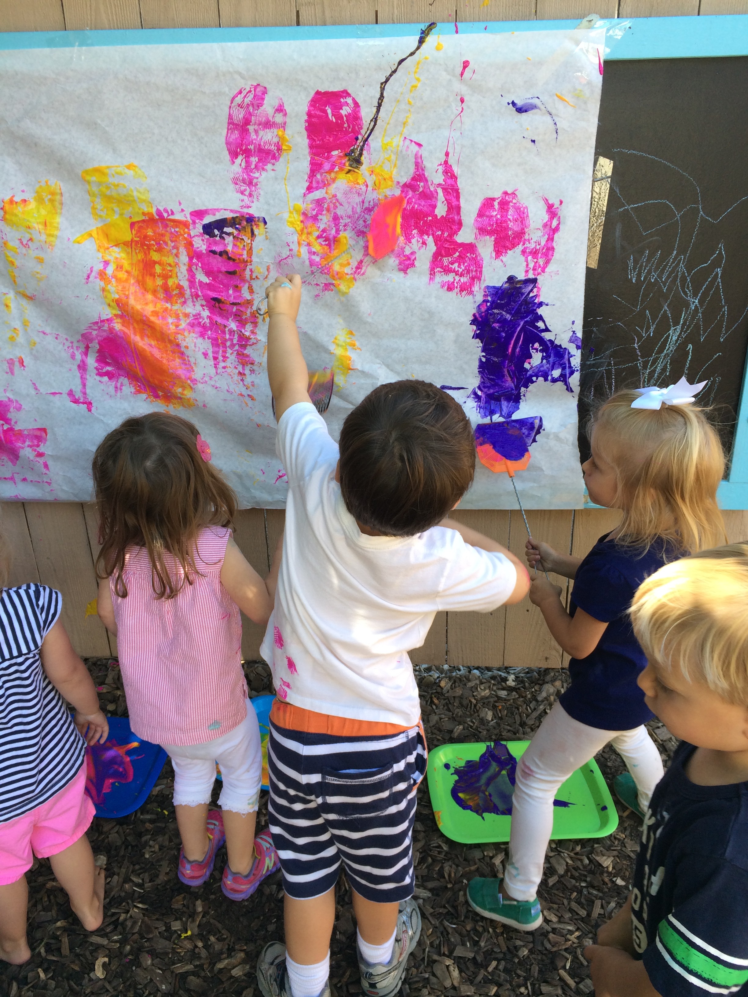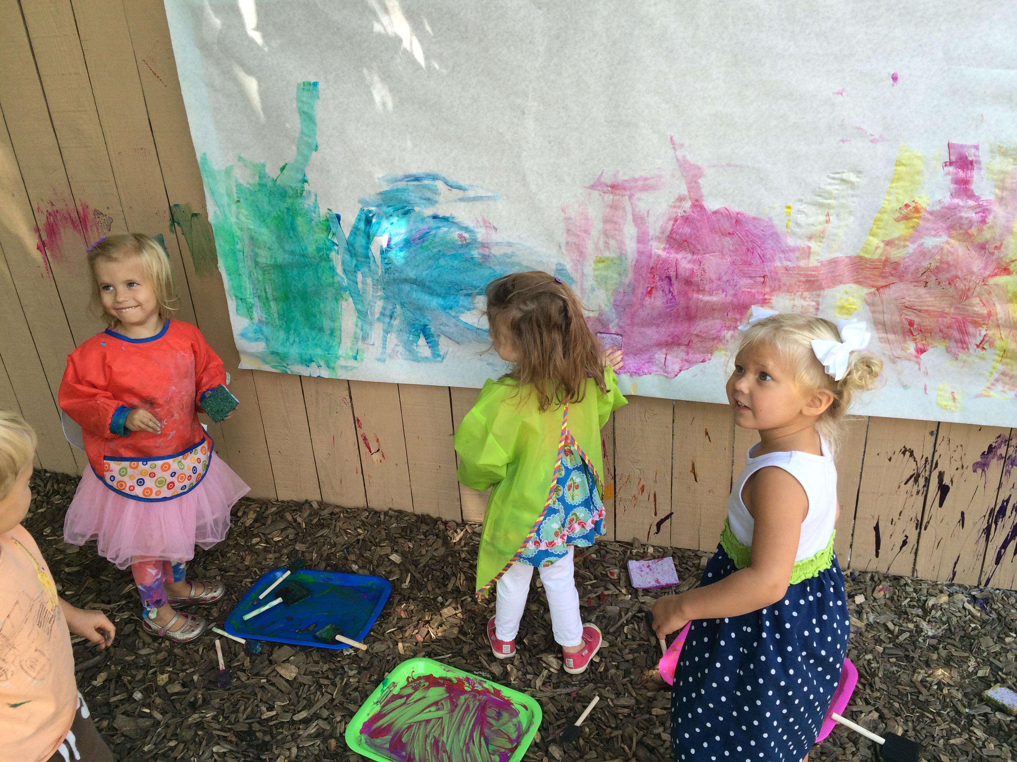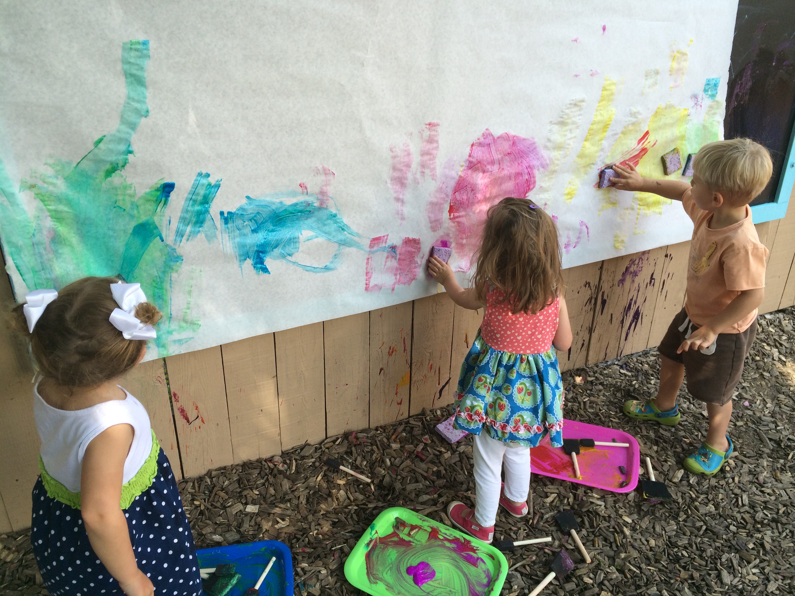 Painting outside with sponges