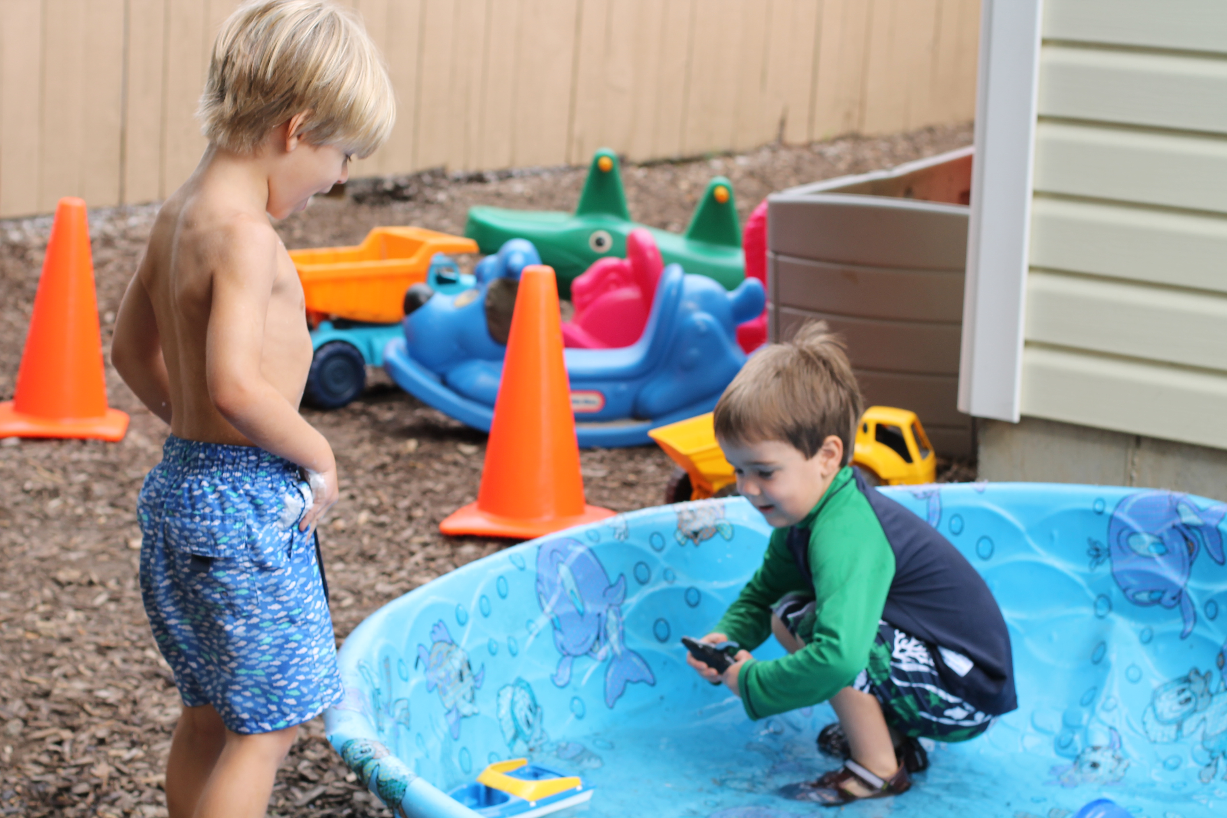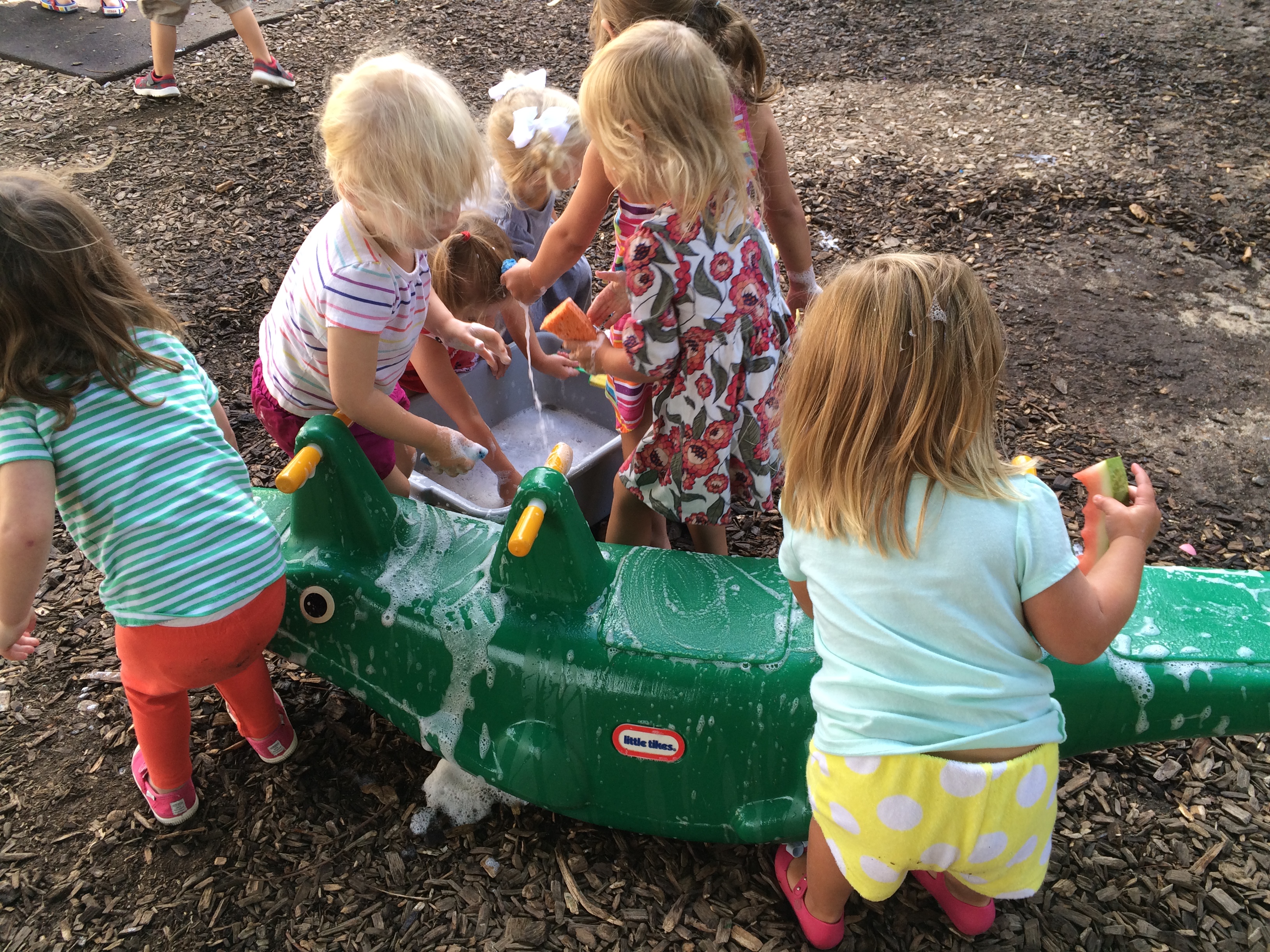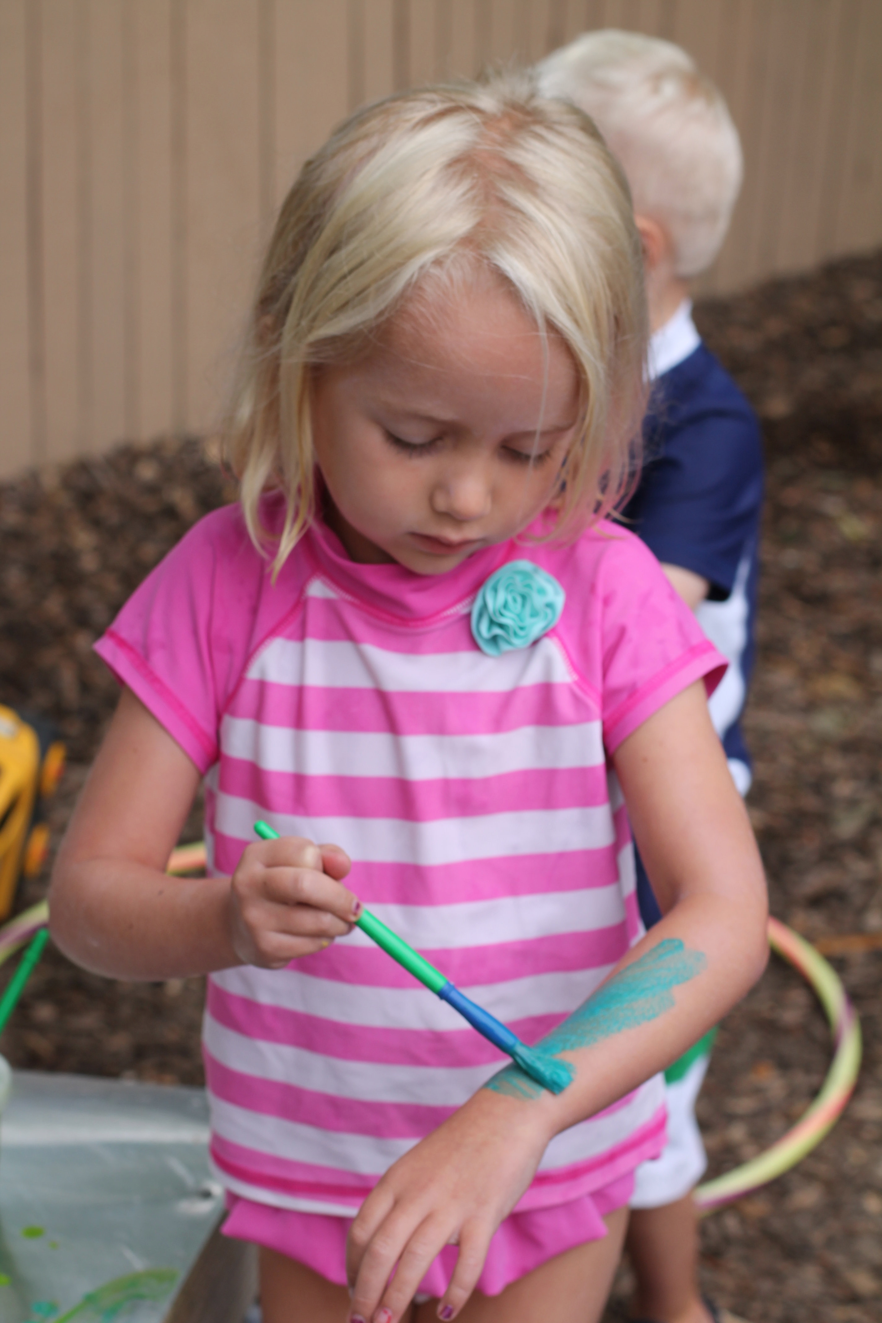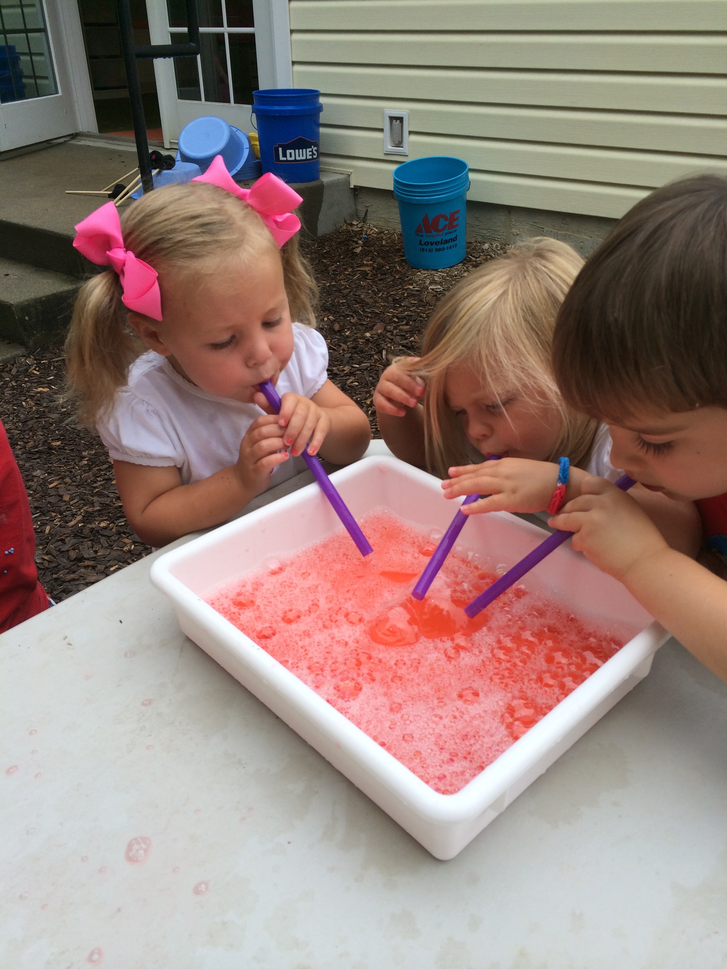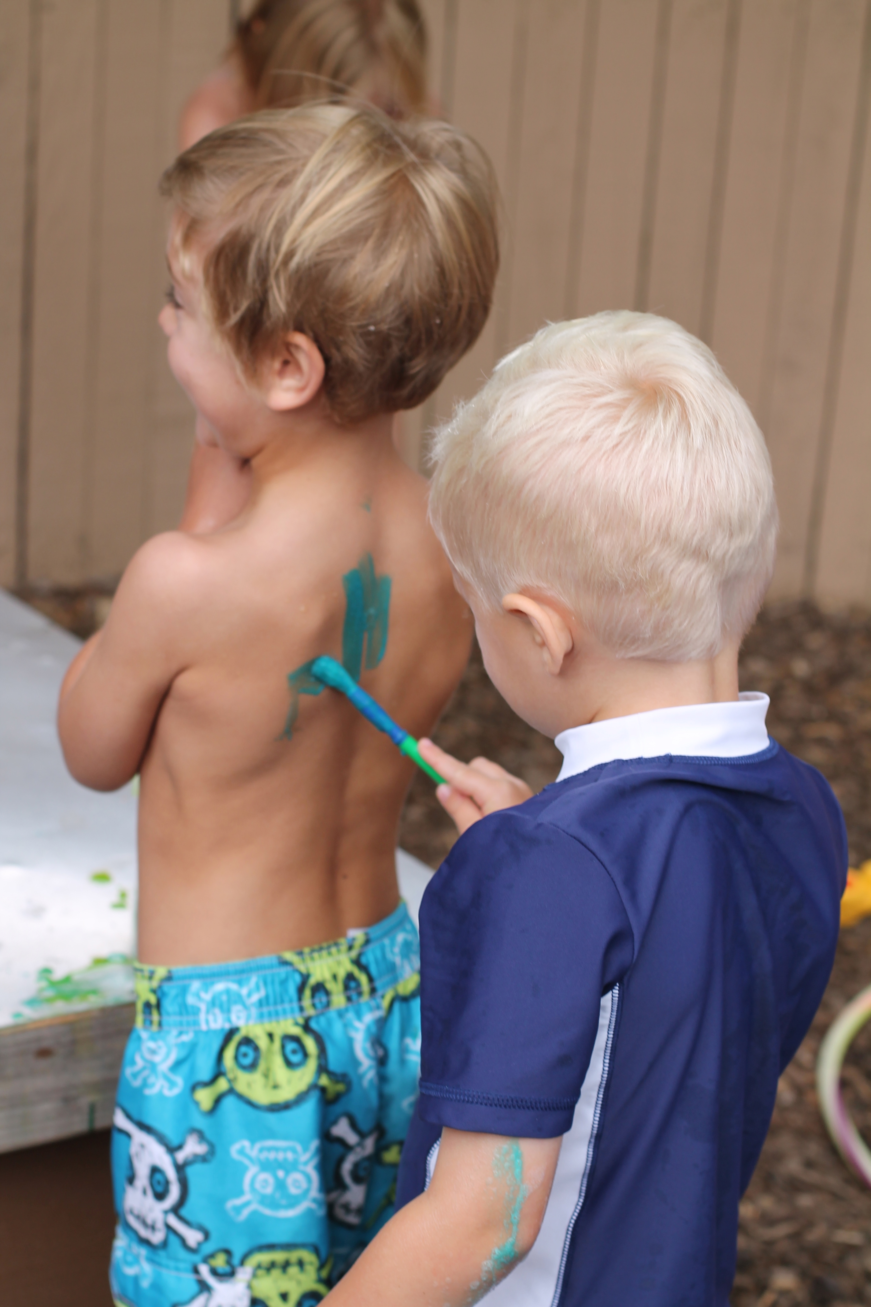 Painting outside with sponges