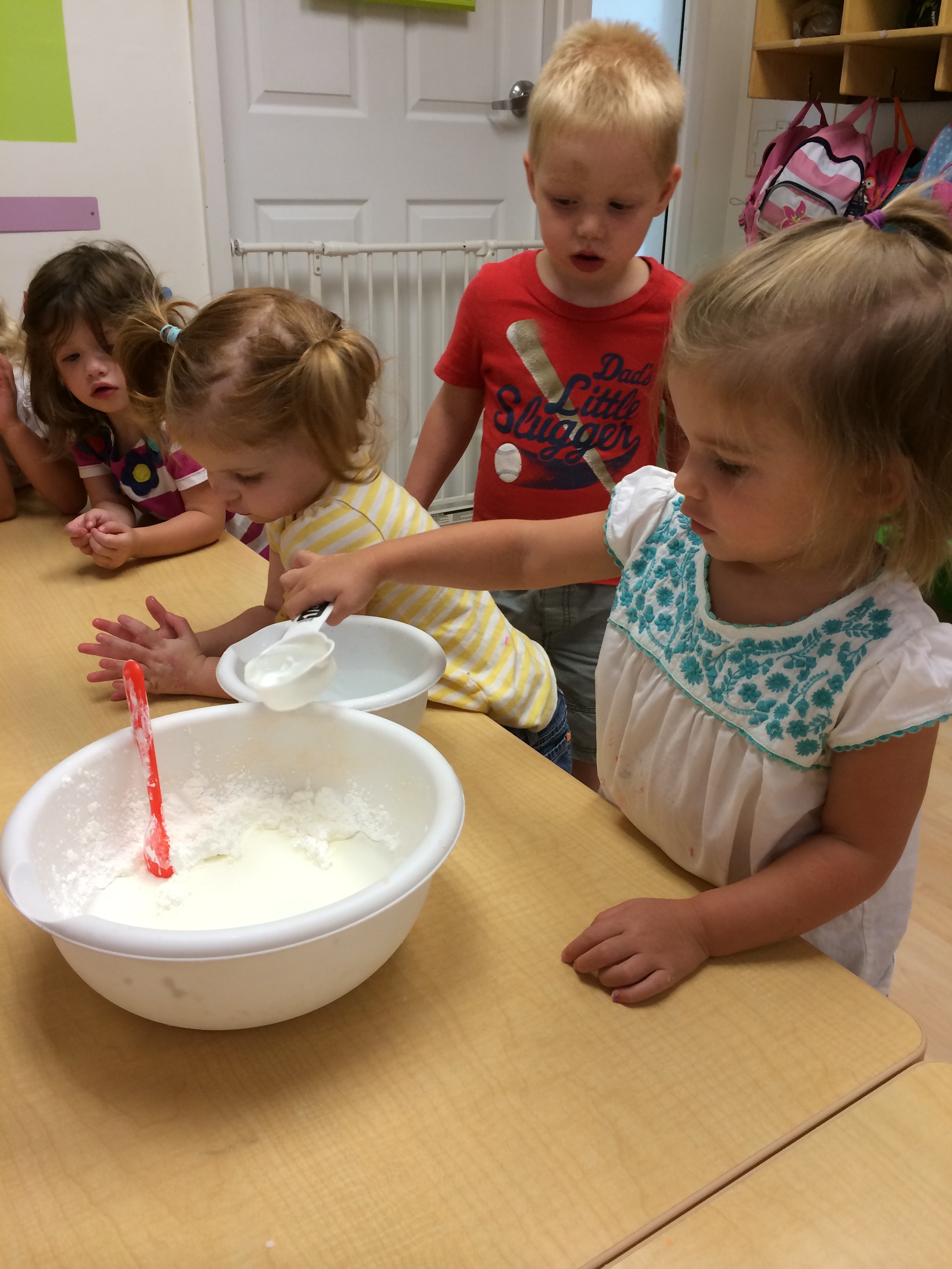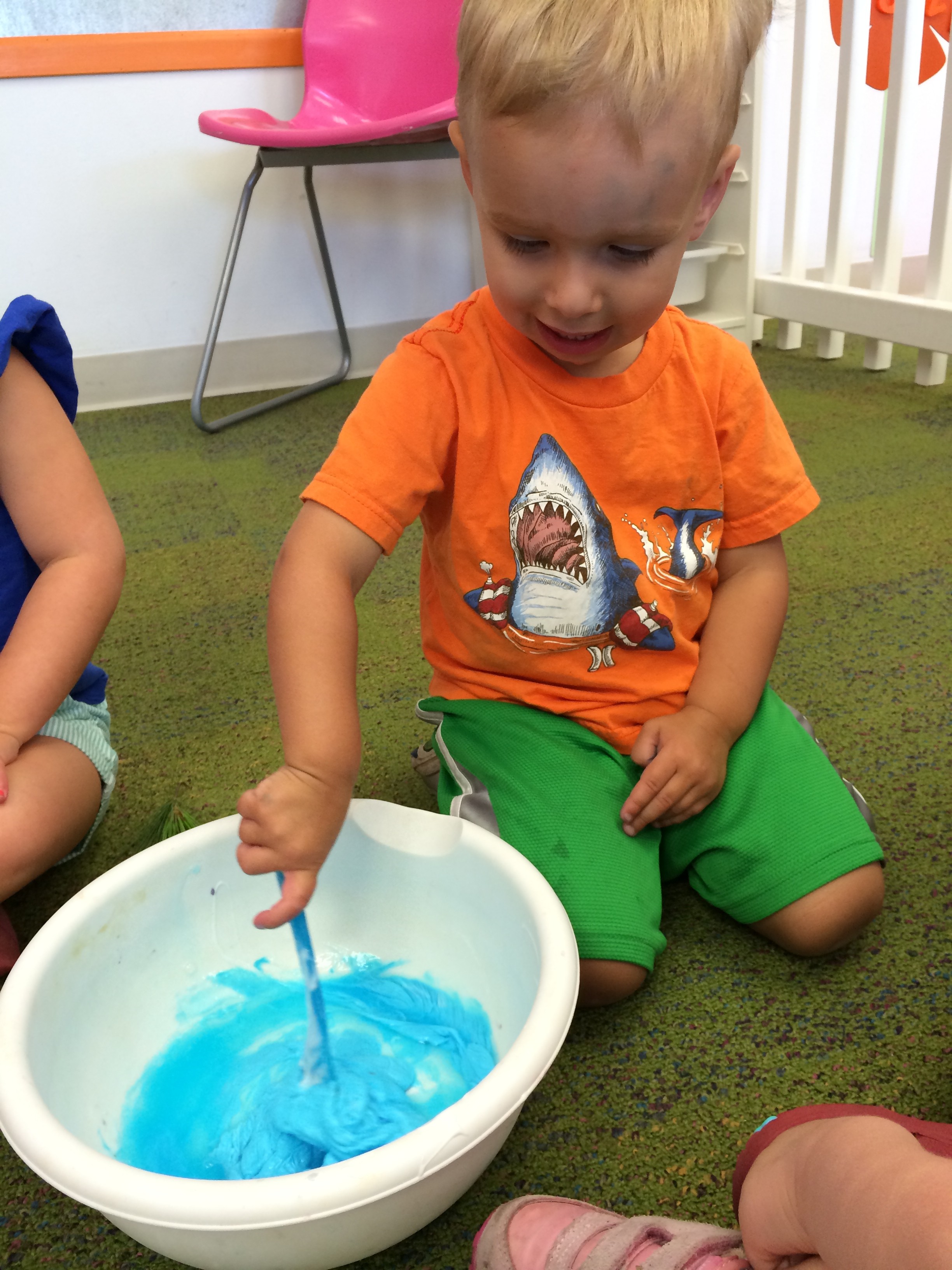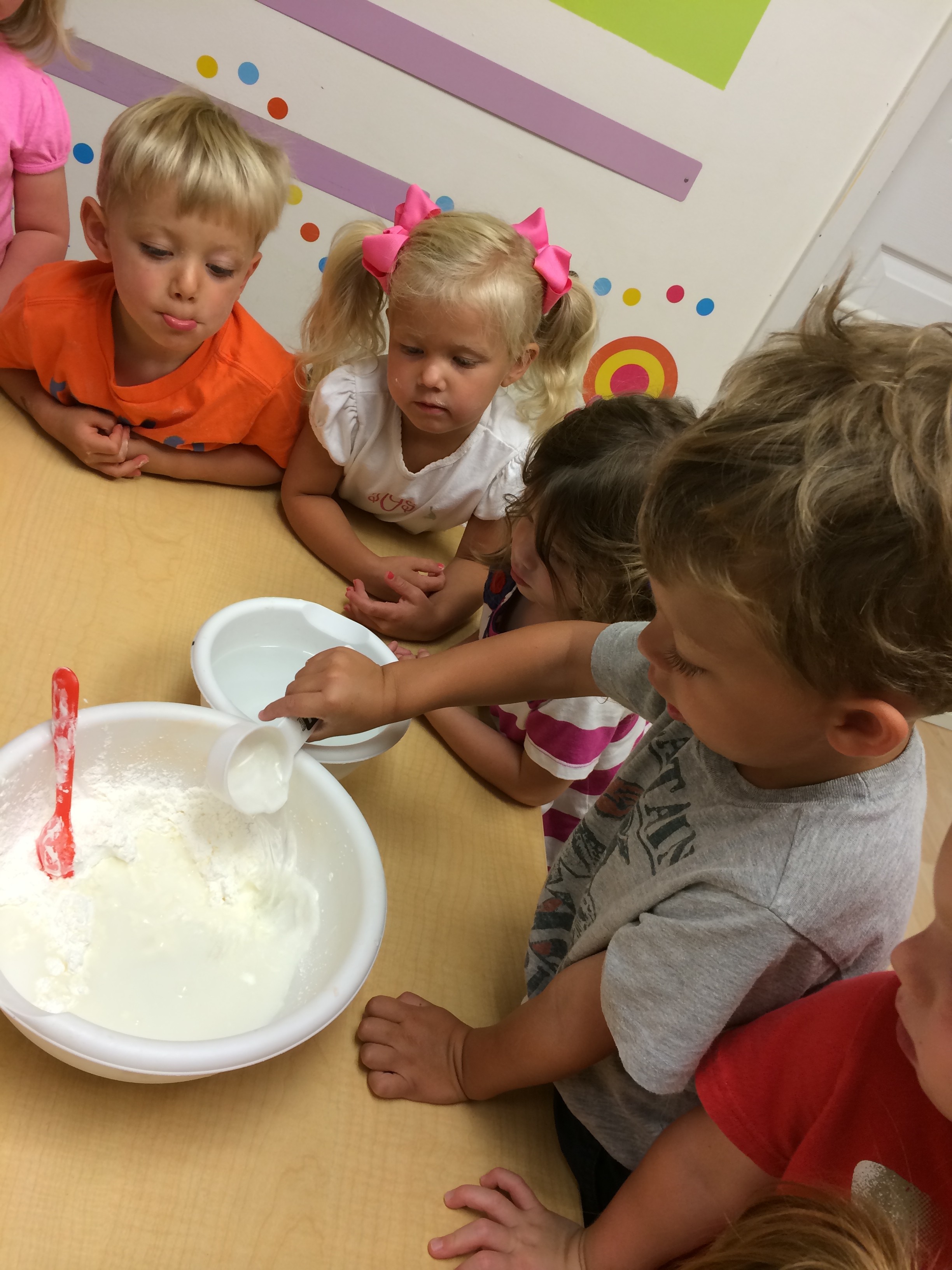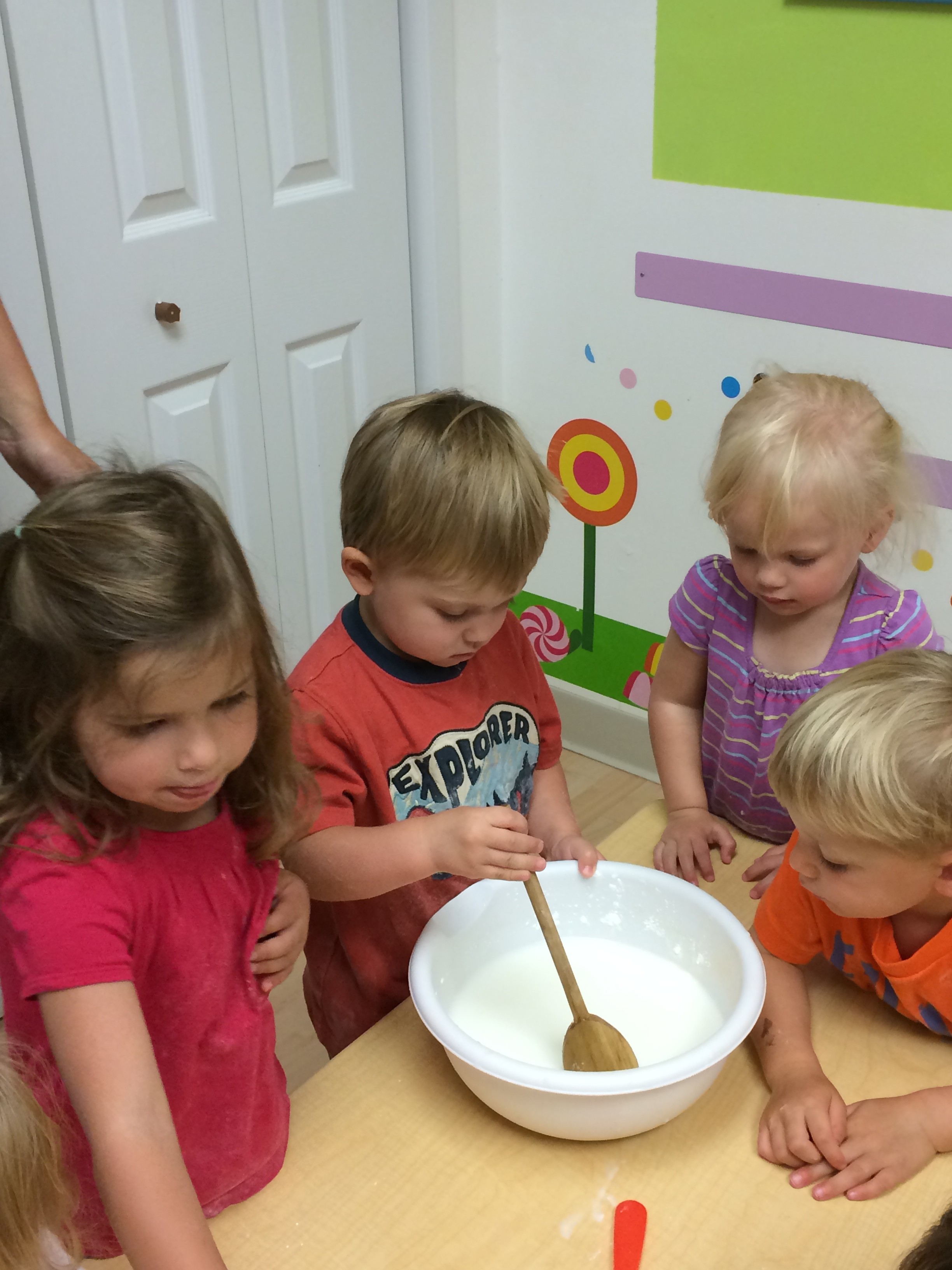 Making edible finger paint on Monday