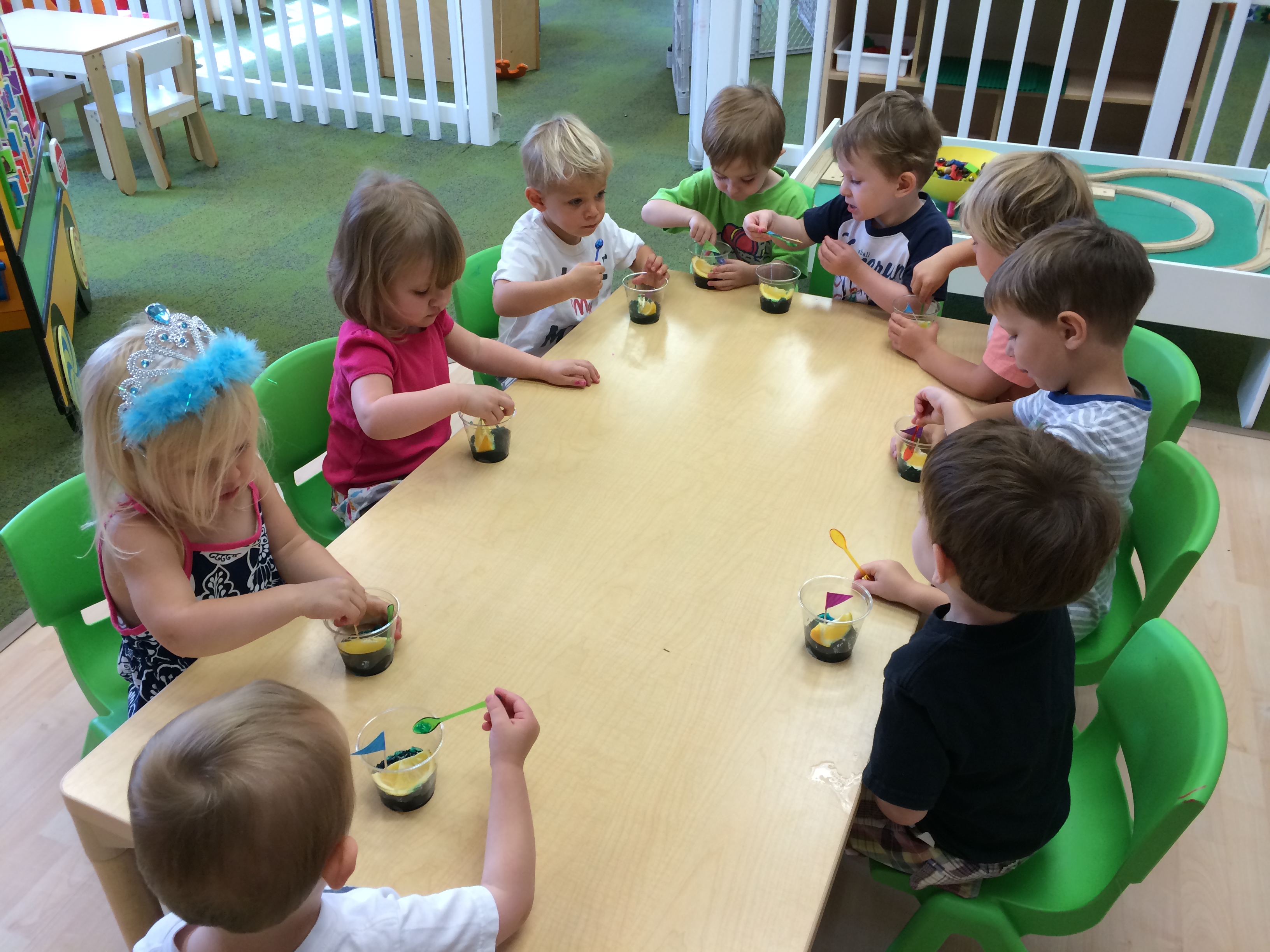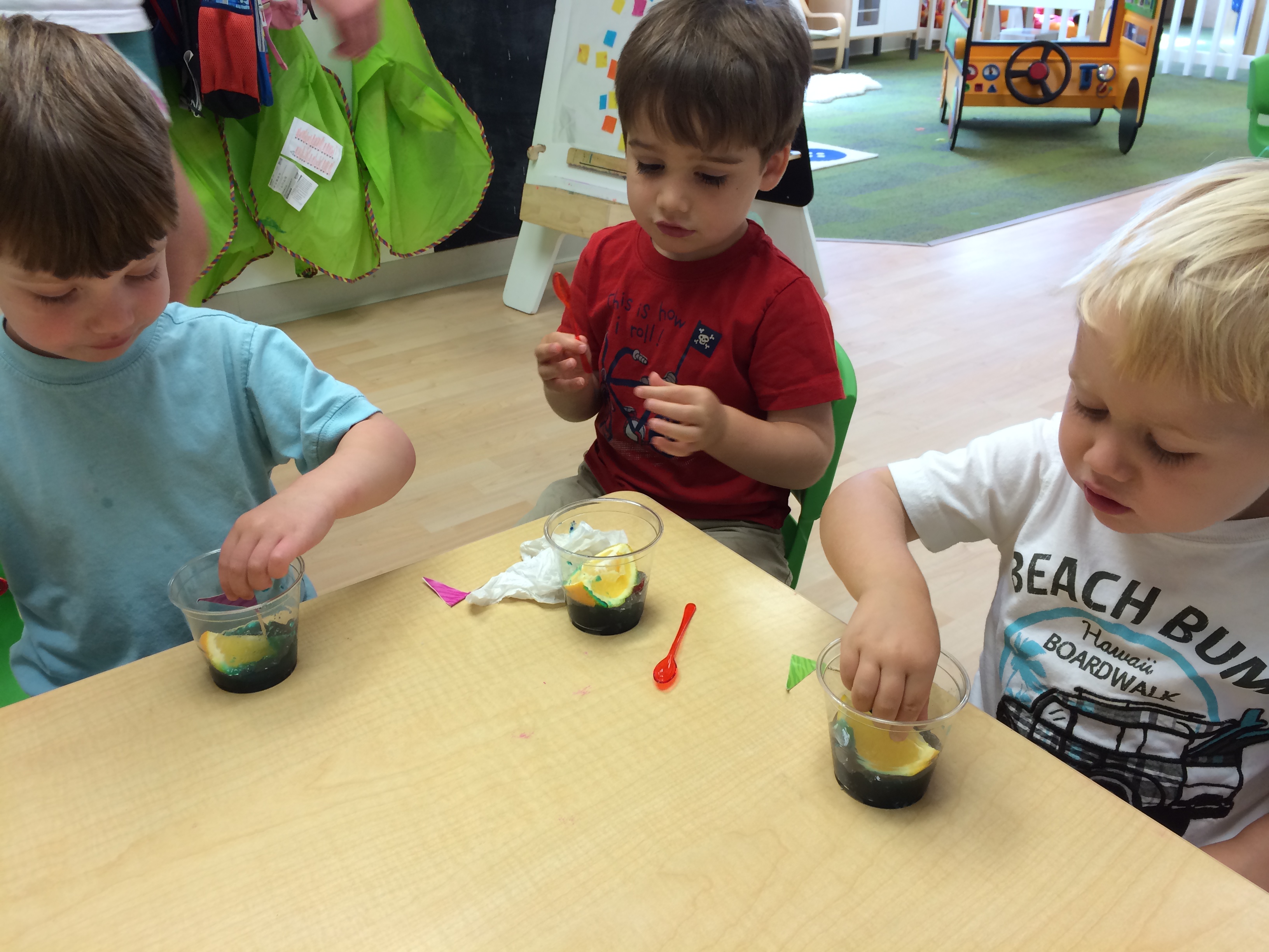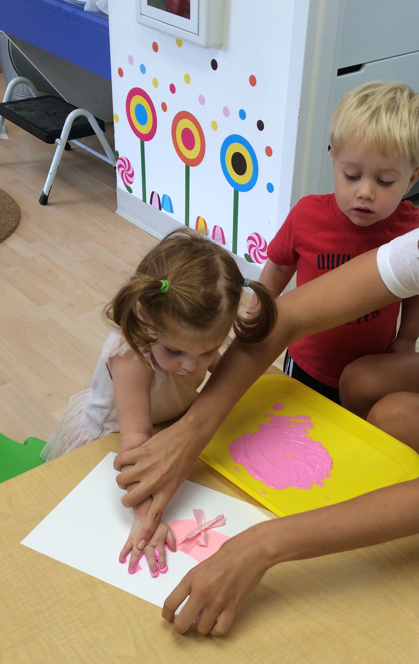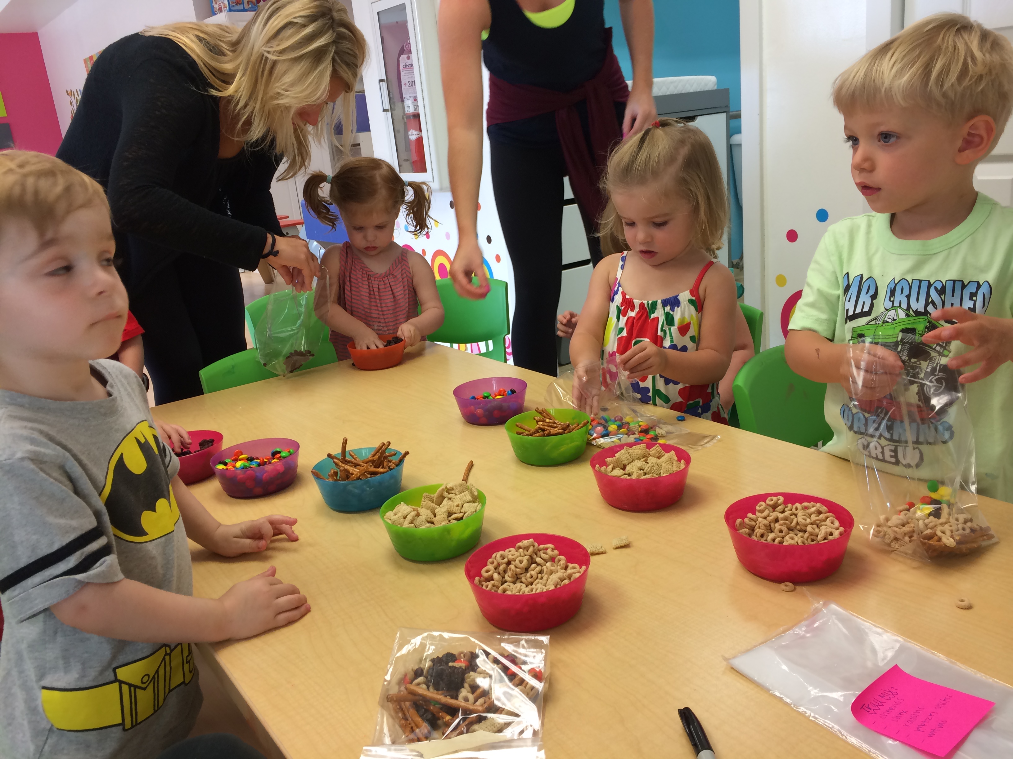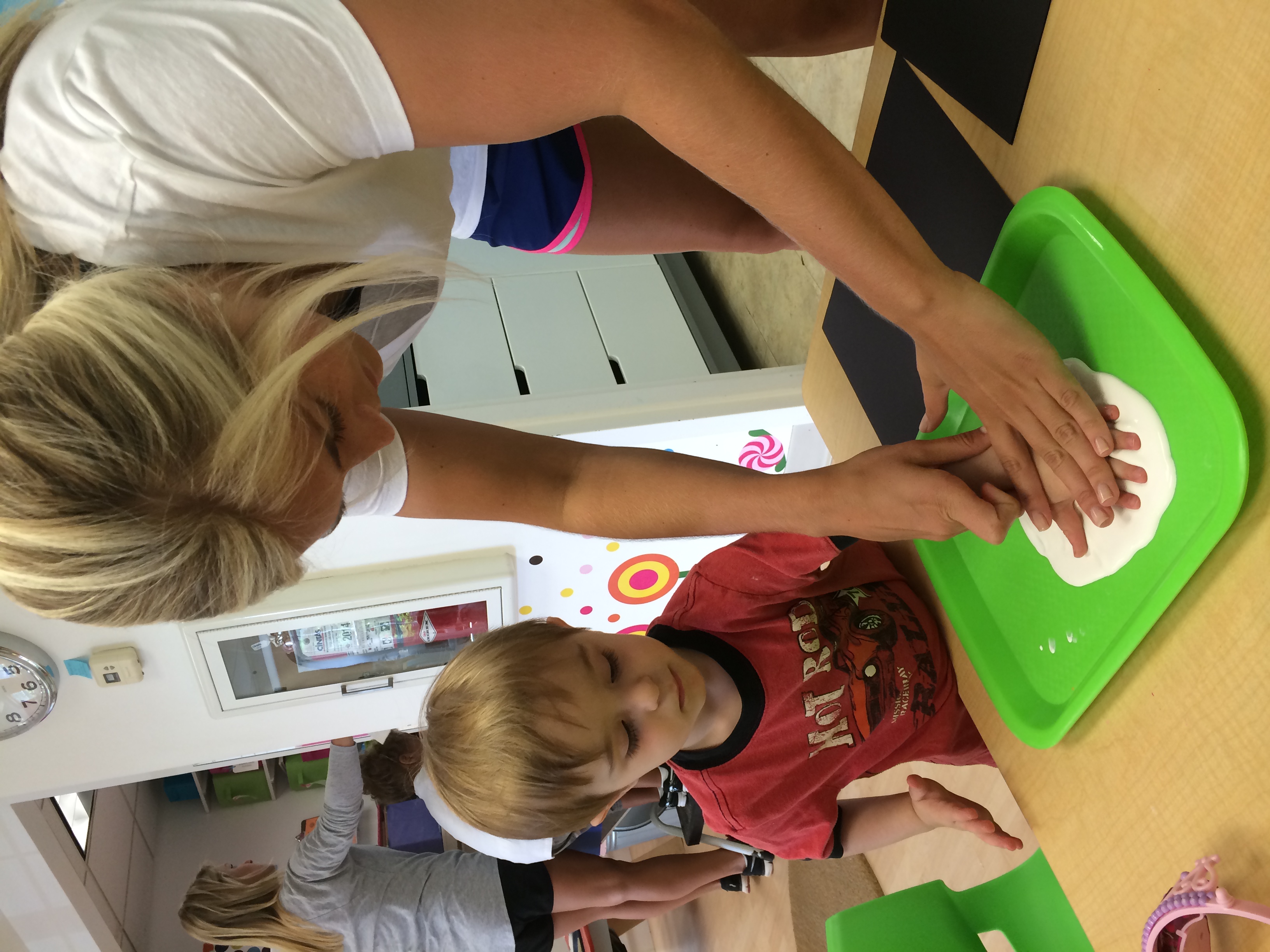 Making edible finger paint on Monday