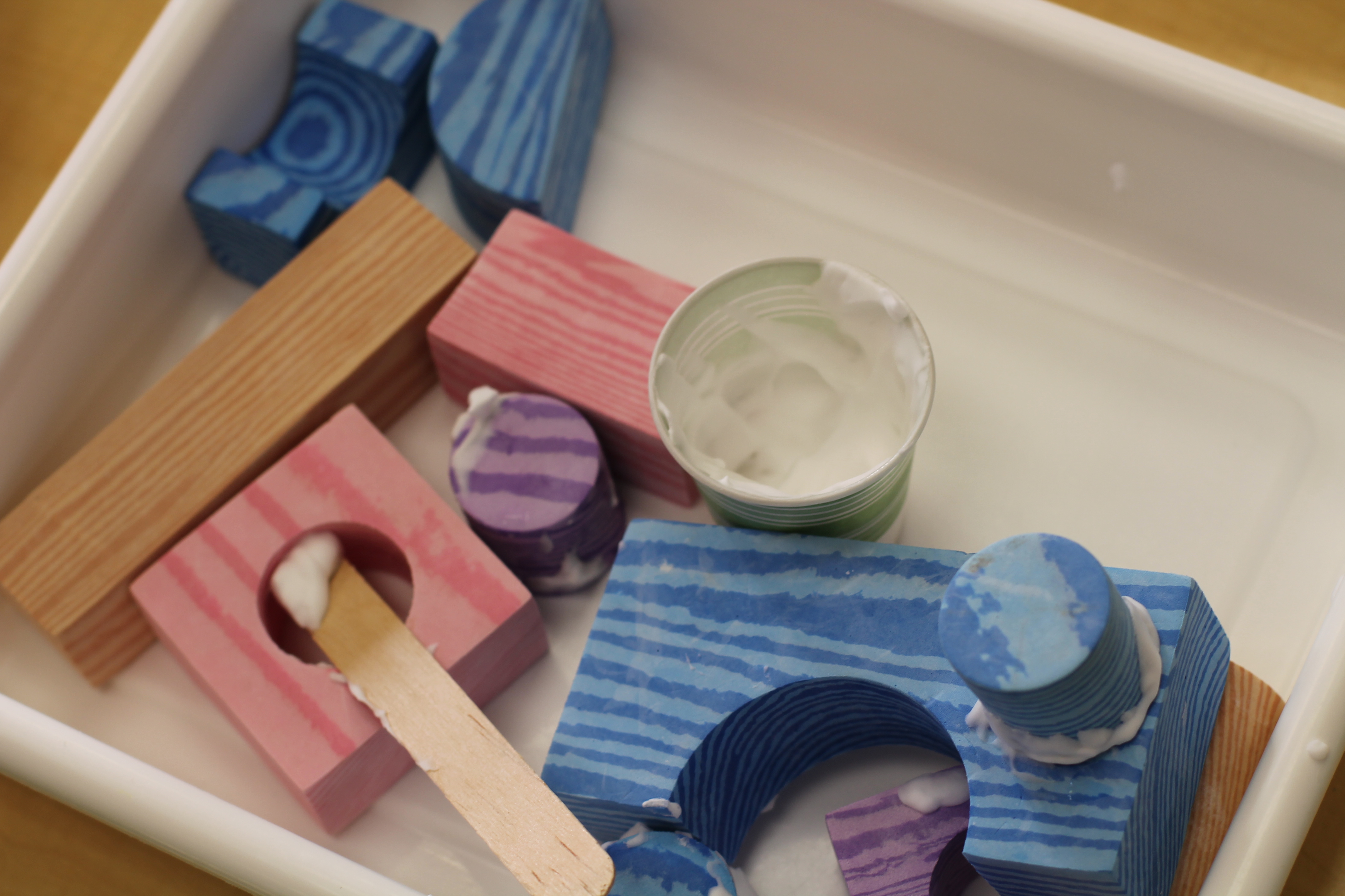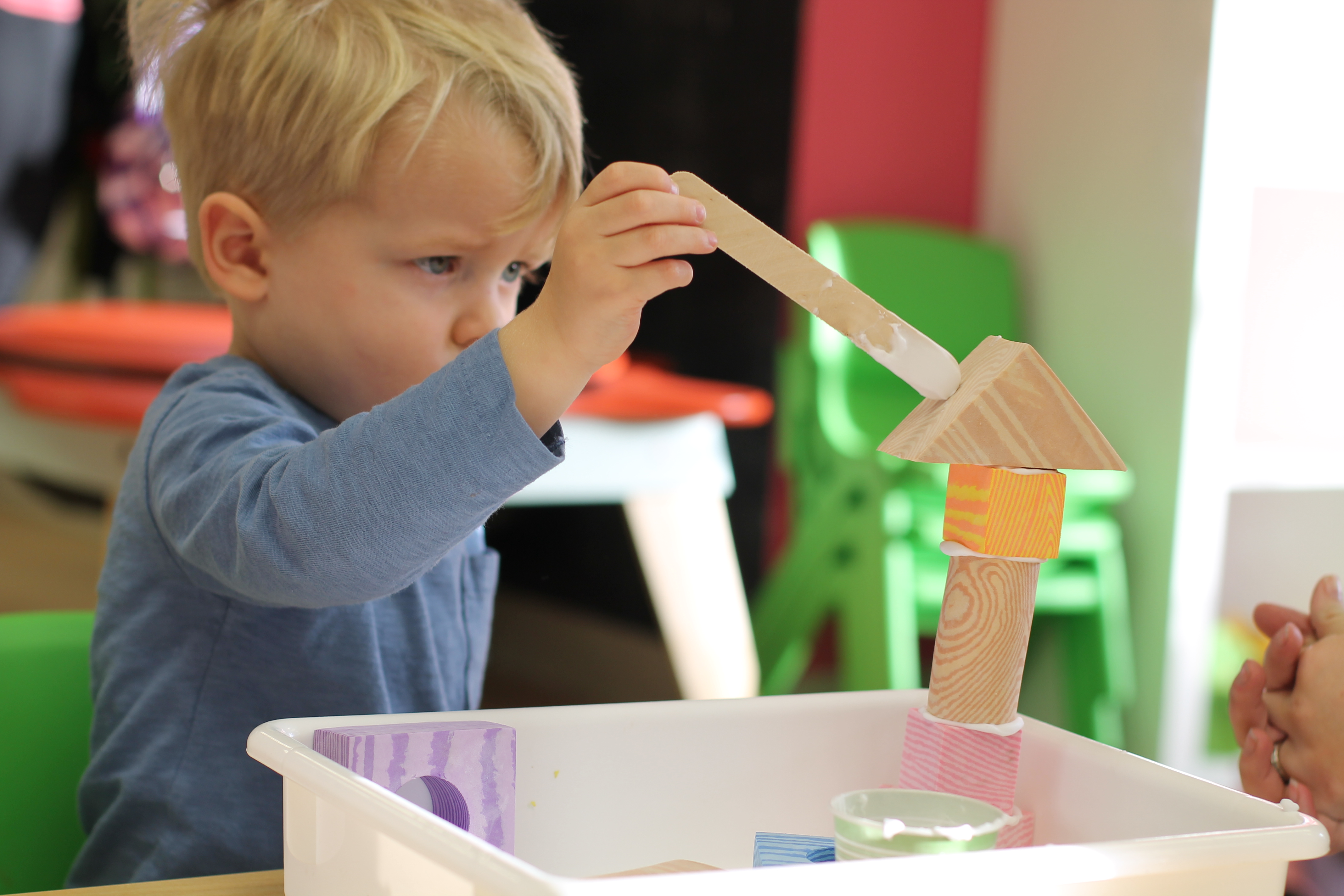 After making some very special christmas gifts, the boys and girls had a chance to build a snowman! We used paper cups to build the body, buttons, a hat and orange carrot nose! We might of also sang the song from Frozen while doing art. 🙂