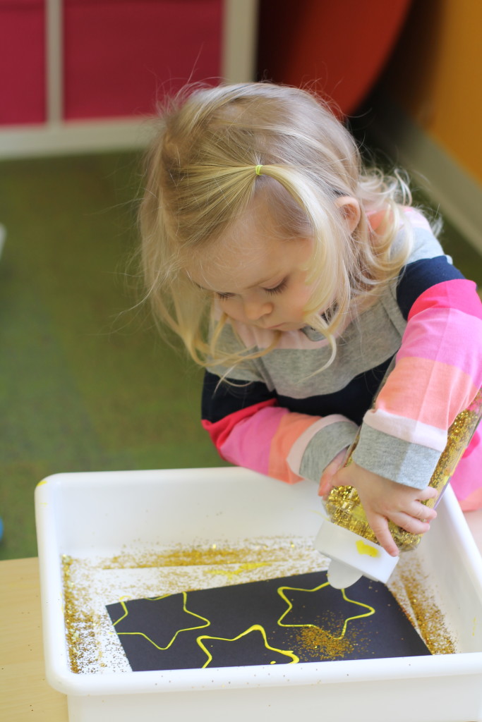 This December, we have been working on some holiday art projects! For one project, we used marbles and green paint to make our white Christmas trees, green! We also used star cookie cutters to make star prints with glitter, since the star is our shape of the month. We can’t forget about our alphabet page, which was the letter “K” last week. We made “K is for Kite” letter pages!