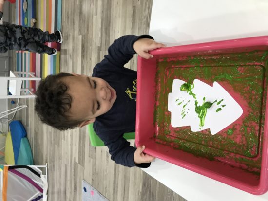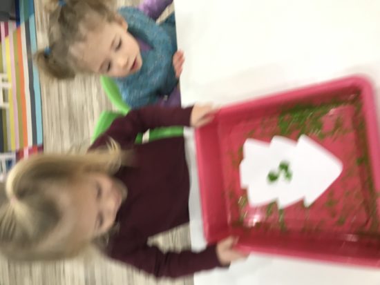 The toddlers have been learning all about the color green this month! We incorporated the color green into lots of activities this week, for them to have the continual to exposure to one color, in which they can link to the word, “green”. They went on a hunt for the color green, used green markers, crayons, chalk, and paint, to create different artwork, and used green circles and triangles to sort shapes! Our friends sure made green week fun!