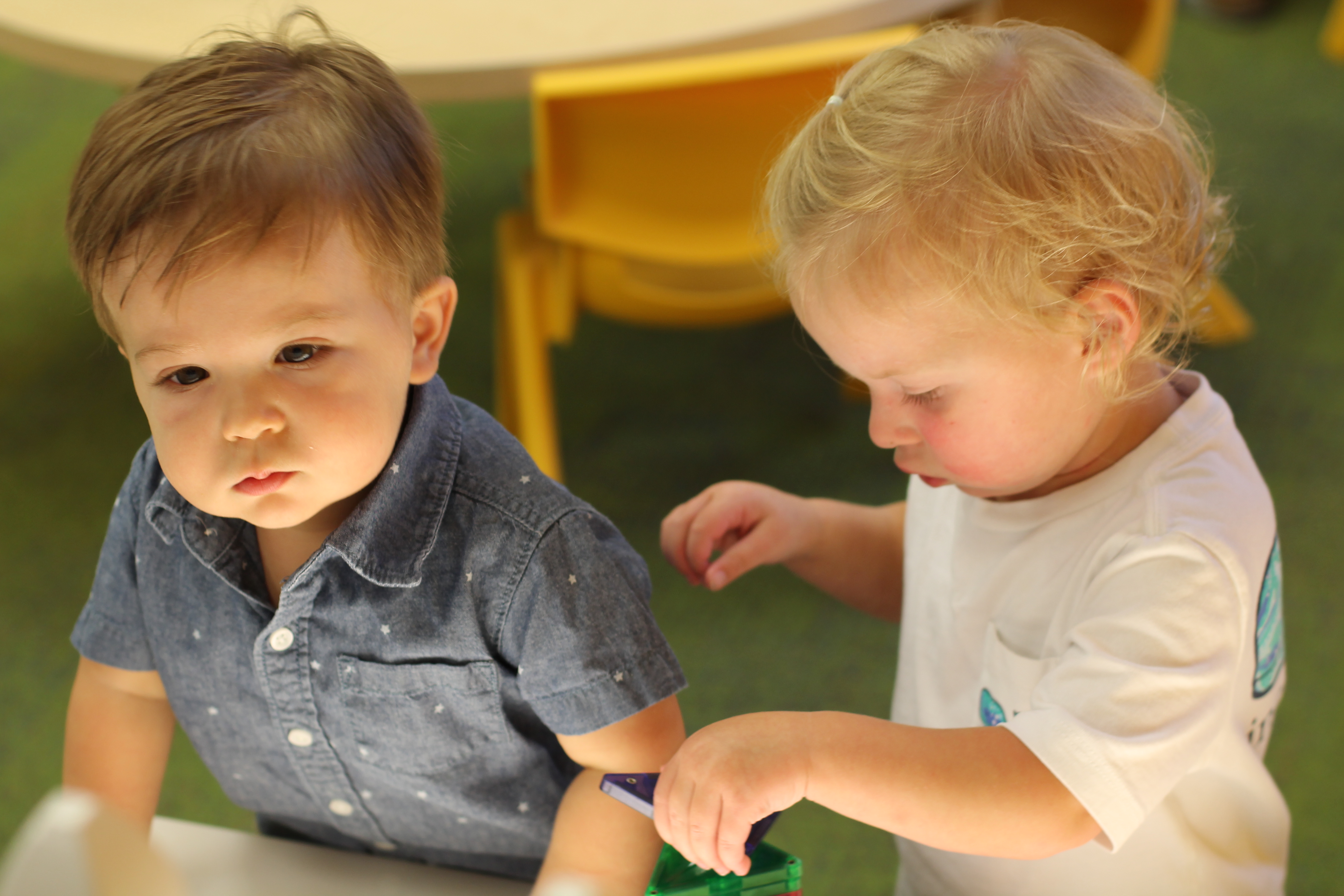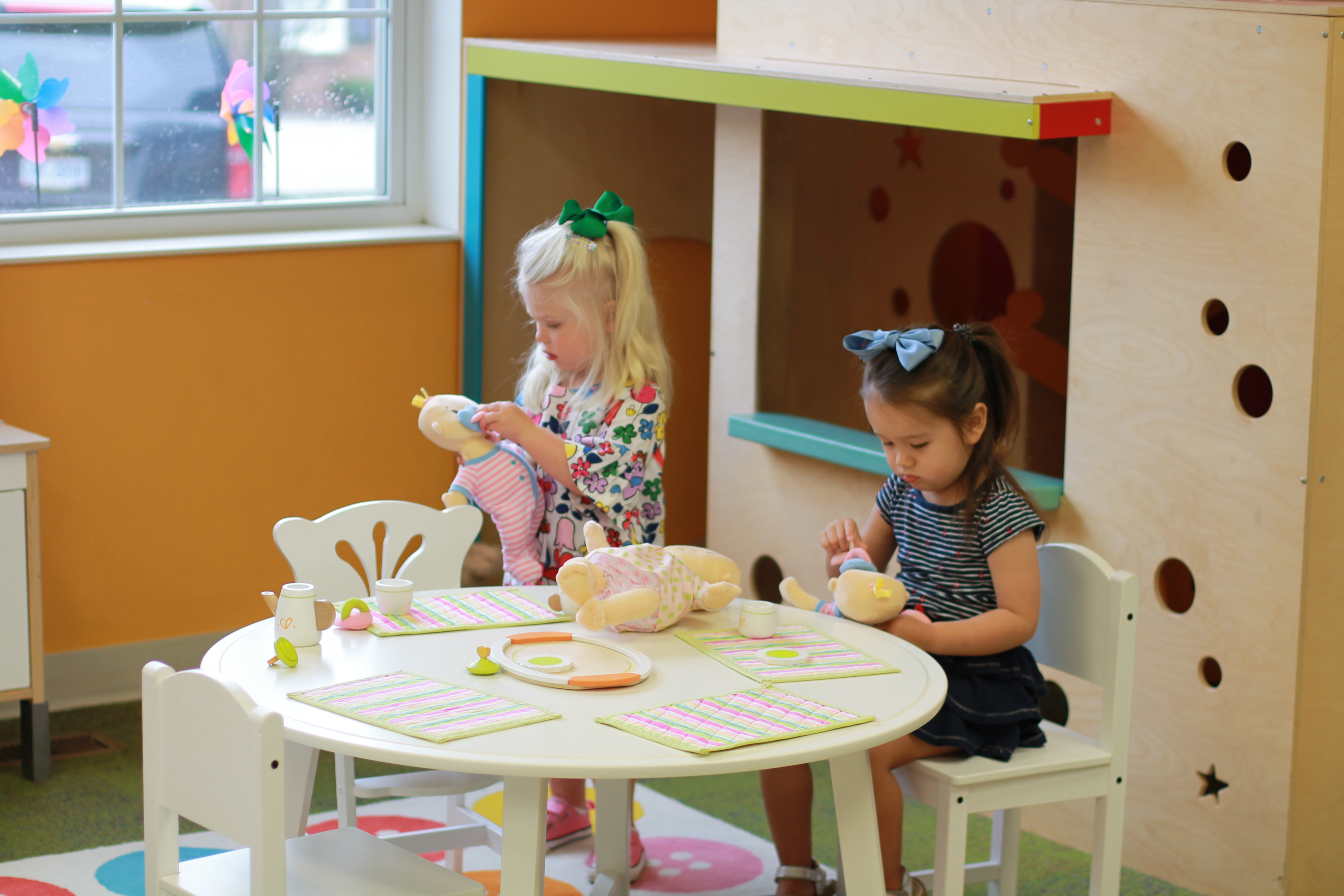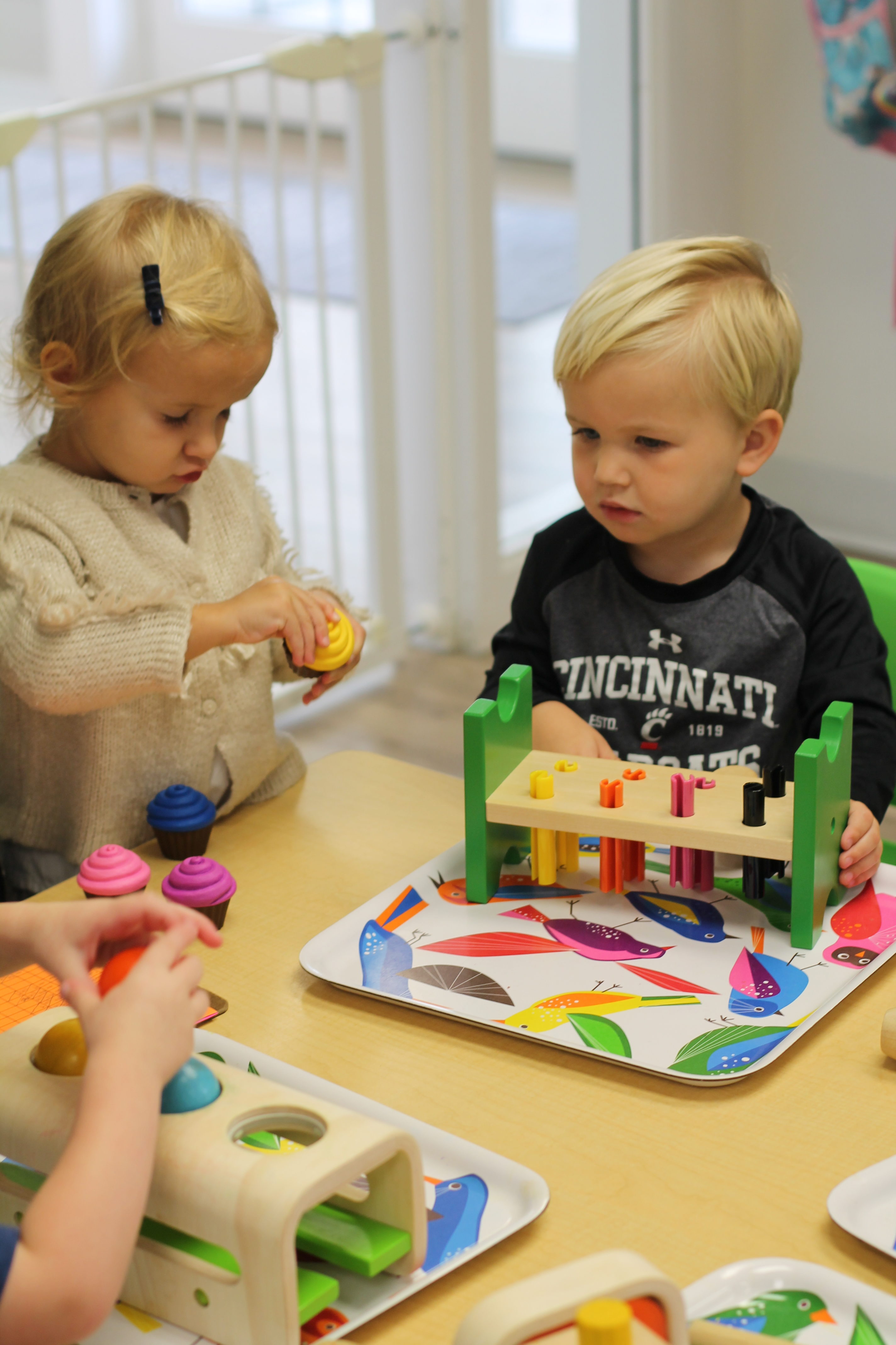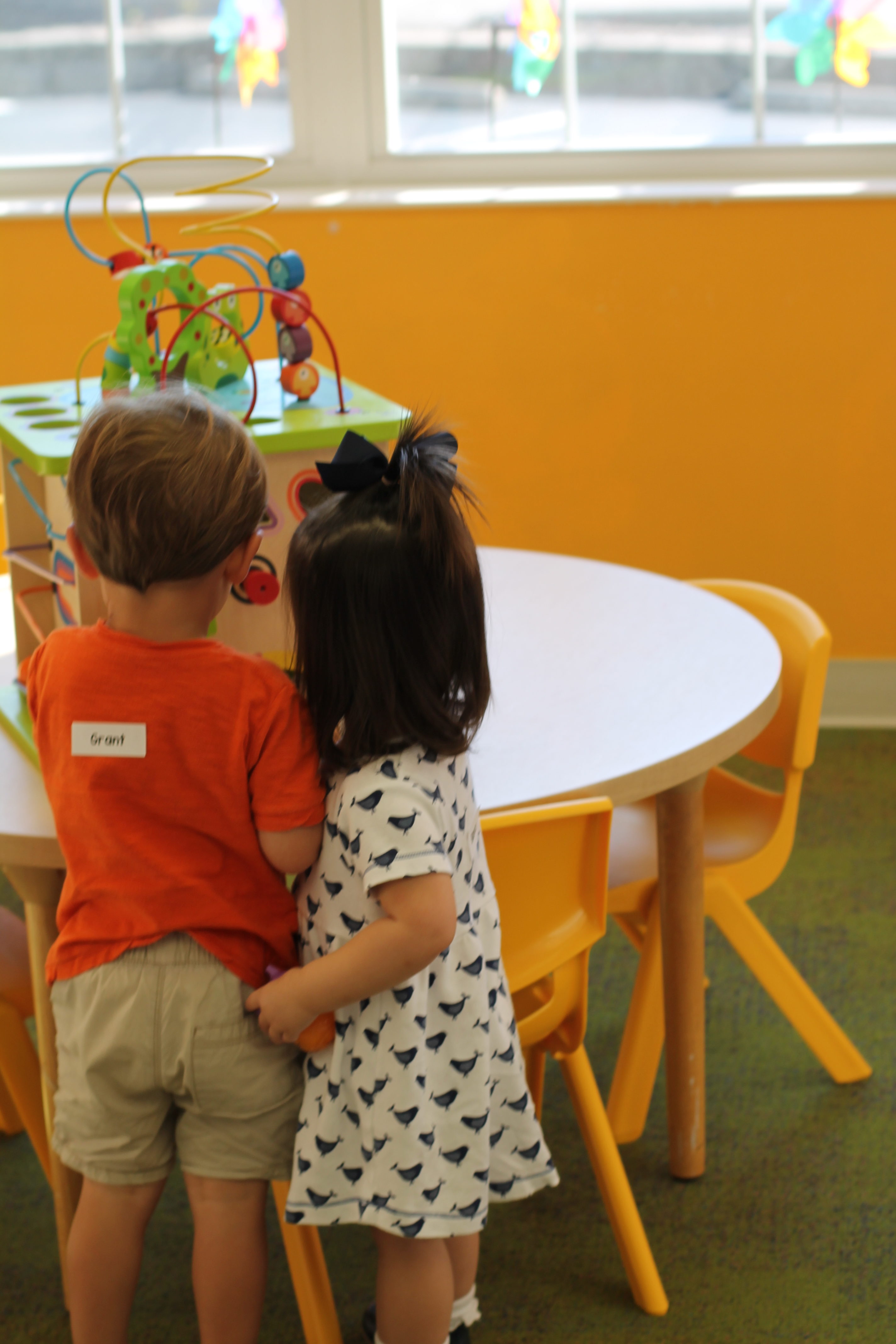 The studio toddler class has taken the month of September to explore our environment, learn routines, and adjust to being away from parents for the first time but it is also a time of socialization and making new friends. Socializing with other children is an excellent way to foster a toddler’s social and emotional development. We set up our environment for purposeful play and social experiences. Children begin to mimic during parallel play and then start to communicate with peers. They learn vocabulary and appropriate ways to express themselves through pretend play, free choice centers, and games. As teachers, we facilitate the environment and activities and then gently guide the toddlers to use words, solve problems, take turns, and have fun through play. The result is a classroom full of new friends!