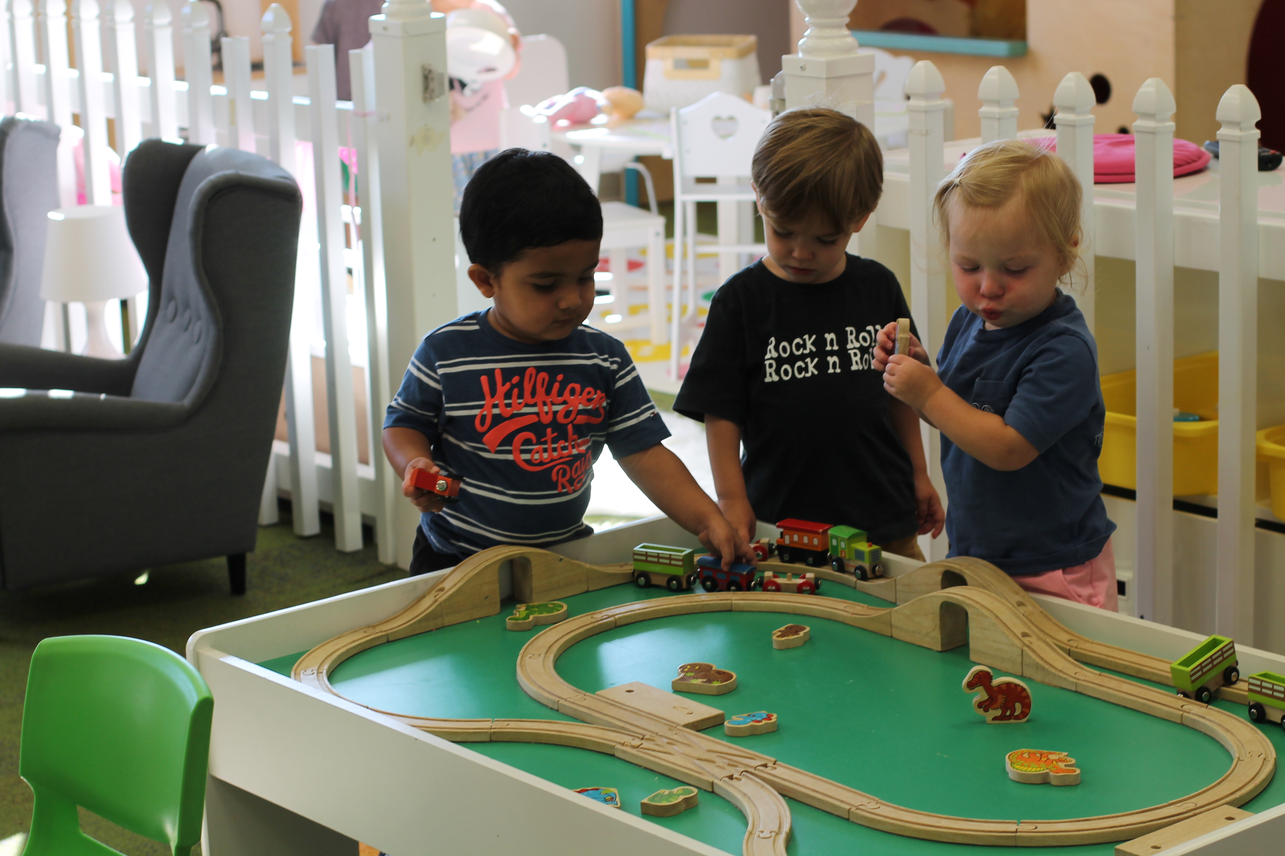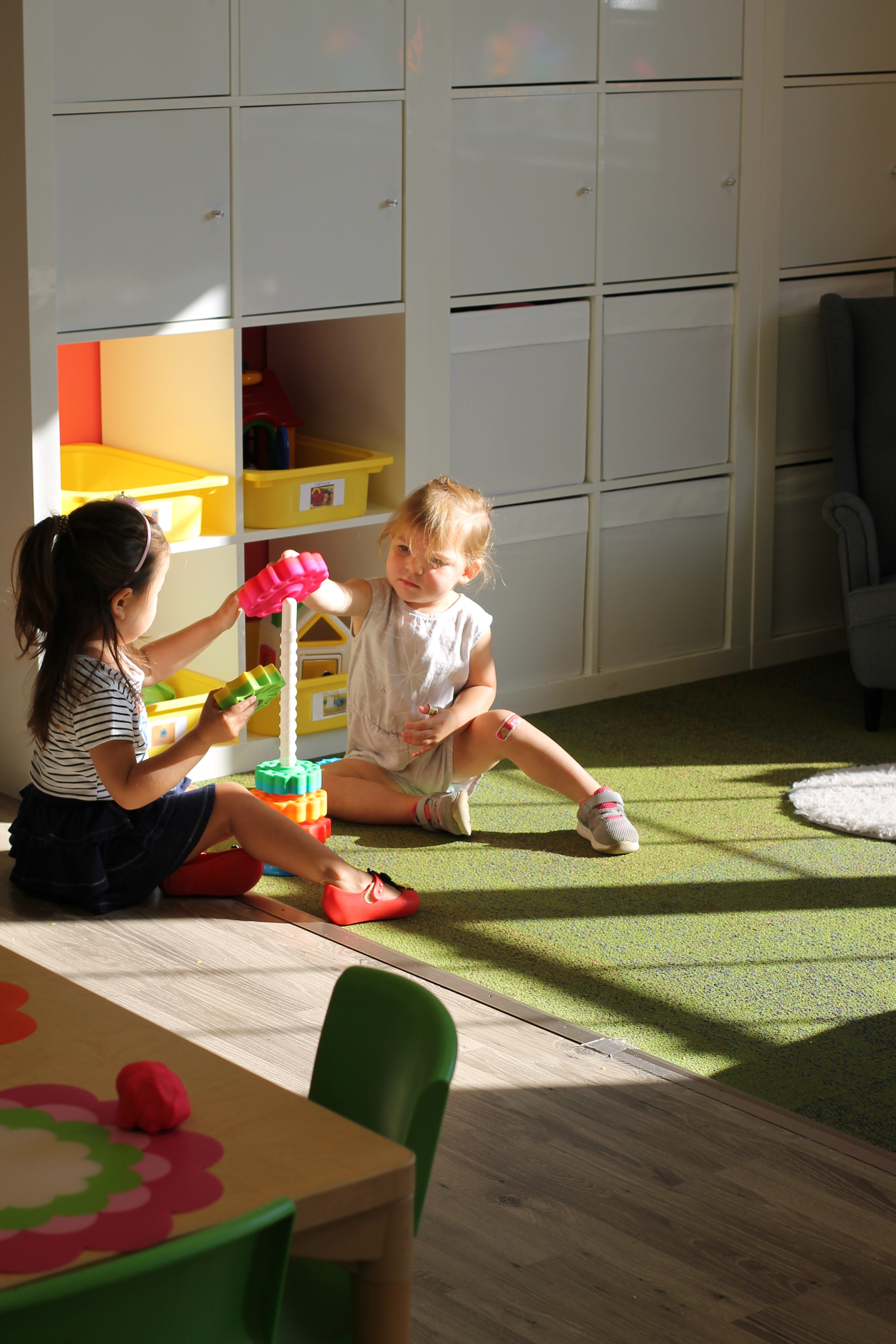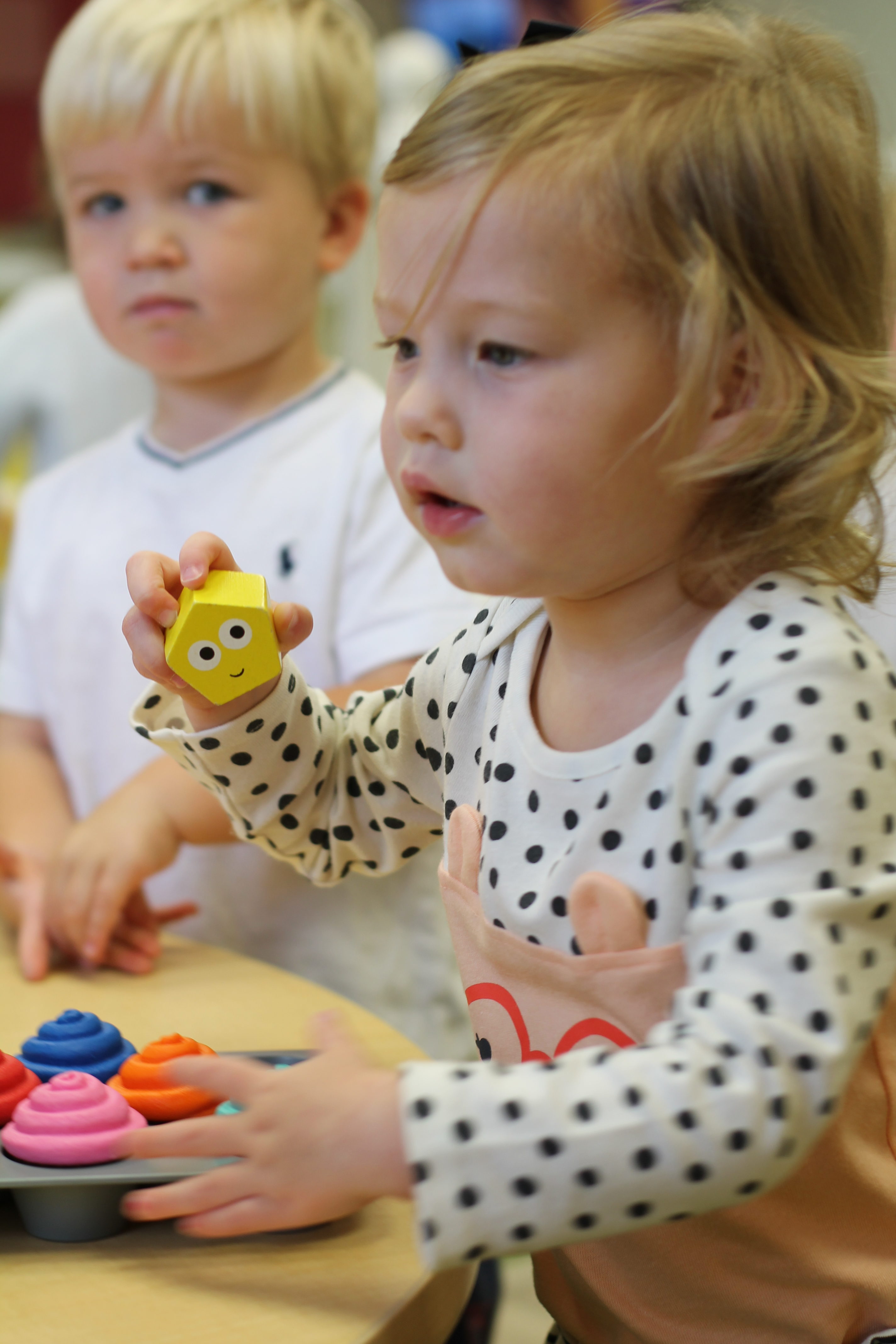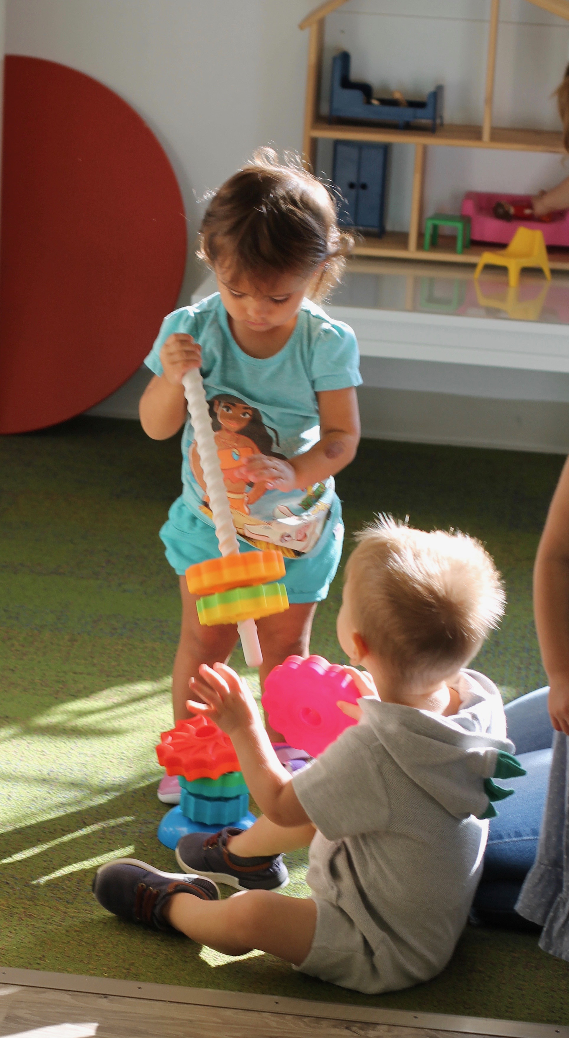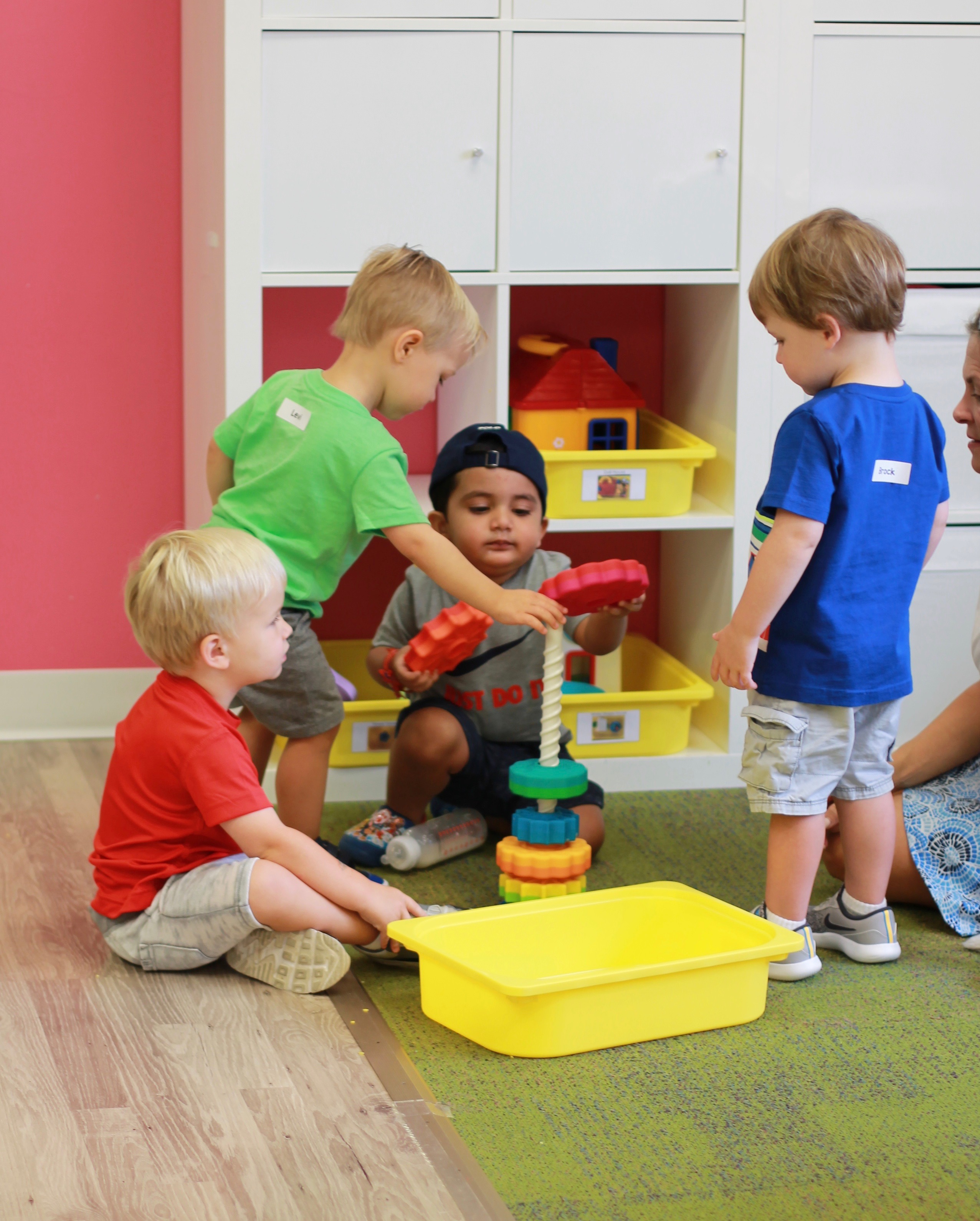 The studio toddler class has taken the month of September to explore our environment, learn routines, and adjust to being away from parents for the first time but it is also a time of socialization and making new friends. Socializing with other children is an excellent way to foster a toddler’s social and emotional development. We set up our environment for purposeful play and social experiences. Children begin to mimic during parallel play and then start to communicate with peers. They learn vocabulary and appropriate ways to express themselves through pretend play, free choice centers, and games. As teachers, we facilitate the environment and activities and then gently guide the toddlers to use words, solve problems, take turns, and have fun through play. The result is a classroom full of new friends!