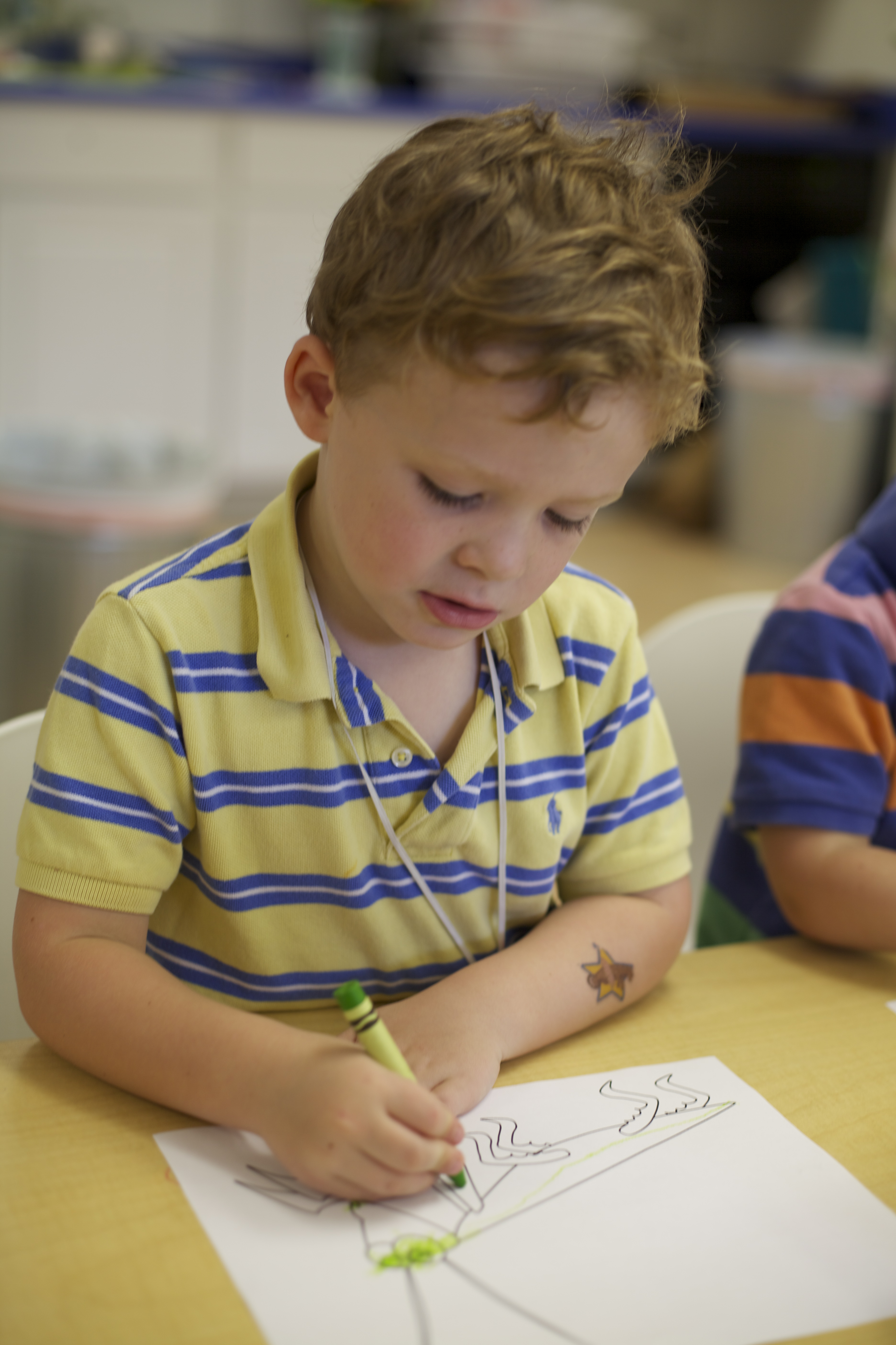 The preschoolers explored beautiful Native American jewelry and artifacts. Then they got the chance to create their very own necklace with feathers and beads.
