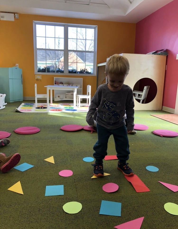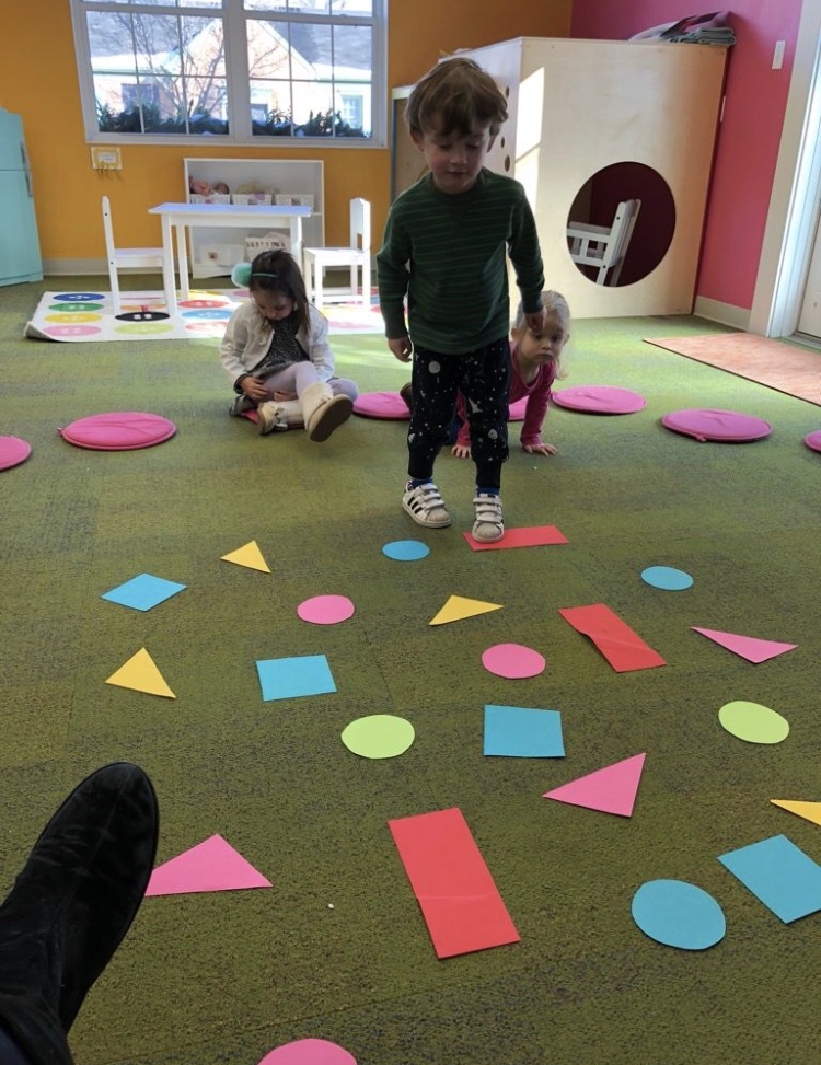 Getting our bodies involved on a cold winter day, with a gross motor shape hunt!